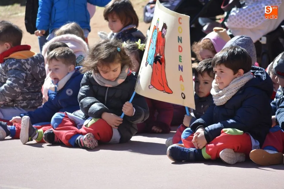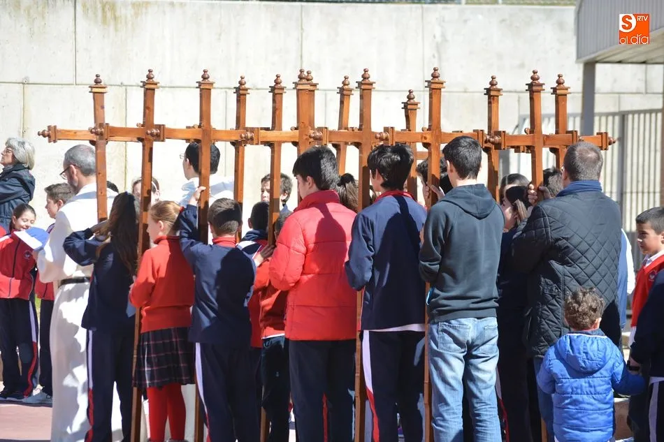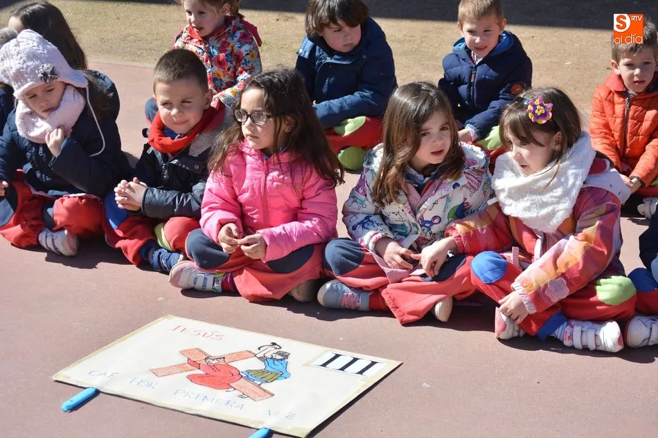 Cada grupo de alumnos ha representado una estación ?para que aprendan desde pequeños a acompañar a Jesús en ese camino que recorrió llevando la Cruz por amor a cada uno de nosotros. Este año, al igual que el curso pasado, queremos tener un recuerdo muy especial por los cristianos perseguidos, porque ellos al igual que Jesús, están viviendo un auténtico vía crucis?.