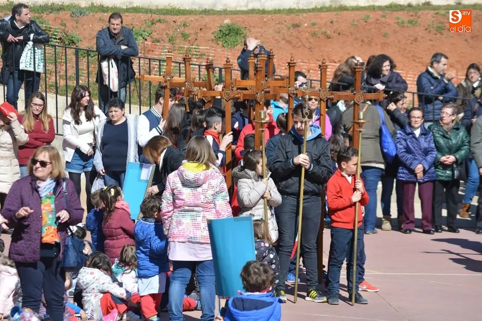Cada curso ha representado una estación y los profesores han hecho una lectura junto a sus alumnos. La procesión ha comenzado a las 12:15 horas y el recorrido por cada estación ha estado acompañado de los niños, profesores y familias que han asistido a este encuentro, actos amenizados por un coro en el que participaban varios alumnos.