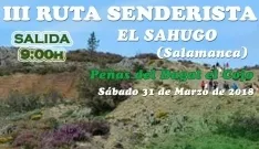 El Ayuntamiento de El Sahugo ha organizado para el próximo sábado 31 de marzo la III Ruta Senderista de la localidad, denominada ?Peñas del Dagal el Cojo? y consistente en un recorrido de 25 kilómetros de dificultad media-alta.
