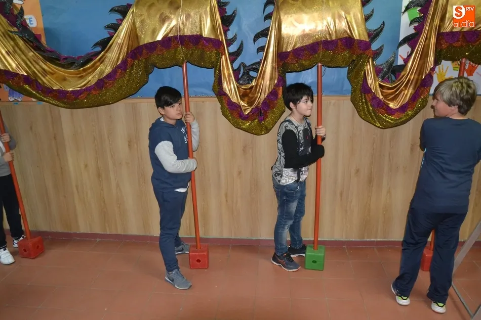 En el tramo final de la mañana del miércoles, ya en la última hora escolar del trimestre, comenzó la recogida de todos los elementos decorativos repartidos por los pasillos del Colegio, donde destacaba el dragón chino que ya se pudo ver durante los carnavales. Todos esos elementos, entre los que se incluían los trabajos elaborados por los escolares durante la Semana Cultural, pudieron ser visitados a lo largo de la mañana por los familiares.