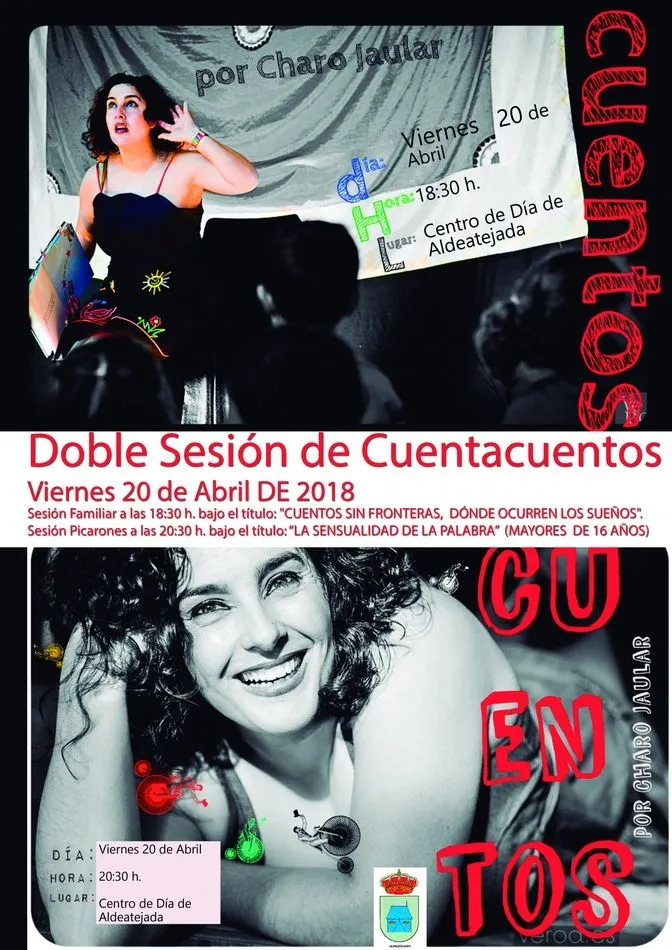 El 20 de abril, e iniciando actividades relacionadas con el Día Internacional del Libro, tendrá lugar una doble sesión de cuentacuentos a cargo de Charo Jaular. ?Cuentos sin fronteras, dónde ocurren los sueños? está dirigido a niños a partir de 4 años y será a las 18.30 horas, mientras que a las 20.30 horas está programada una sesión de cuentos picarones bajo el título ?La sensualidad de la palabra?, para mayores de 16 años.