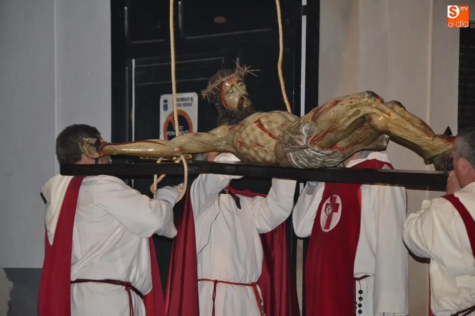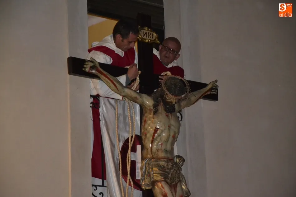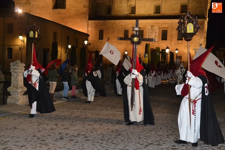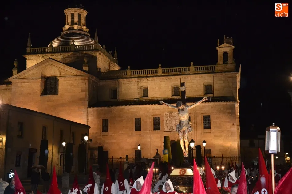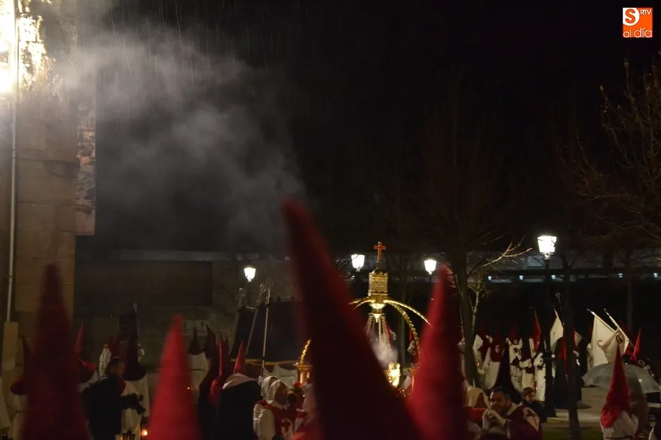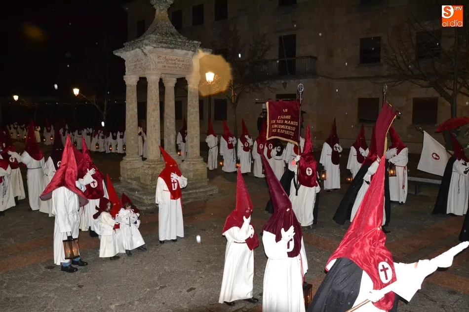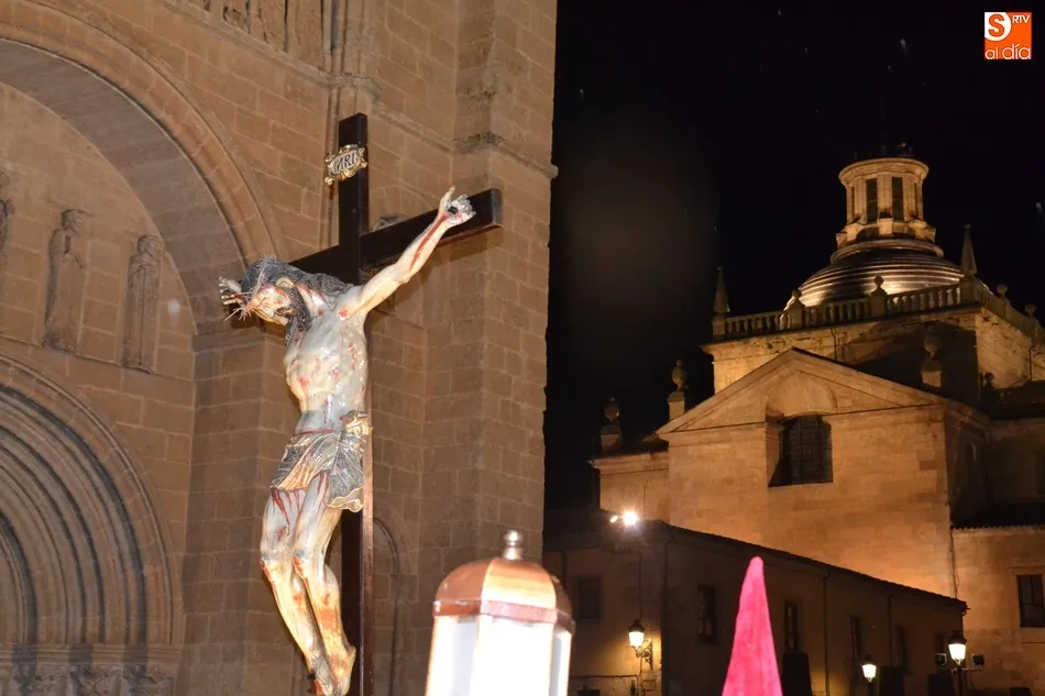 Los cientos y cientos de devotos que tiene en Ciudad Rodrigo el Santísimo Cristo de la Expiración no se quedaron sin verle en la noche del Jueves Santo aunque, lamentablemente, su desfile procesional por las calles mirobrigenes estuvo marcado por las inclemencias meteorológicas, que hicieron que desde el principio se acortase el recorrido, que acabó por recibir también la visita de la lluvia en las inmediaciones de la Catedral.