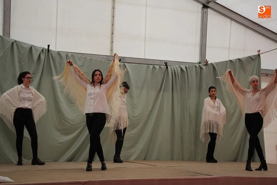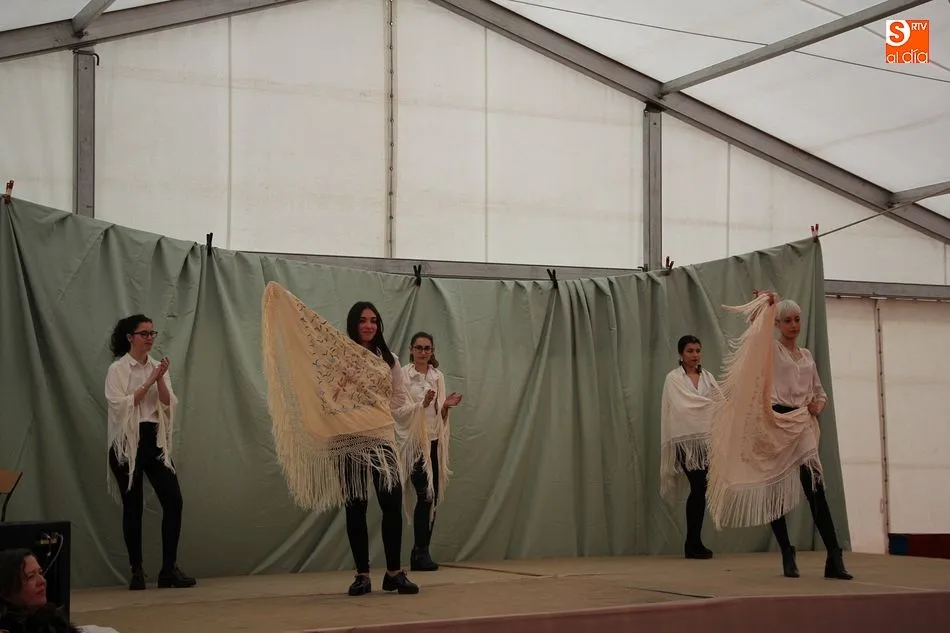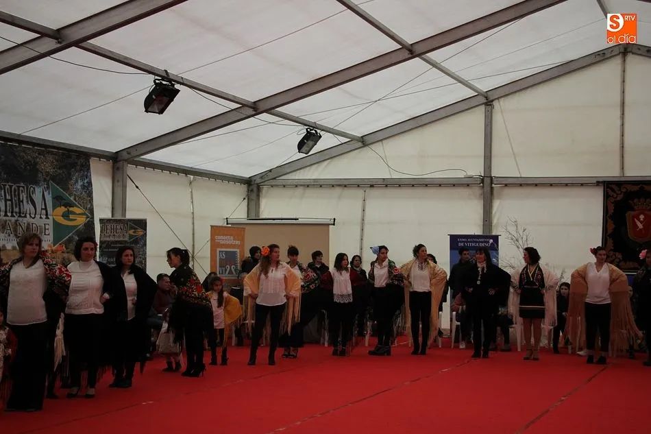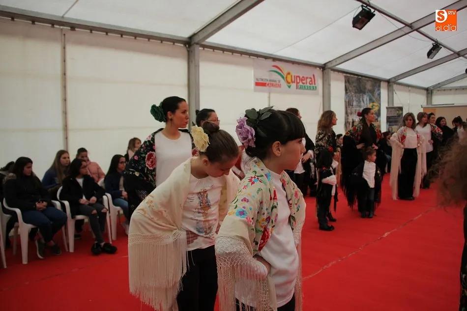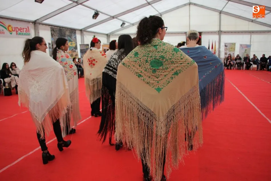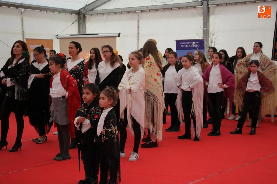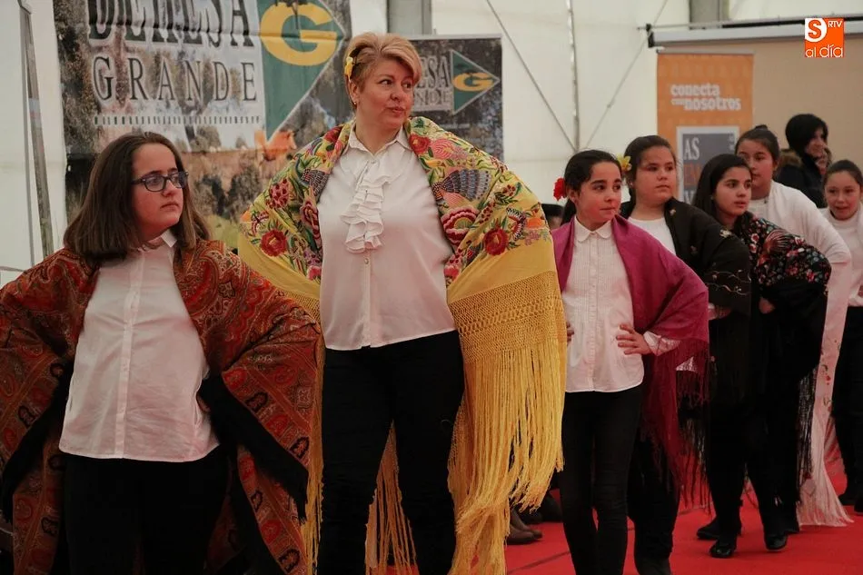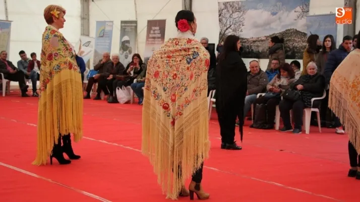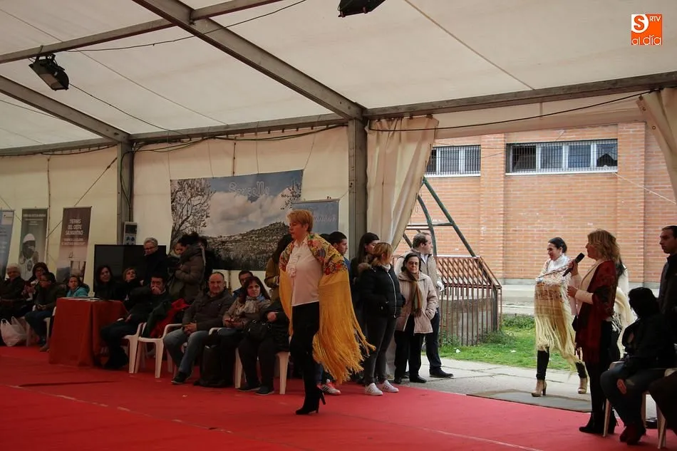 La carpa instalada junto al pabellón de deportes de las escuelas se transformaba la tarde de este jueves en una pasarela para celebrar un desfile de mantones bordados, uno de los actos programados por el Ayuntamiento en esta XIII Feria Agroalimentaria de Vitigudino.