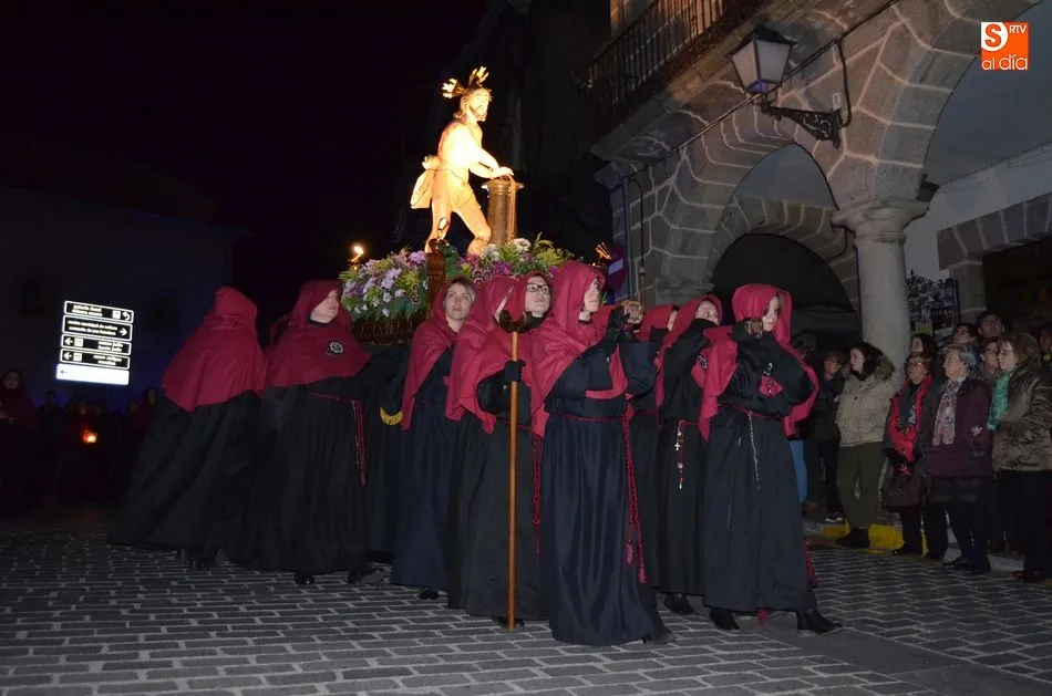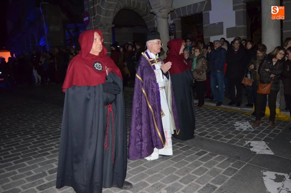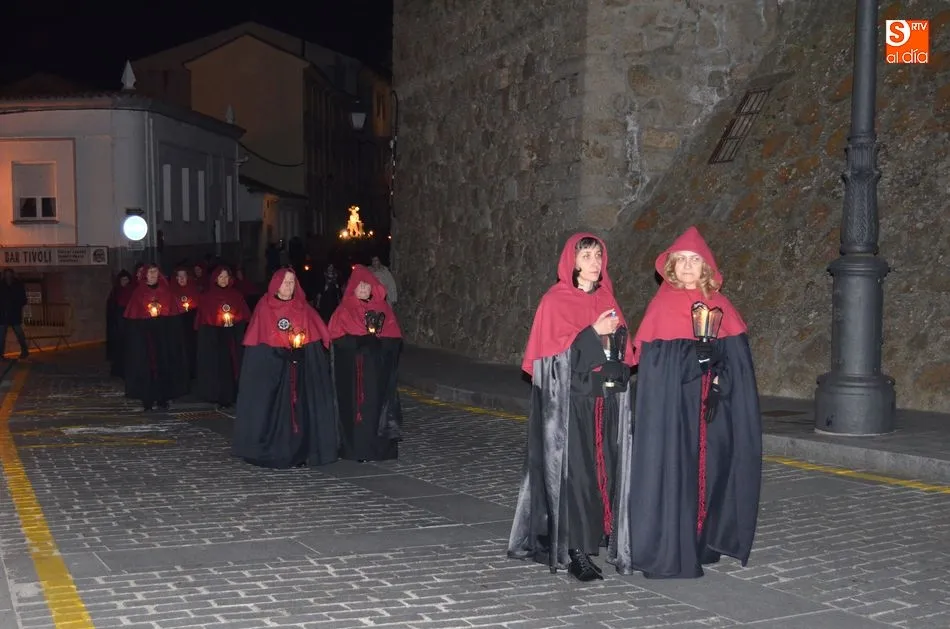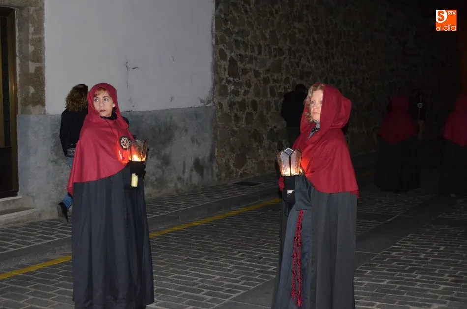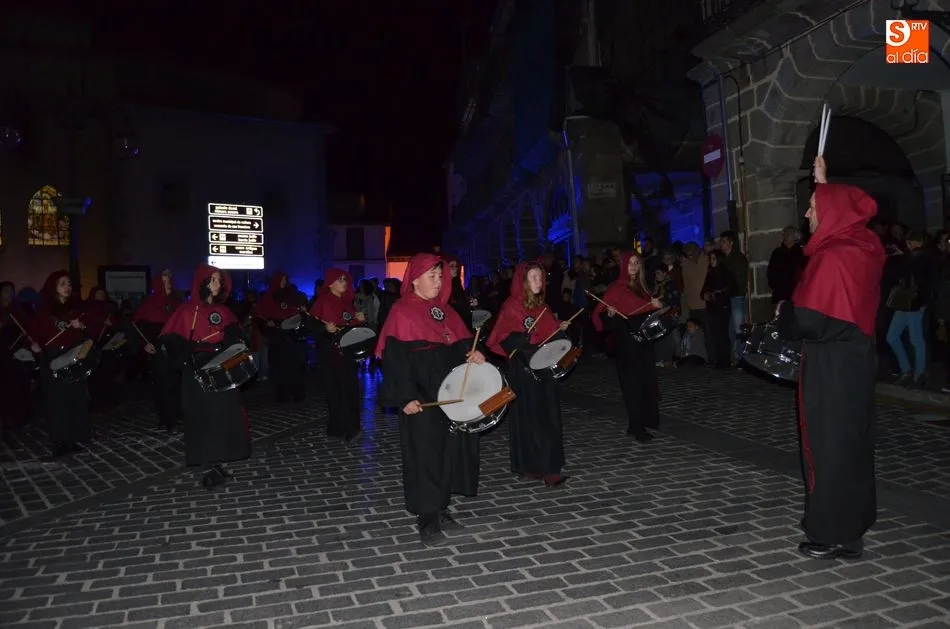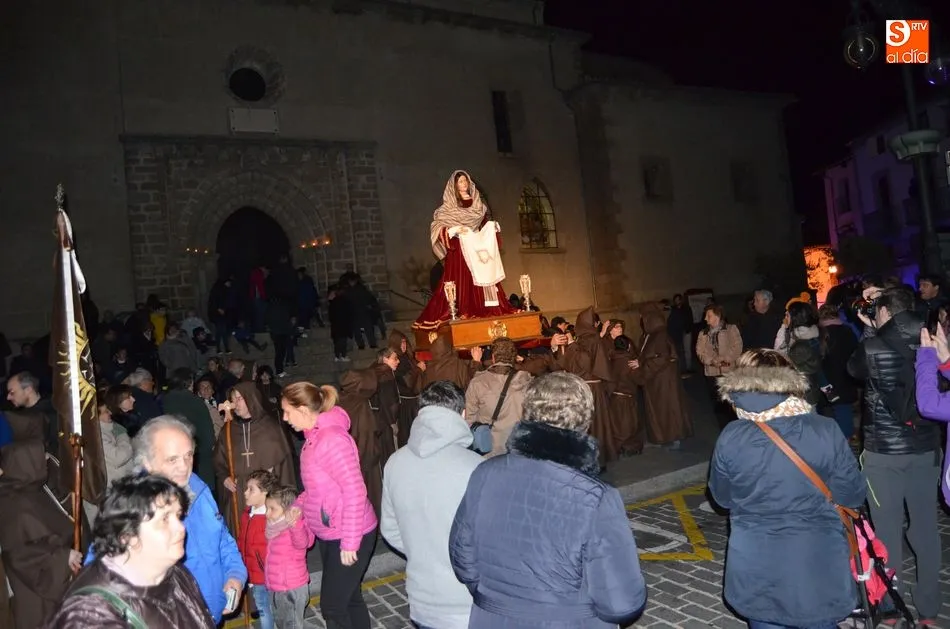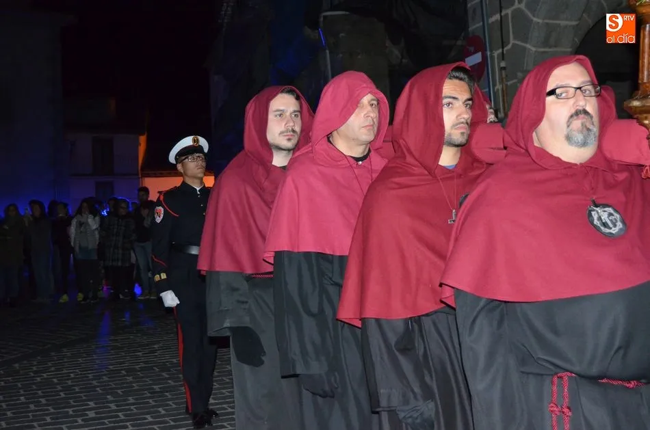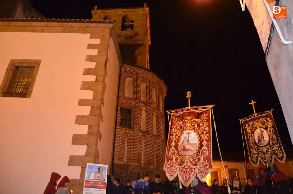 Emoción contenida en el recorrido de las dos imágenes que sobrecogen en la completa oscuridad de la Plaza Mayor a su encuentro con La Verónica de la Seráfica Hermandad, y la devoción se respira paso a paso en la Semana Santa bejarana.