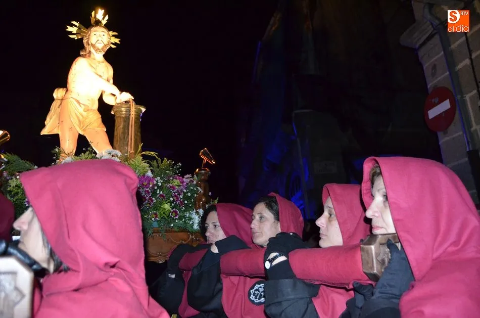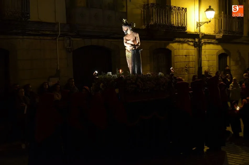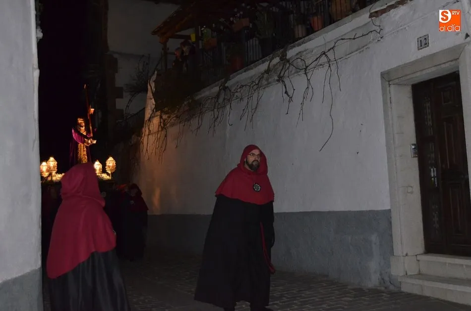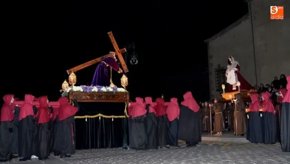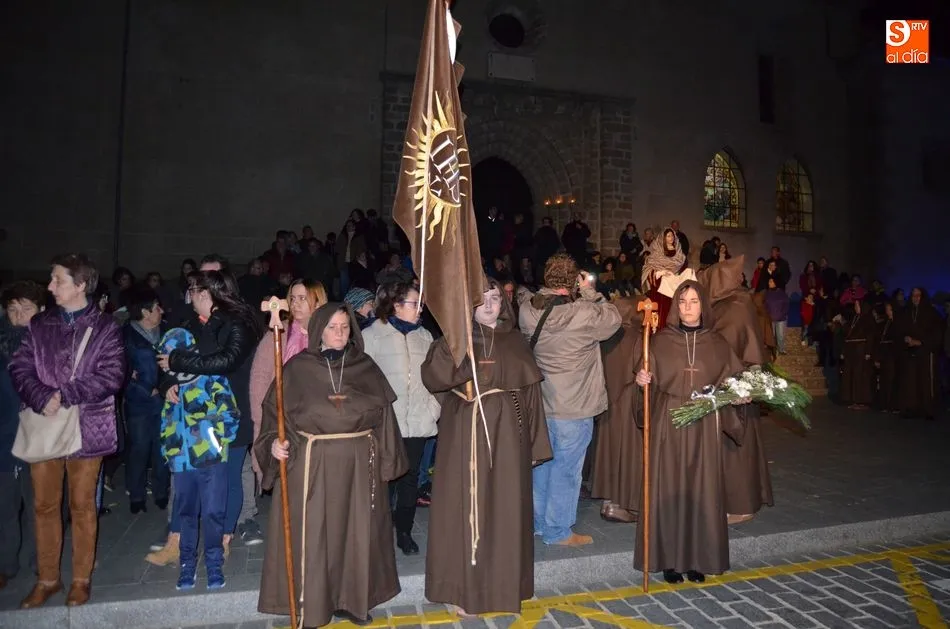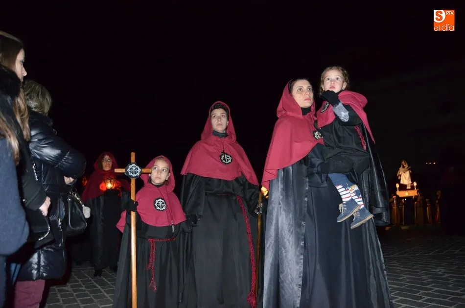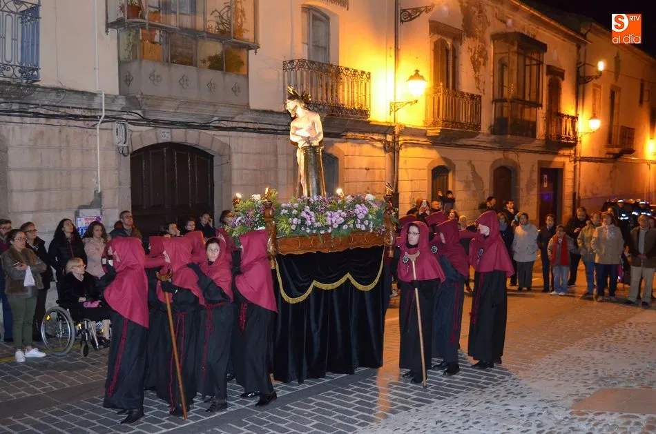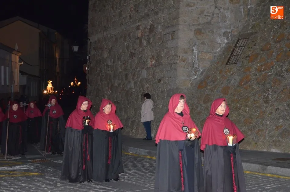 Emoción contenida en el recorrido de las dos imágenes que sobrecogen en la completa oscuridad de la Plaza Mayor a su encuentro con La Verónica de la Seráfica Hermandad, y la devoción se respira paso a paso en la Semana Santa bejarana.