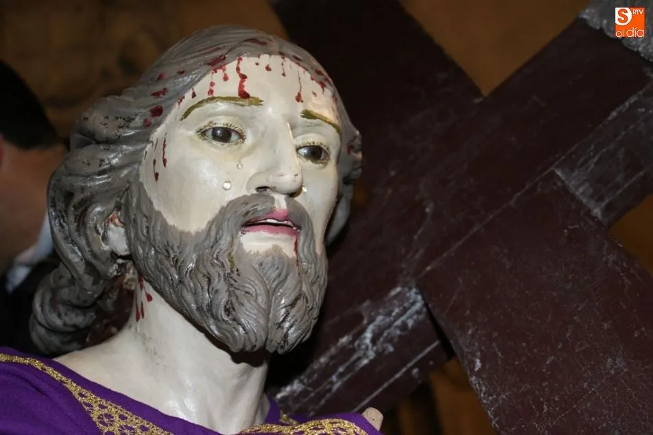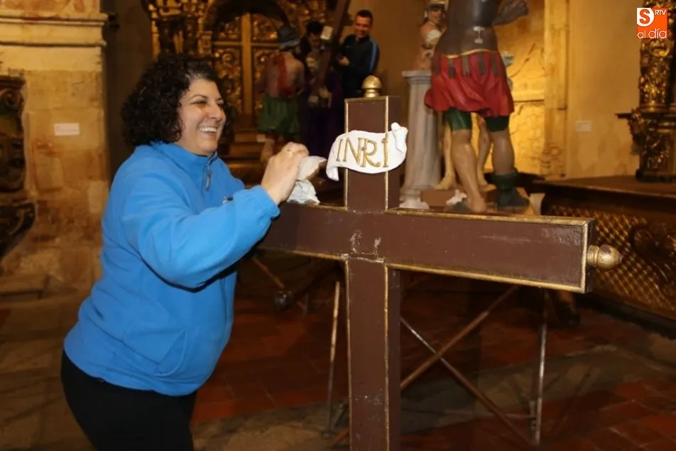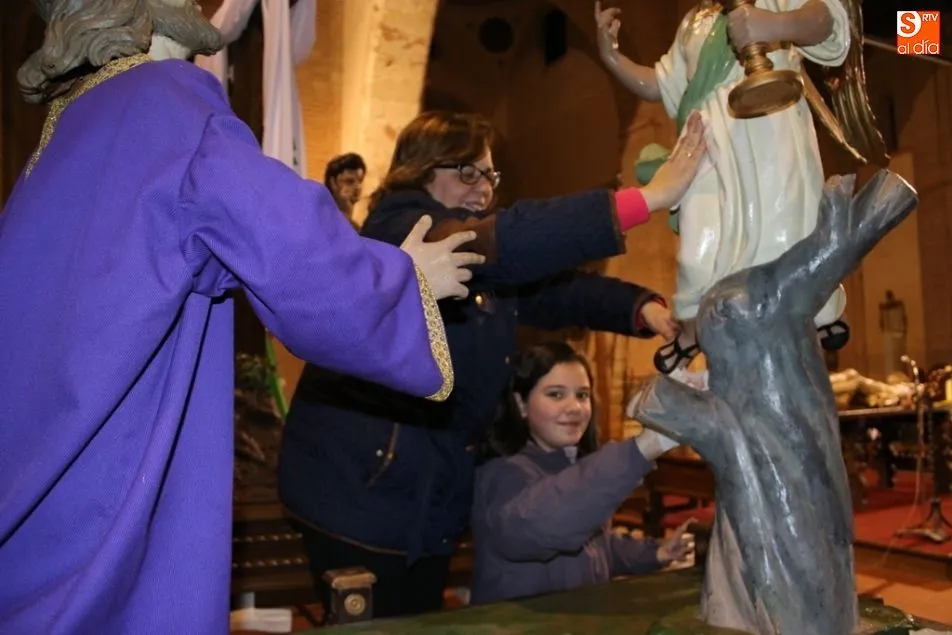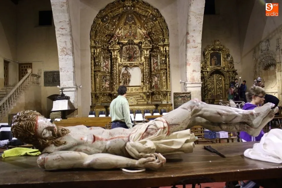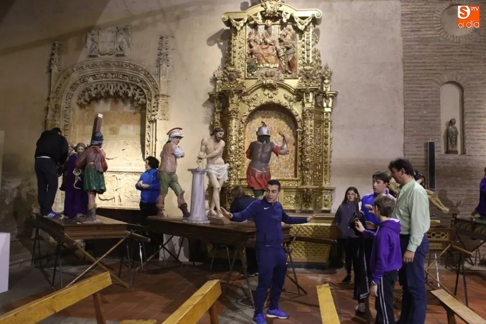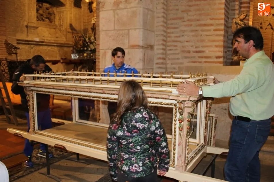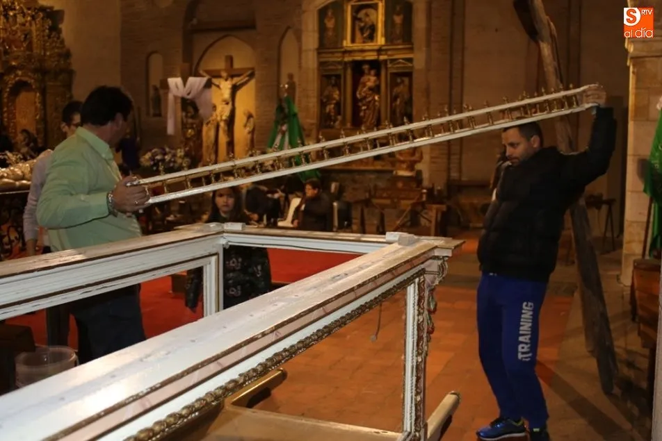 ALBA DE TORMES | Como cada mañana de Jueves Santo, los voluntarios de la cofradía se afanan en el montaje y limpieza de cada una de las imágenes que componen la Semana Santa albense