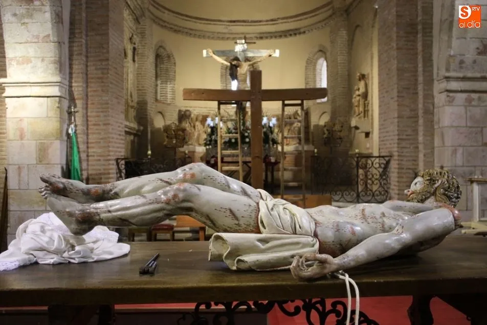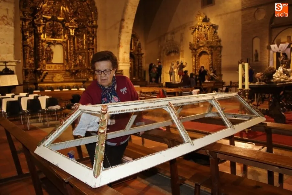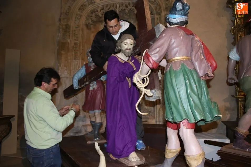 La Madre de Dios, los judíos, el sepulcro y Jesús ayudado por el cirineo son algunos de los pasos procesionales que más tiempo necesitan para su montaje, limpieza y posterior lucimiento por las calles de Alba de Tormes durante la procesión del Viernes Santo.