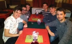 Uno de esos puntos es el emblemático Bar Barrigana, que en la noche del Jueves Santo llenó sus mesas con grupos de jóvenes como el que aparece en la imagen que quisieron pasar el tramo inicial de la velada, en vez de bebiendo sin más, jugándose la bebida con juegos como el kinito, el okalimotxo o varios de cartas.