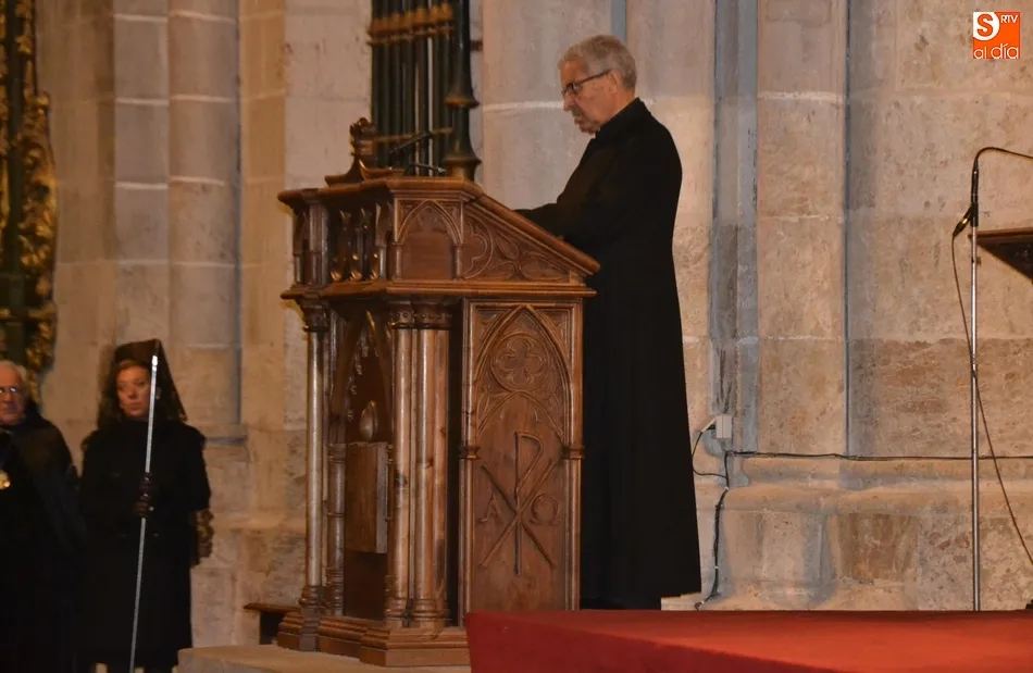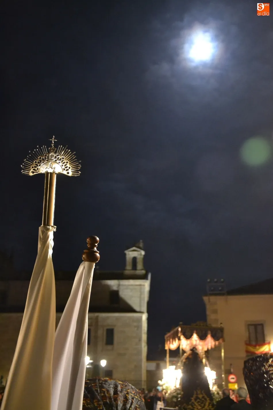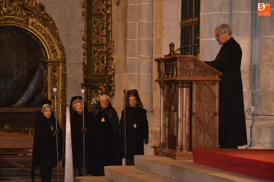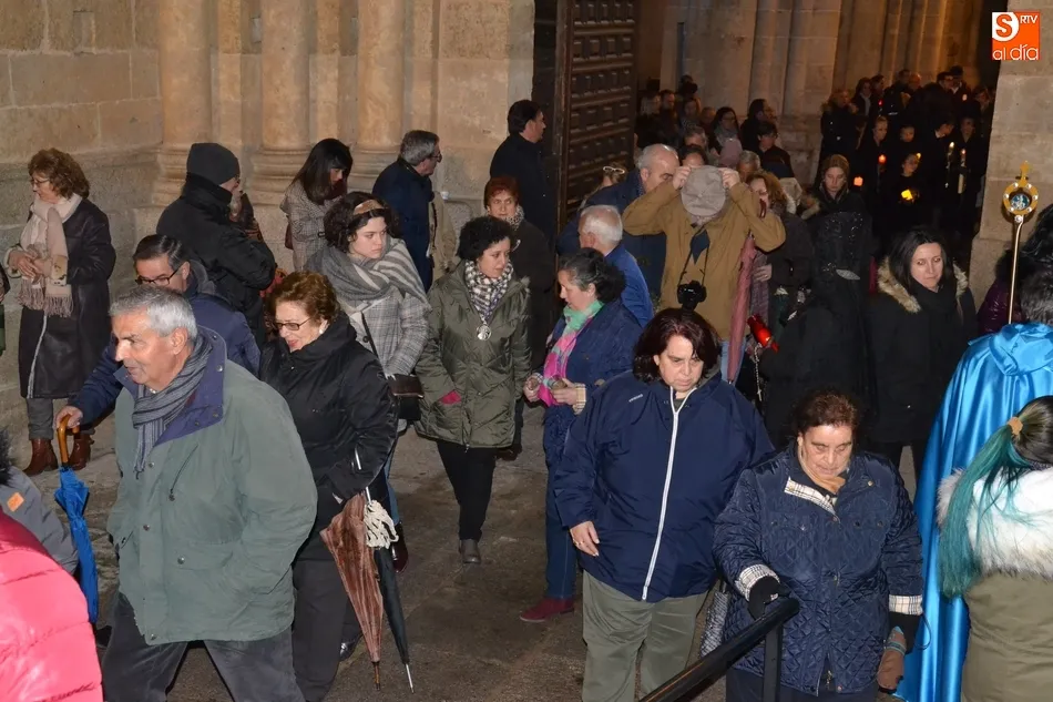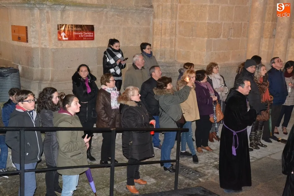 Por cierto, que a la conclusión de la saeta se apagó la luz artística de la Catedral y Cerralbo, al ser justo en ese momento las 12 de la noche, quedando el ambiente a oscuras. Tras unas palabras de despedida por parte del Obispo, se dio por finalizada la procesión, siendo introducida la imagen de La Soledad en la Catedral de Santa María.