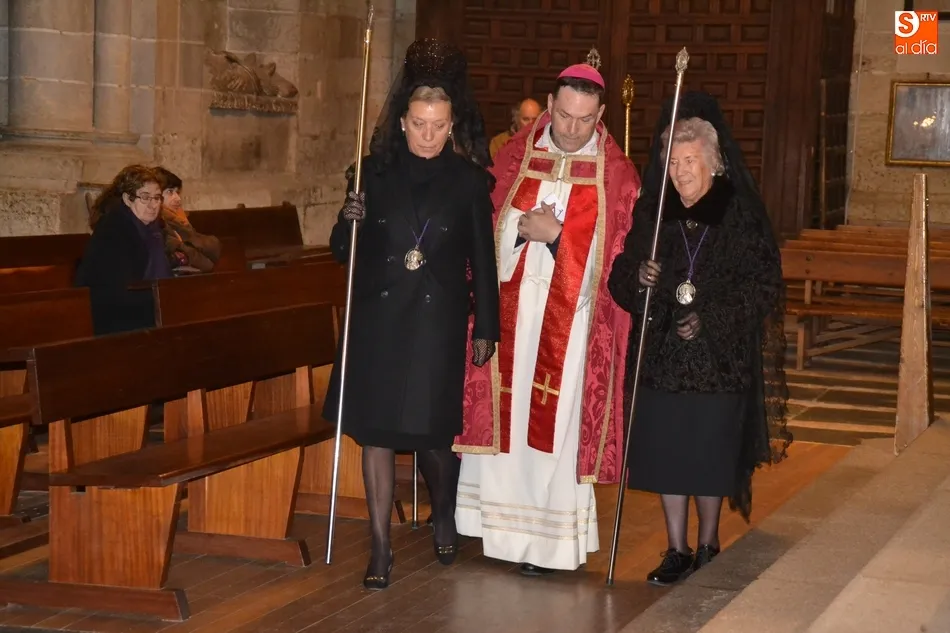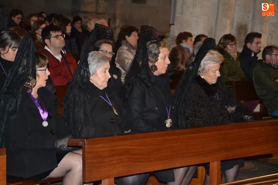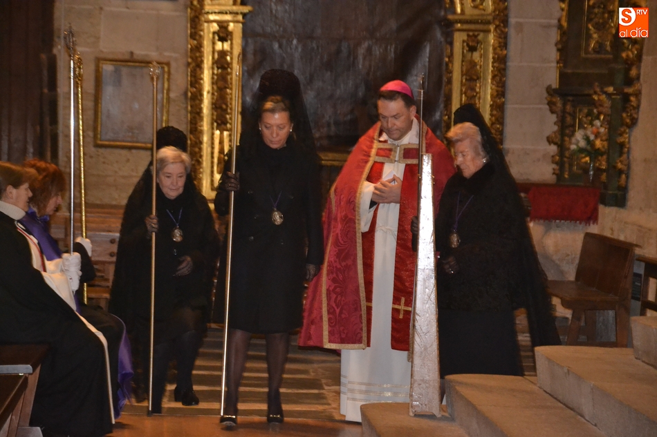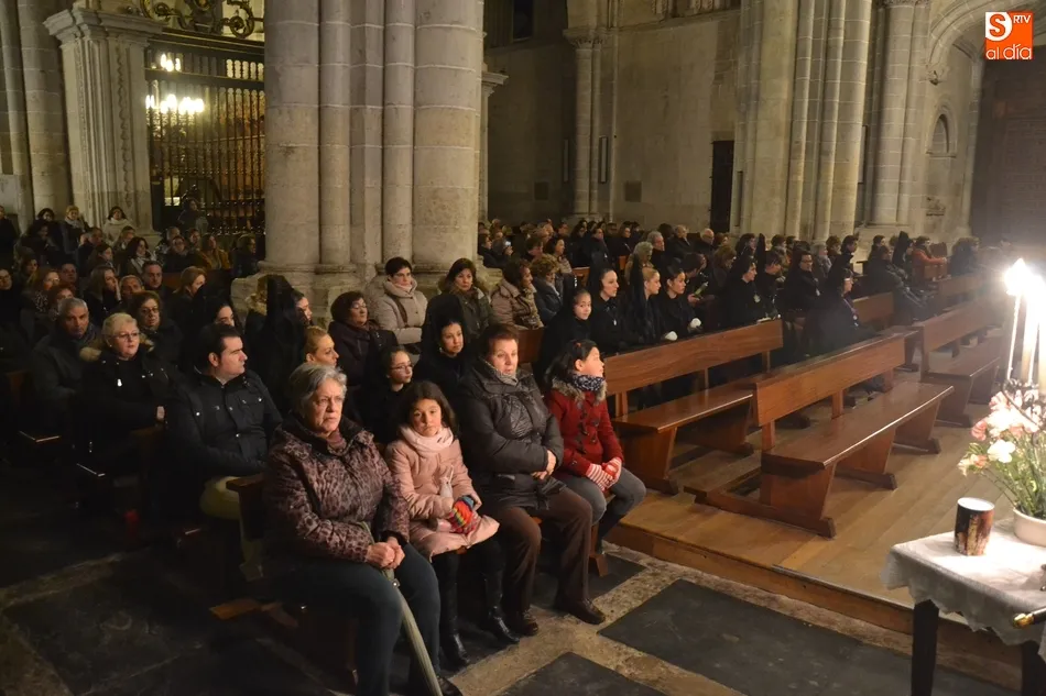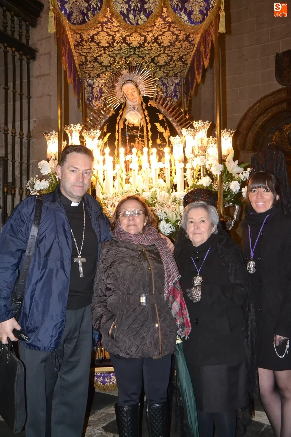 Por cierto, que a la conclusión de la saeta se apagó la luz artística de la Catedral y Cerralbo, al ser justo en ese momento las 12 de la noche, quedando el ambiente a oscuras. Tras unas palabras de despedida por parte del Obispo, se dio por finalizada la procesión, siendo introducida la imagen de La Soledad en la Catedral de Santa María.
