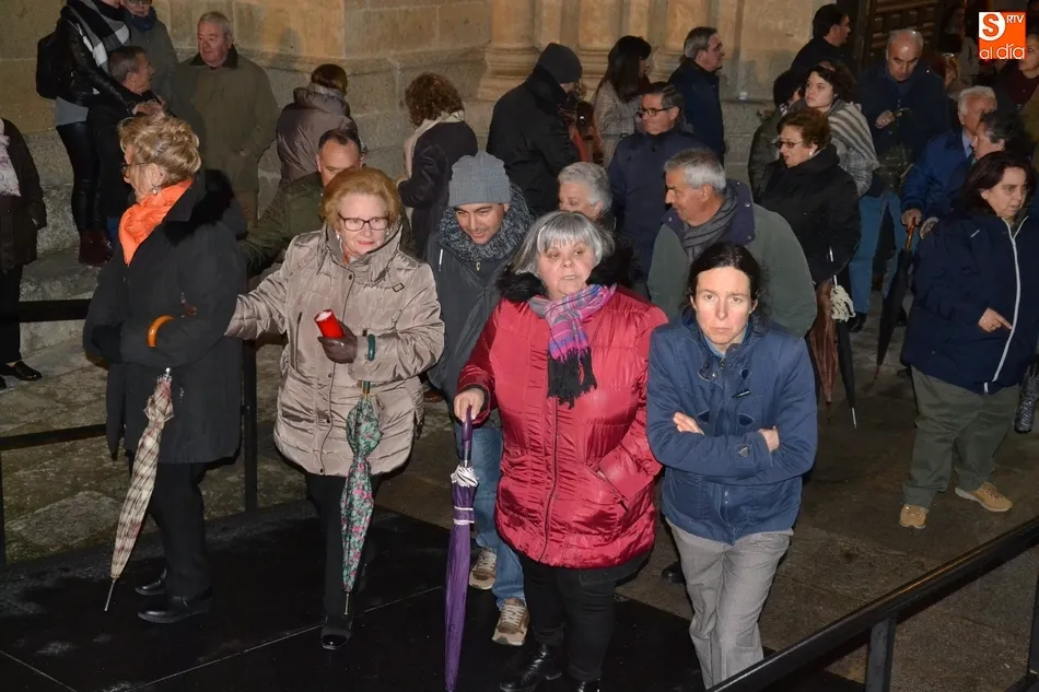 Como cierre del trayecto, se cogieron Julián Sánchez y Cardenal Pacheco para alcanzar la Catedral. A las puertas de la Seo, hubo un doble momento de relevancia. En primer lugar la Banda Municipal de Música interpretó una saeta que emocionó a unos cuantos de los presentes (se hubiera merecido un aplauso, pero el ambiente de solemnidad y recogimiento no era propicio para ello), siendo turno a continuación para el canto de la Salve.