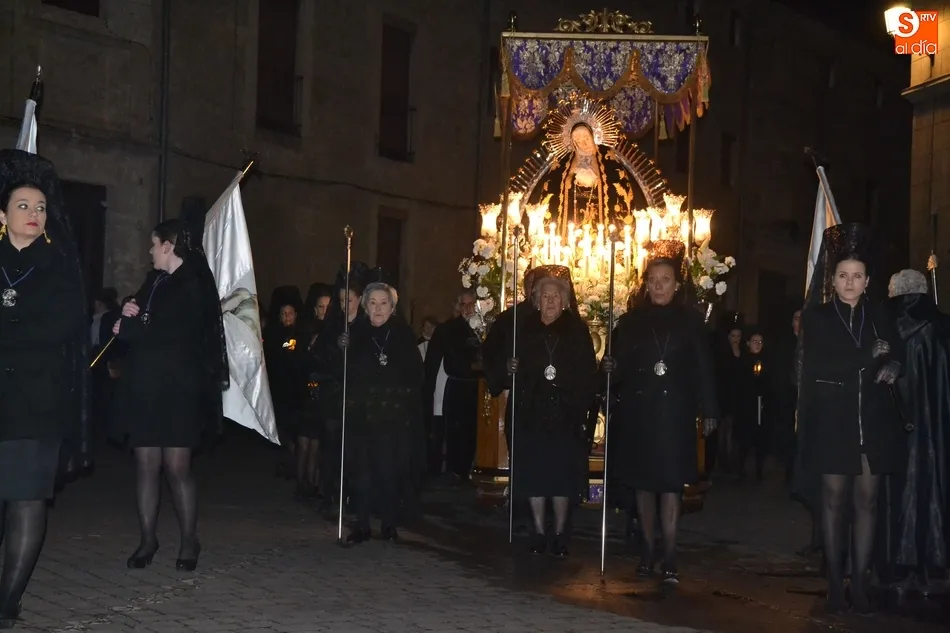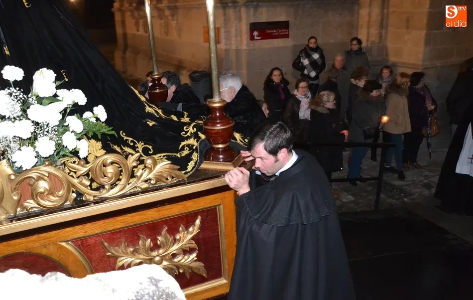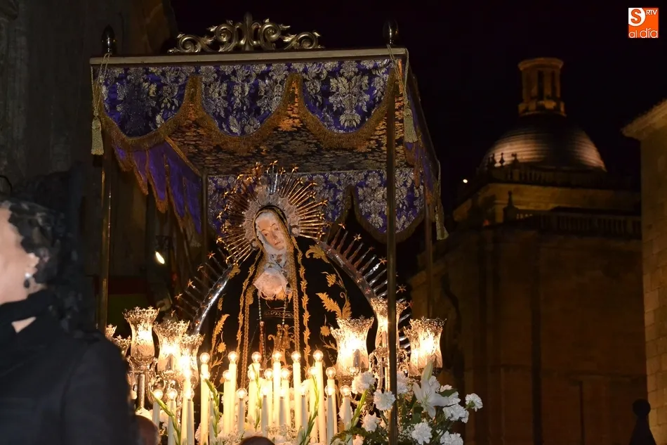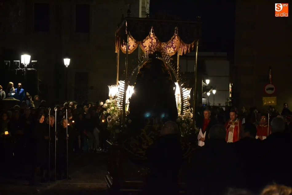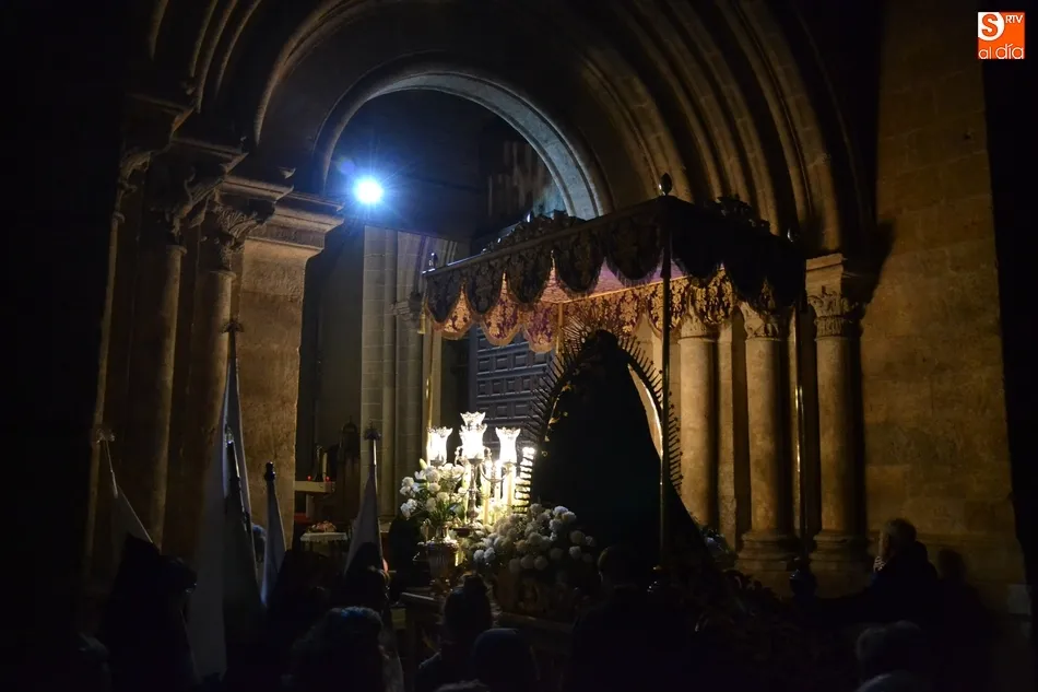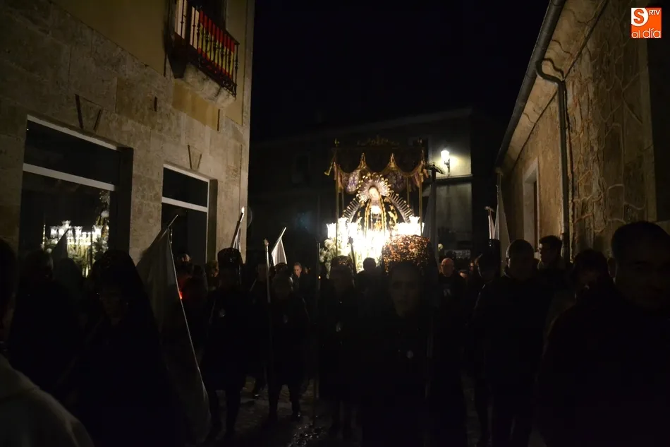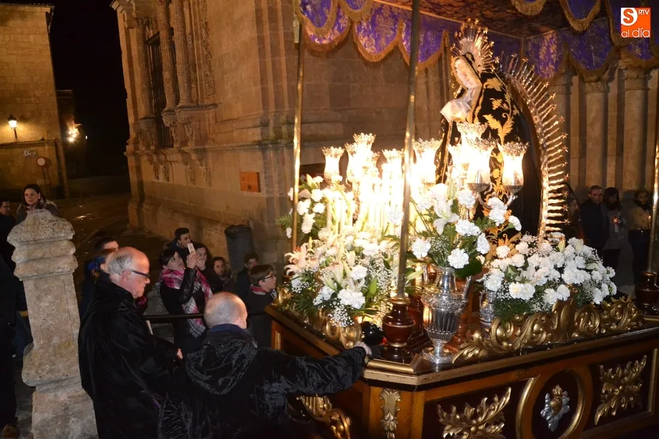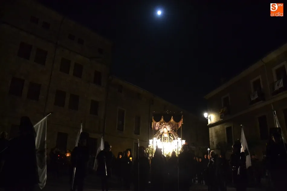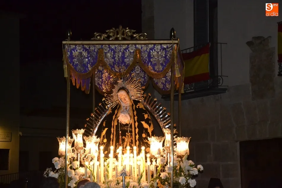 Tras la decepción de no poder llevar a cabo la procesión del Santo Entierro, conocida como La Carrera, la Semana Santa Mirobrigense pudo acabar con buen sabor de boca la jornada del Viernes Santo al desarrollar con total tranquilidad la procesión de Nuestra Señora de La Soledad, que un año más reinó en las calles de Ciudad Rodrigo, aunque con menor seguimiento.
