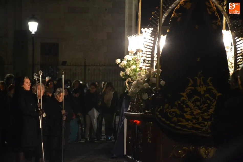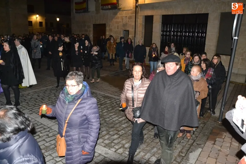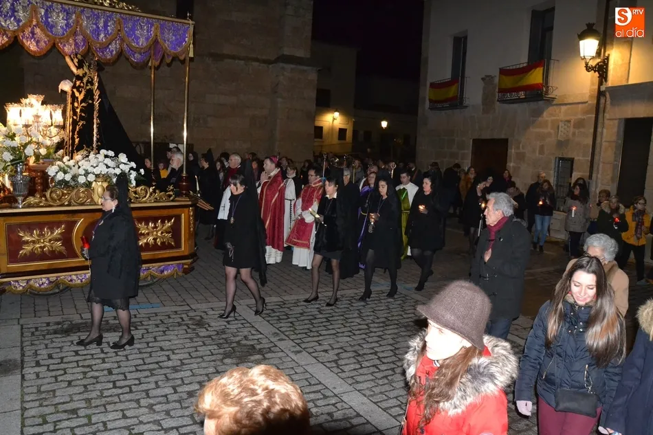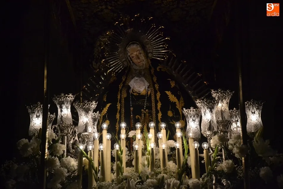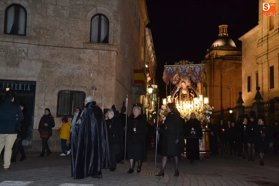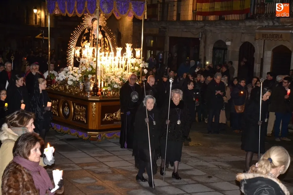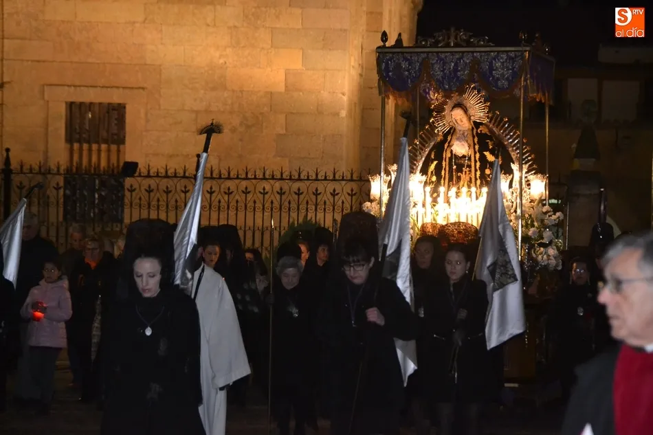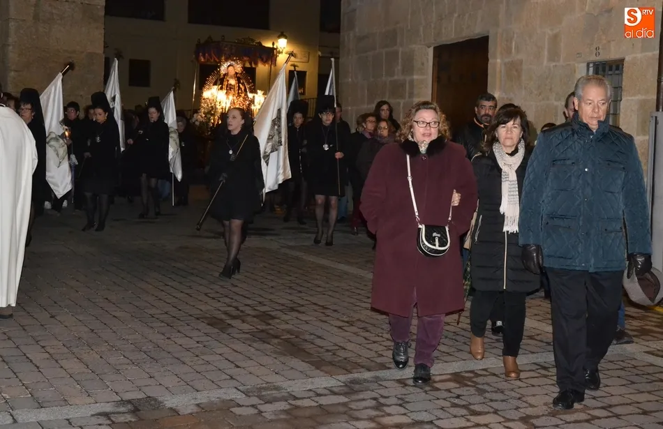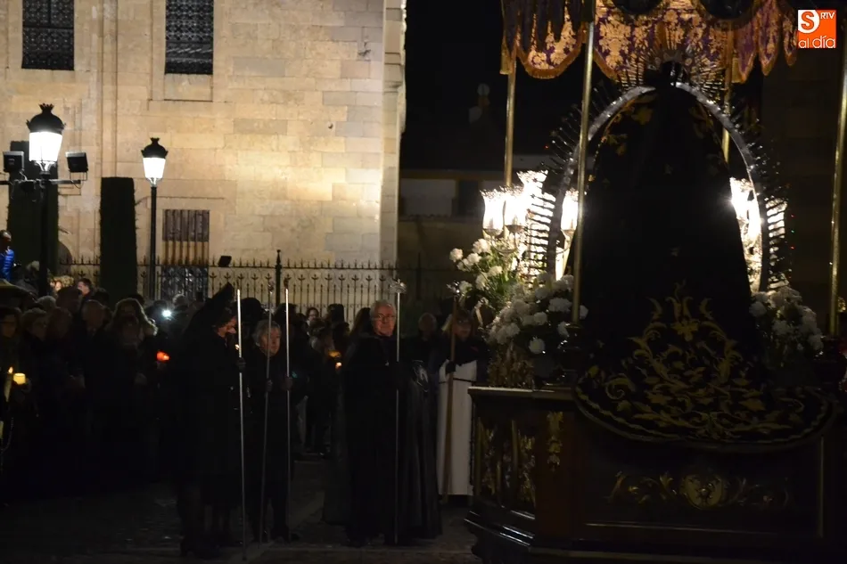 Tras la decepción de no poder llevar a cabo la procesión del Santo Entierro, conocida como La Carrera, la Semana Santa Mirobrigense pudo acabar con buen sabor de boca la jornada del Viernes Santo al desarrollar con total tranquilidad la procesión de Nuestra Señora de La Soledad, que un año más reinó en las calles de Ciudad Rodrigo, aunque con menor seguimiento.