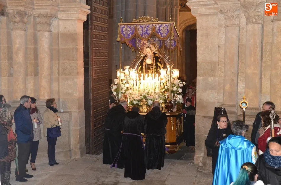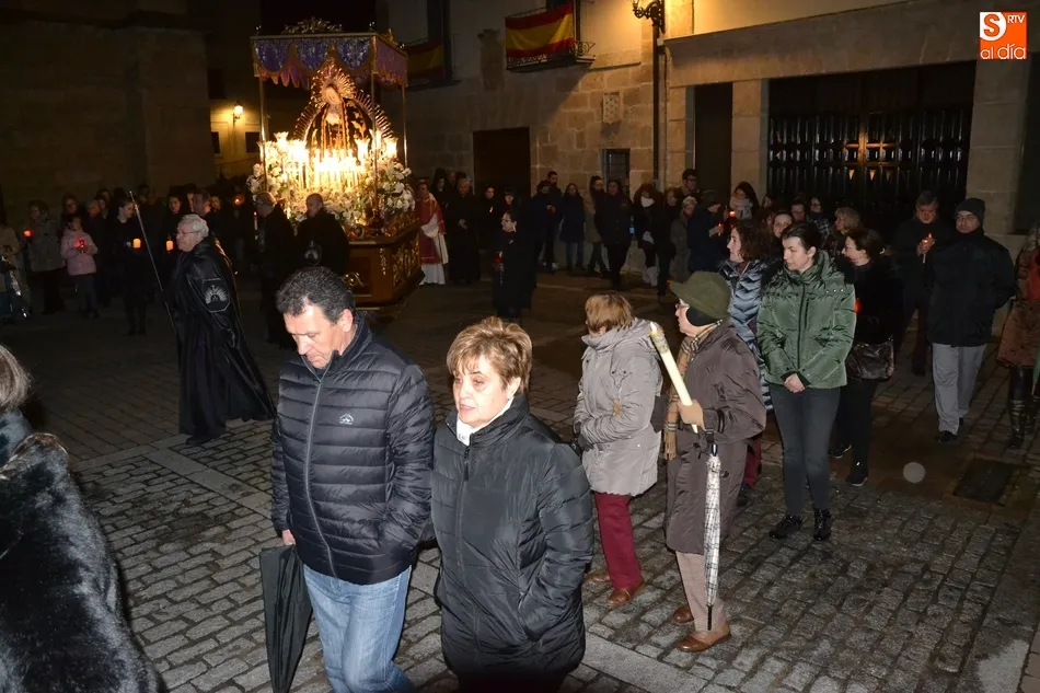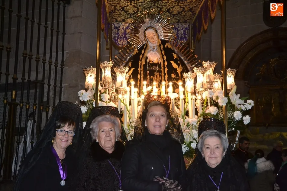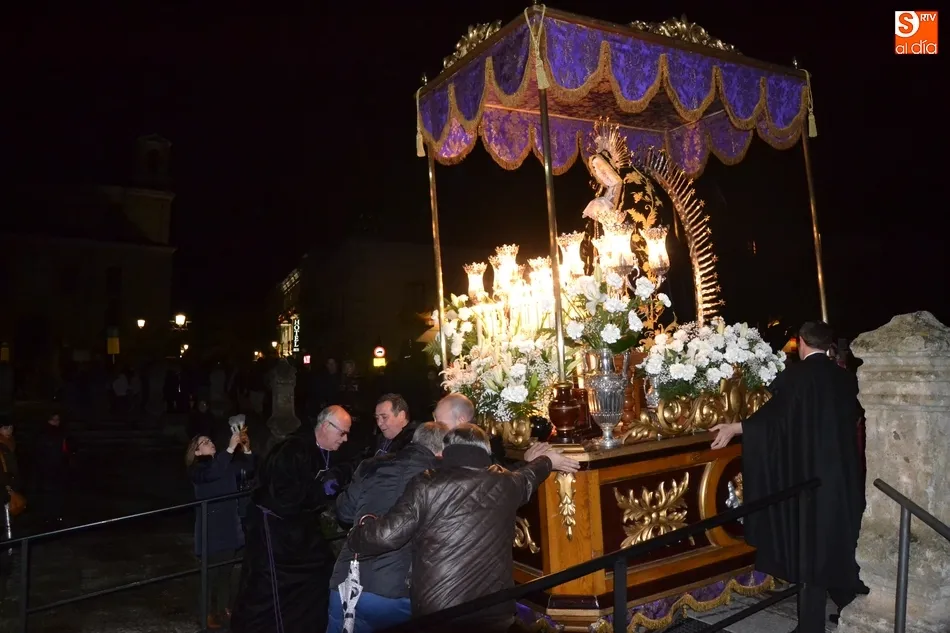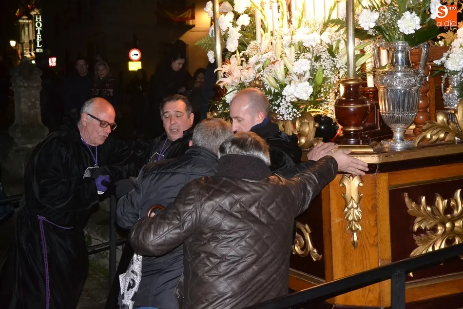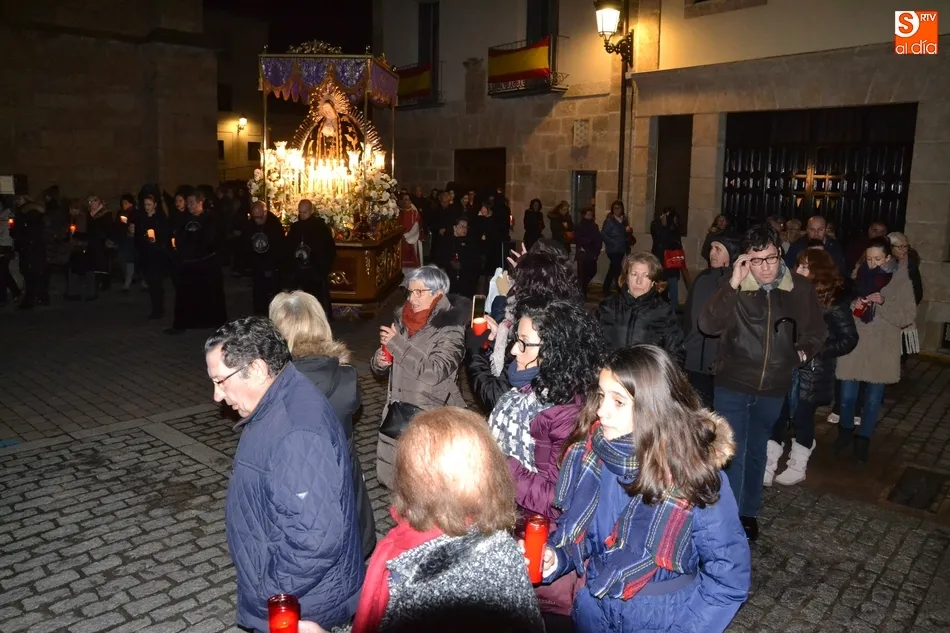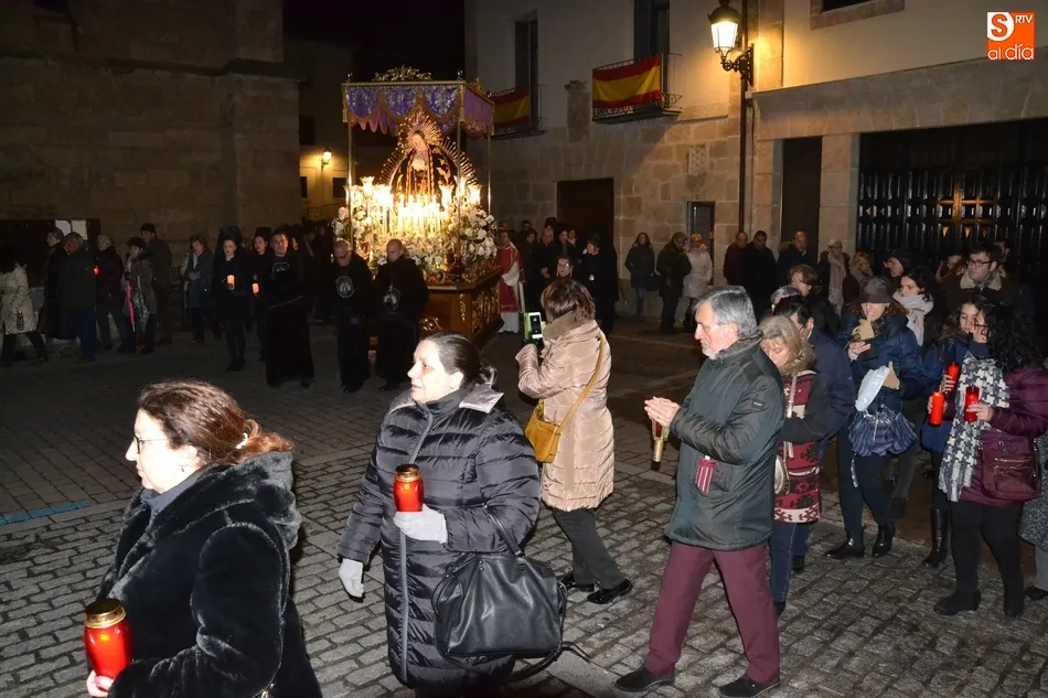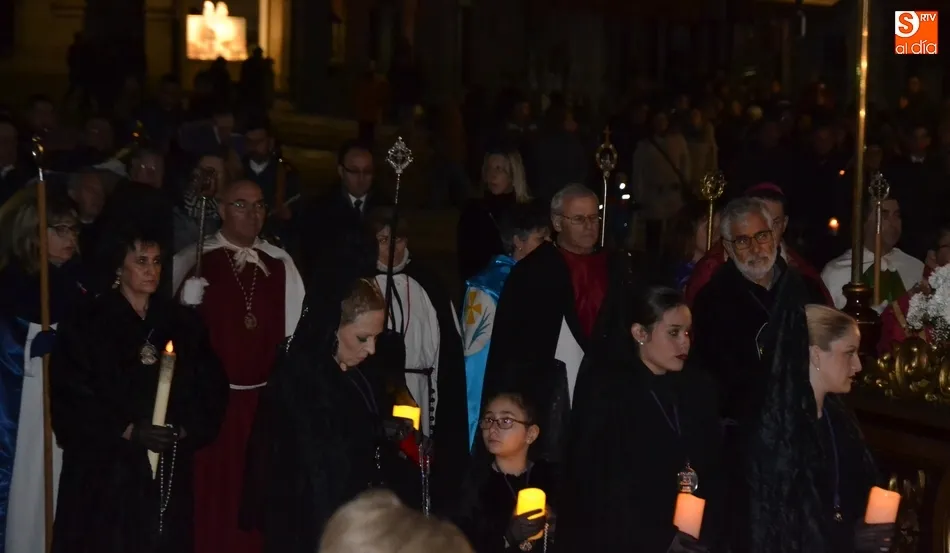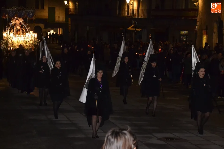 Tras la decepción de no poder llevar a cabo la procesión del Santo Entierro, conocida como La Carrera, la Semana Santa Mirobrigense pudo acabar con buen sabor de boca la jornada del Viernes Santo al desarrollar con total tranquilidad la procesión de Nuestra Señora de La Soledad, que un año más reinó en las calles de Ciudad Rodrigo, aunque con menor seguimiento.