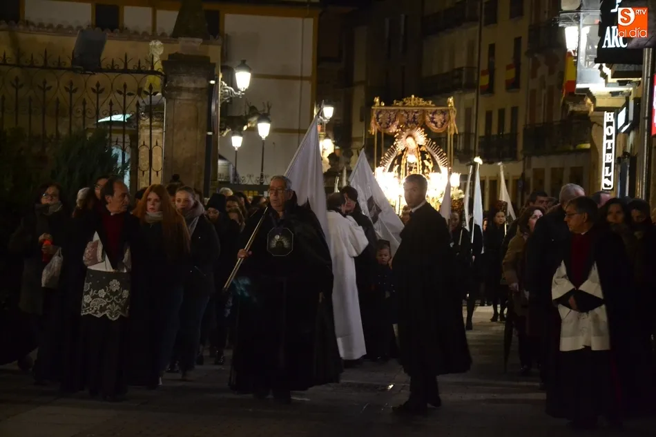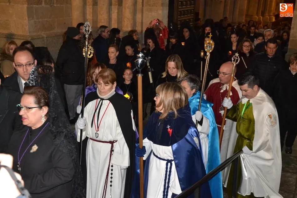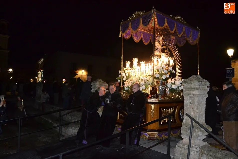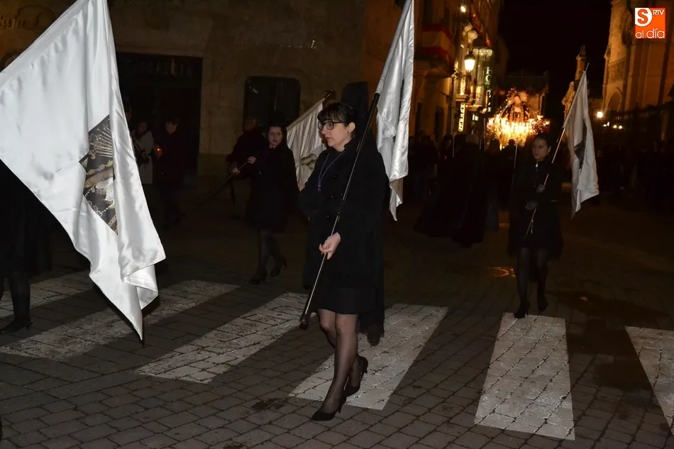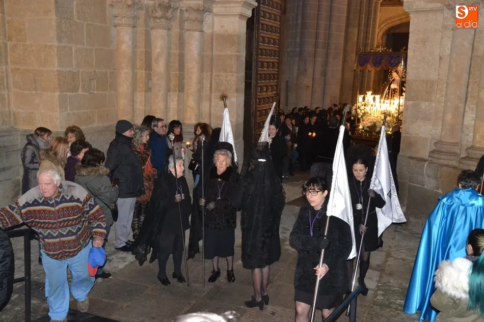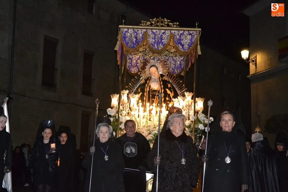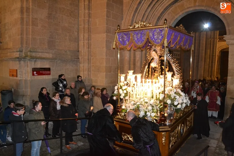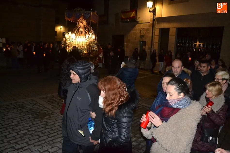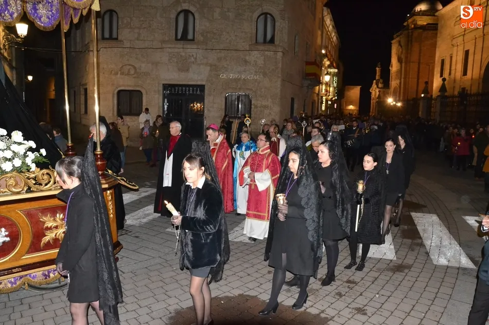 Tras la decepción de no poder llevar a cabo la procesión del Santo Entierro, conocida como La Carrera, la Semana Santa Mirobrigense pudo acabar con buen sabor de boca la jornada del Viernes Santo al desarrollar con total tranquilidad la procesión de Nuestra Señora de La Soledad, que un año más reinó en las calles de Ciudad Rodrigo, aunque con menor seguimiento.