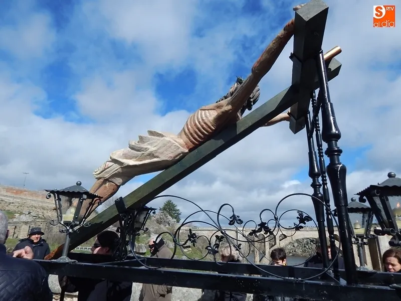 Portado a hombros, recorre las 14 estaciones del Vía Crucis desde la ermita al otro lado del río hasta la iglesia de Santa María La Mayor