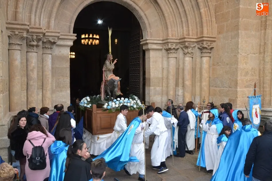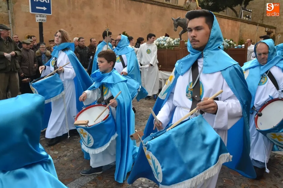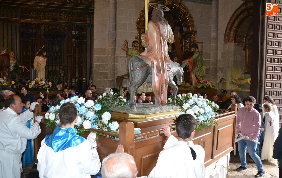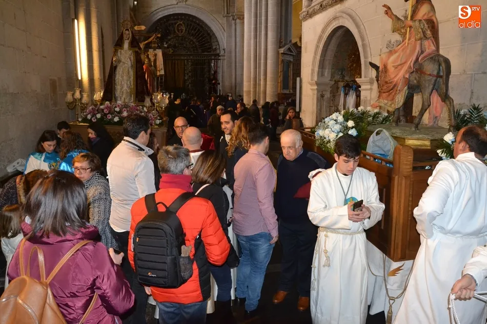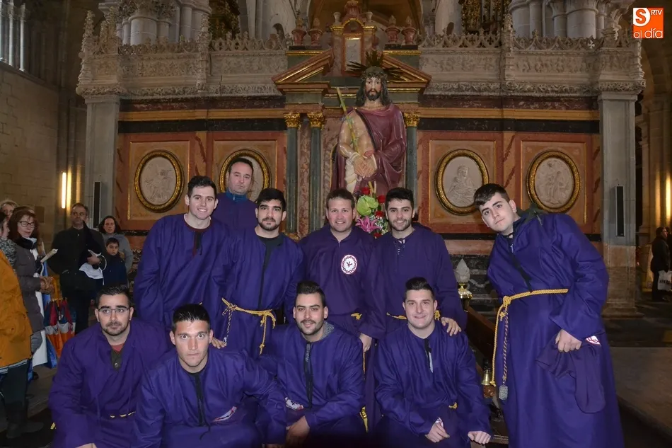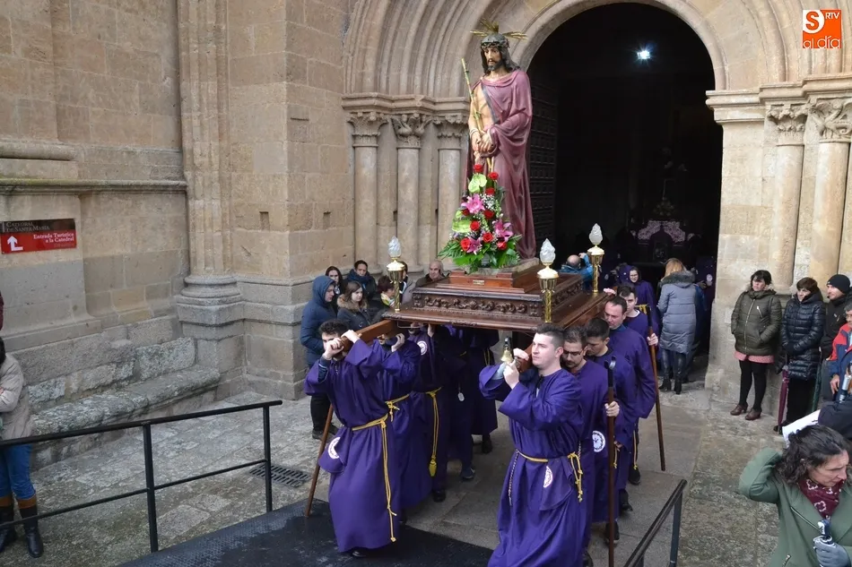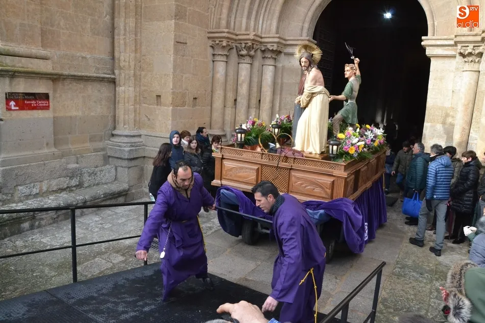 El primer paso en abandonar la Catedral fue La Borriquilla, que estuvo esperando fuera a la nueva banda de la Cofradía de Jesús Amigo de los Niños, para irse juntos hasta la Plaza Mayor y de ahí en dirección a Correos. A continuación, la Cofradía de Jesús Nazareno sacó de la Catedral sus pasos de La Caída, el Ecce Homo, Jesús Nazareno y Los Azotes, con destino a la Iglesia de San Agustín donde están todo el año.