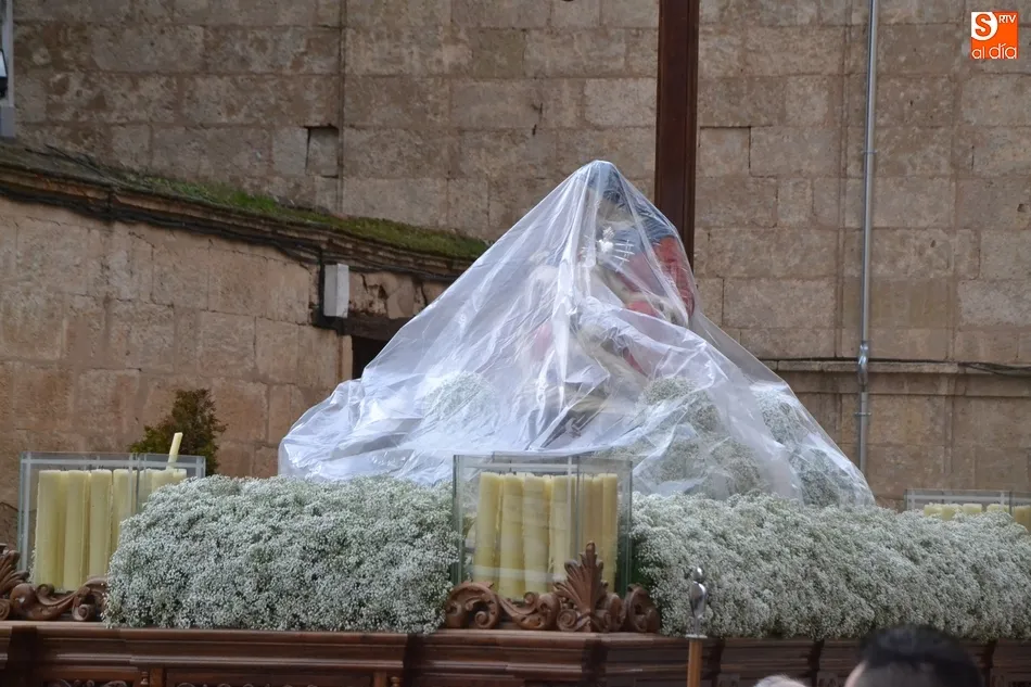 La mala meteorología obligó a cancelar en la tarde del Viernes Santo la procesión principal de la Semana Santa Mirobrigense, la del Santo Entierro, conocida popularmente como La Carrera. Desde hacía días, las previsiones para esta jornada eran bastante negativas, especialmente en el tramo de tarde-noche, y finalmente se cumplieron, lo que no dejó más remedio que tomar la decisión de la cancelación total, que hacía mucho tiempo que no se producía.