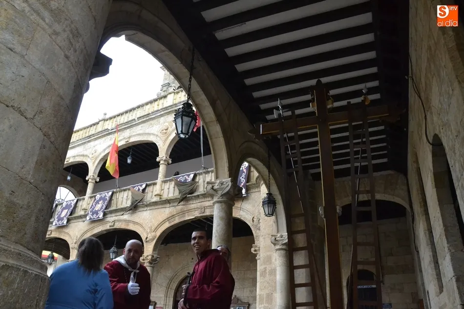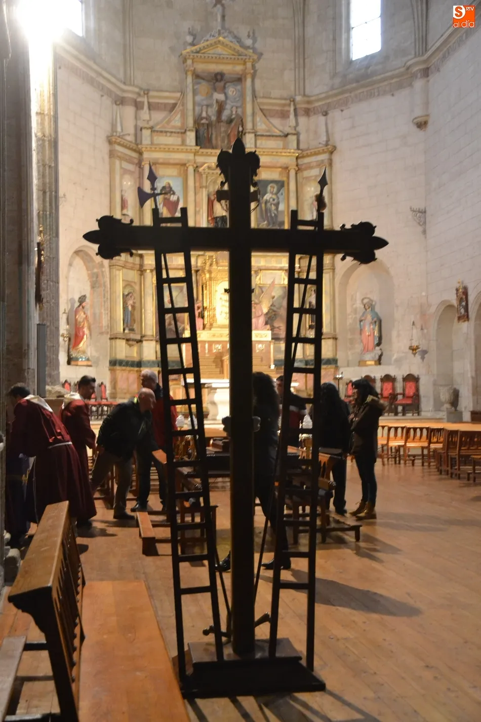 Esto hizo que, en el momento en que llovió a las 19.15 horas, se decidiera buscar un refugio improvisado para el paso de la Santa Cruz en los soportales de la Casa Consistorial. Allí estuvo unos cuantos minutos hasta que se despejó la entrada a San Agustín, una vez se desmontaron los pasos de Los Azotes y El Calvario. Una vez se acercó el paso de la Santa Cruz hasta las puertas de la Iglesia, se quitó la Cruz en sí, que fue introducida en primer lugar, y posteriormente las andas.