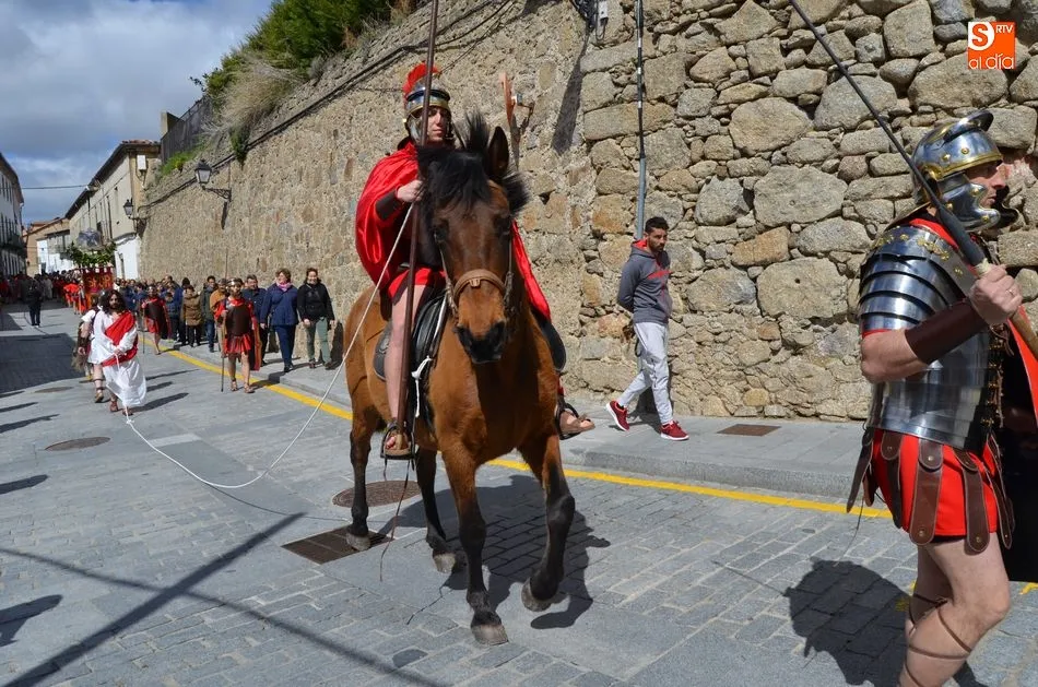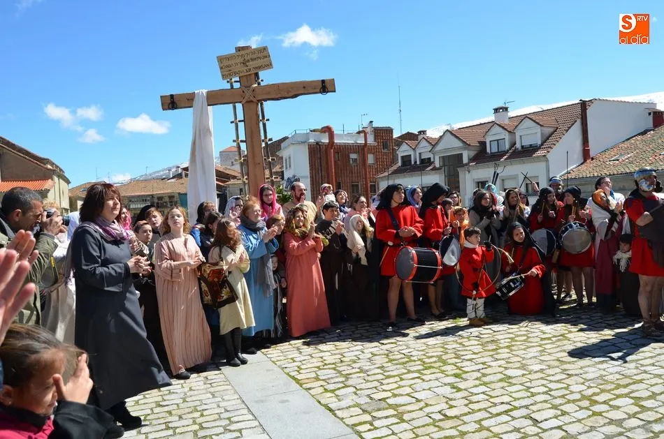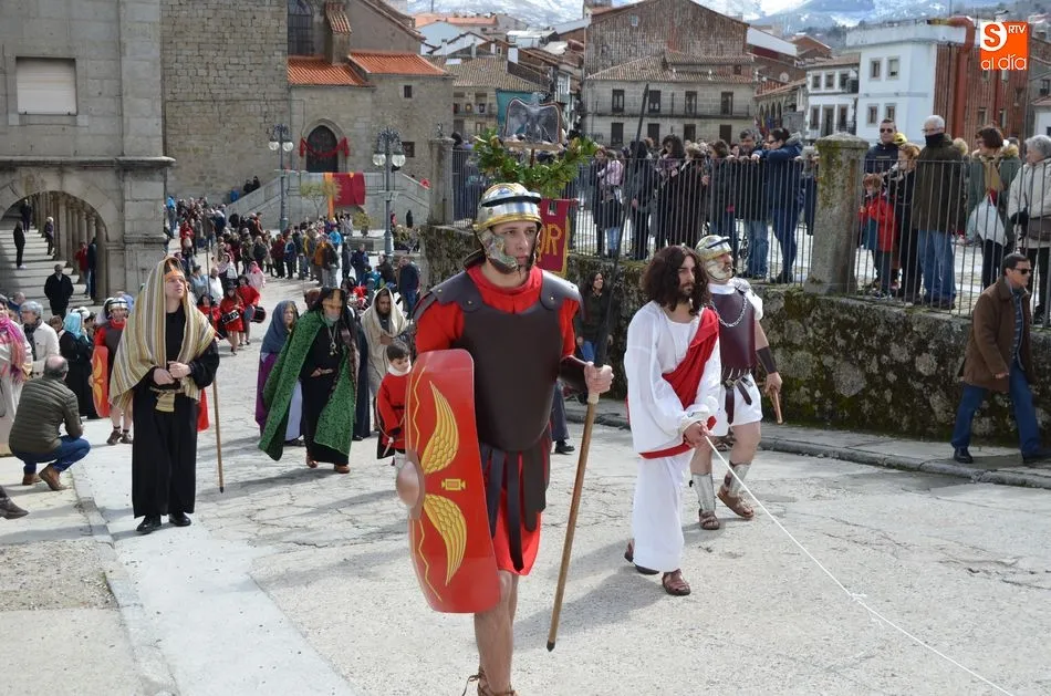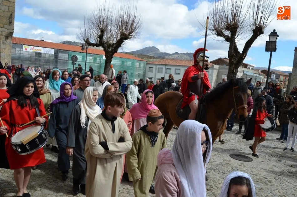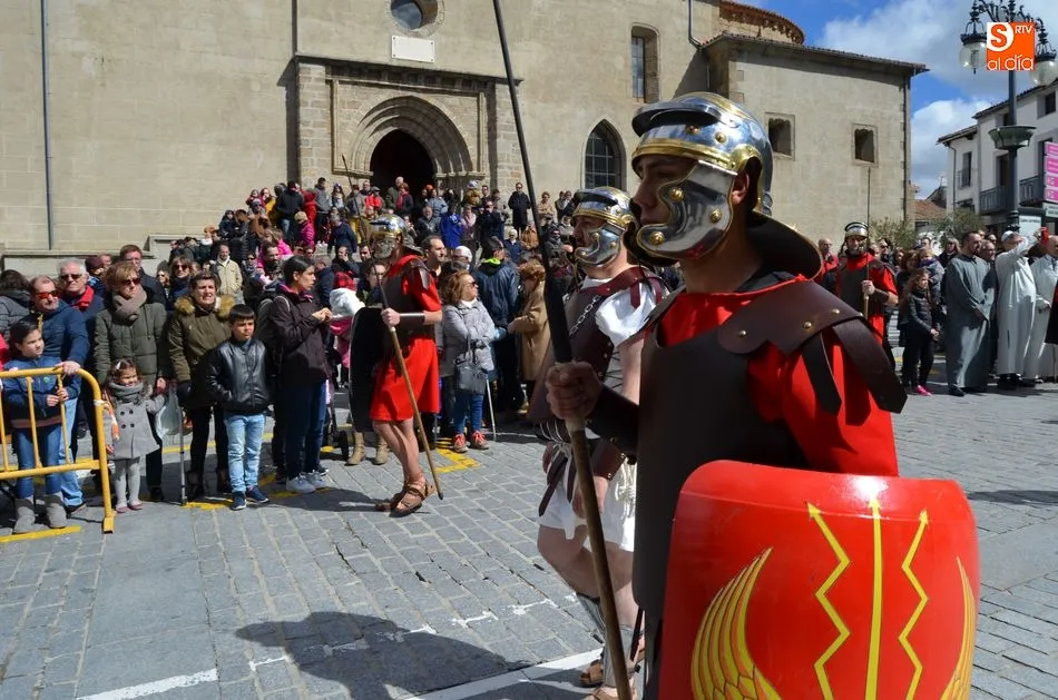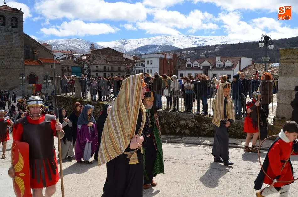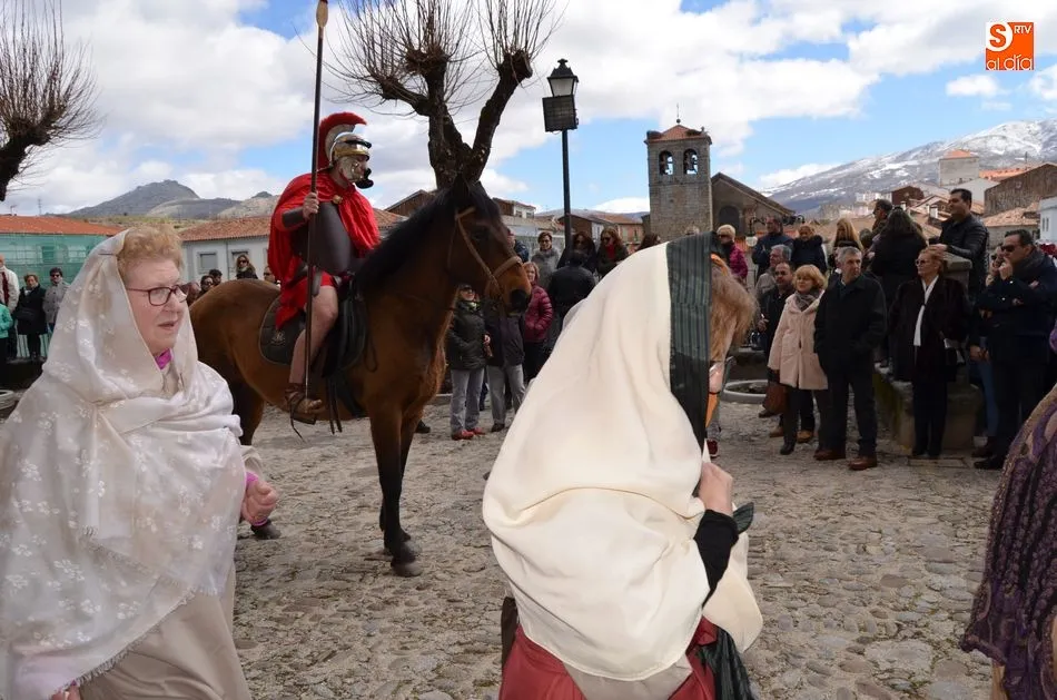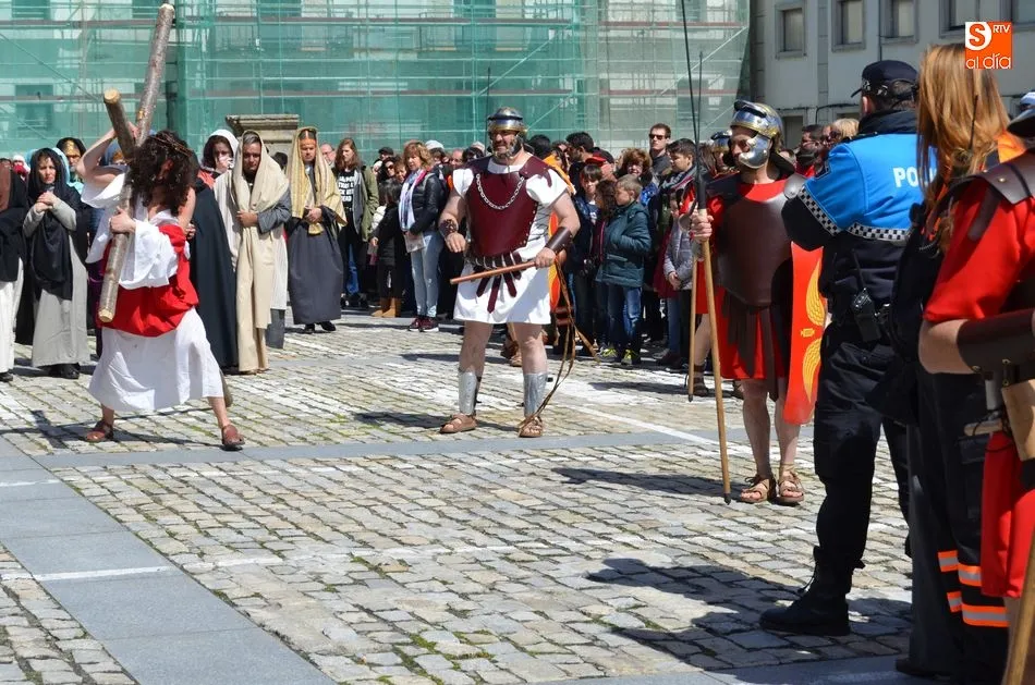 Hacia el medio día de Viernes Santo, el condenado emprende el camino del monte Calvario con una pesada cruz sobre los hombros, cuyo excesivo peso le hace sufrir tres caídas y tiene que ser ayudado por el Cirineo, durante este camino tiene lugar el encuentro con su Madre y con las Santas Mujeres. La Verónica apiadándose de él le limpia el rostro con un lienzo en el que quedan impresas las facciones de Jesucristo (La Santa Faz).