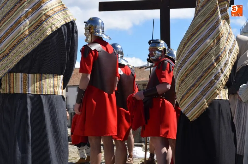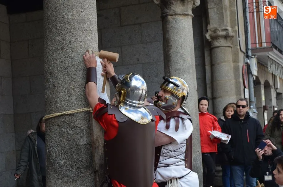 Se cumple La Sentencia en la mañana de Viernes Santo y a las tres de la tarde aparecen las tinieblas. La Hermandad de Jesús Nazareno y Nuestra Señora de las Angustias y el Colectivo de Teatro Telar, han representado esta mañana La Sentencia, una escenografía de varios episodios de la Pasión, que utiliza como escenarios puntos del casco histórico de la ciudad.