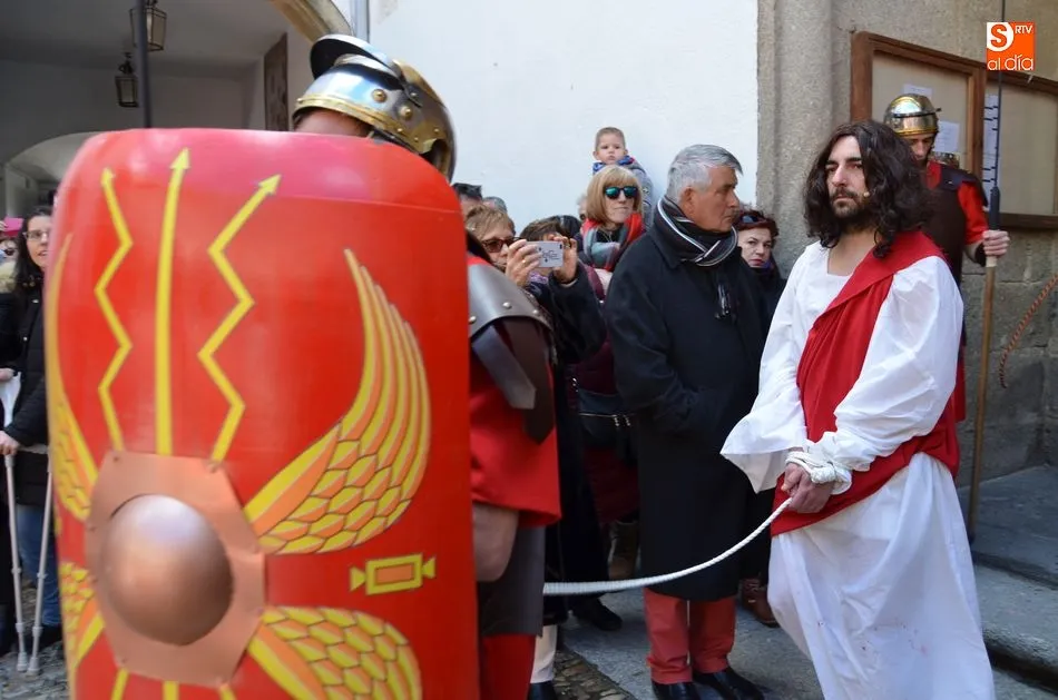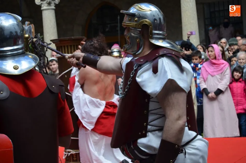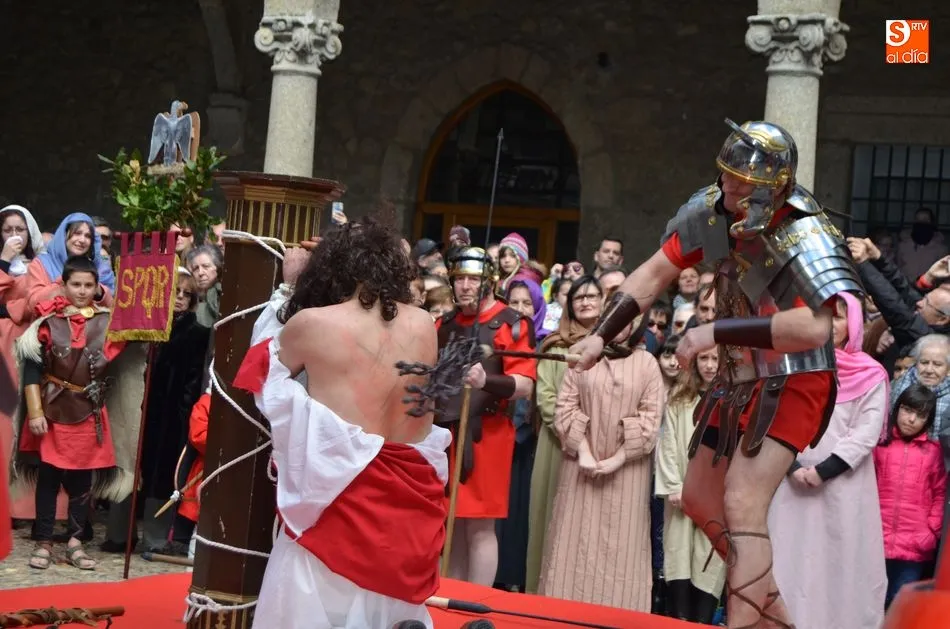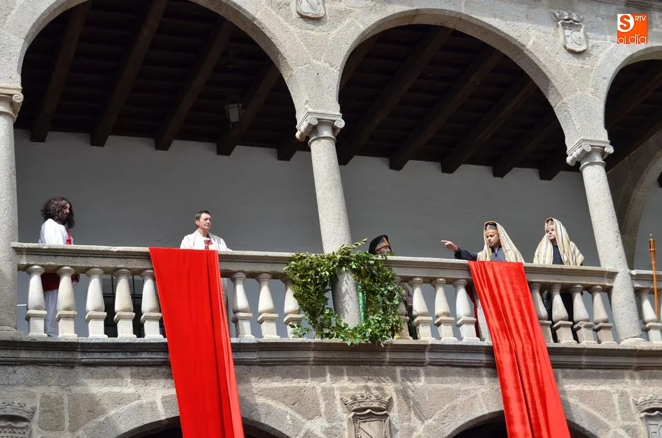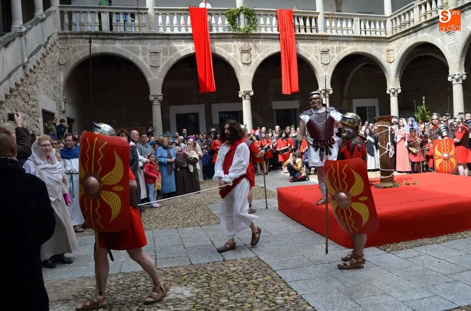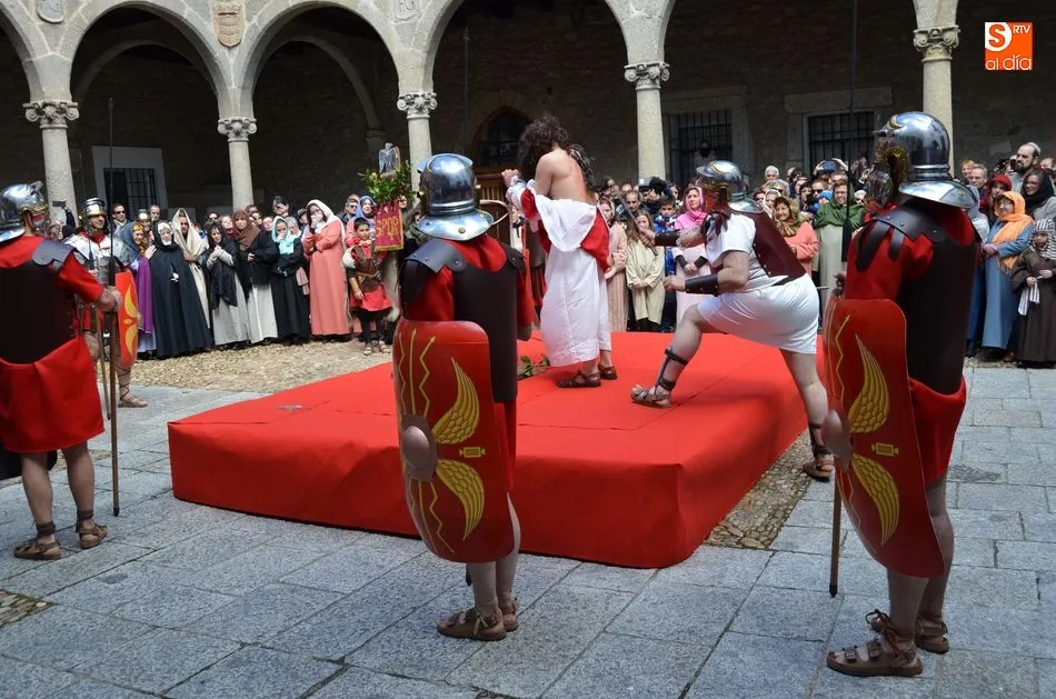 El palacio Ducal de Béjar se convierte en la Fortaleza Antonia, morada de Poncio Pilato, donde Jesús es despojado de sus vestiduras y atado a una columna para ser azotado y nuevamente burlado, esta vez por los soldados romanos, que le ponen un manto púrpura, le coronan de espinas y le ponen una caña en la mano a modo de cetro, riéndose del Rey de los Judíos. Pilato, al verle en tan lamentable estado, cree que los judíos quedarán satisfechos, pero no es así y a la vista de todo el gentío congregado, se lava las manos afirmándose inocente de su muerte y entregándoles a Jesús para su crucifixión.