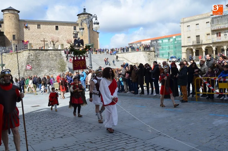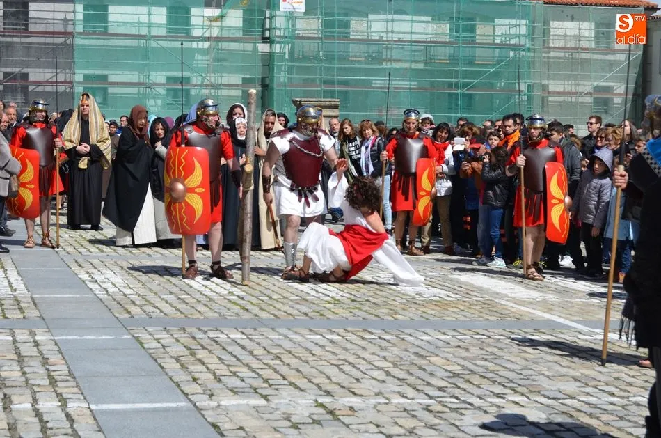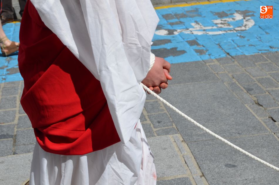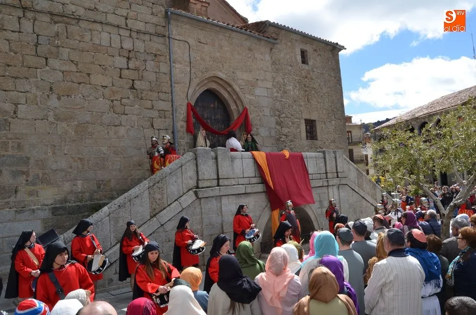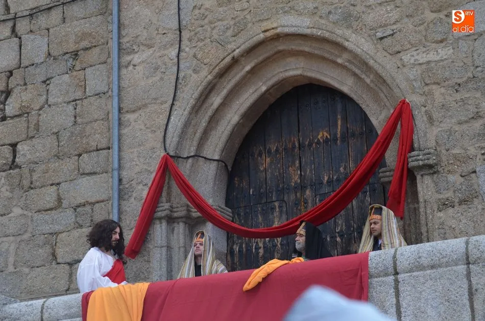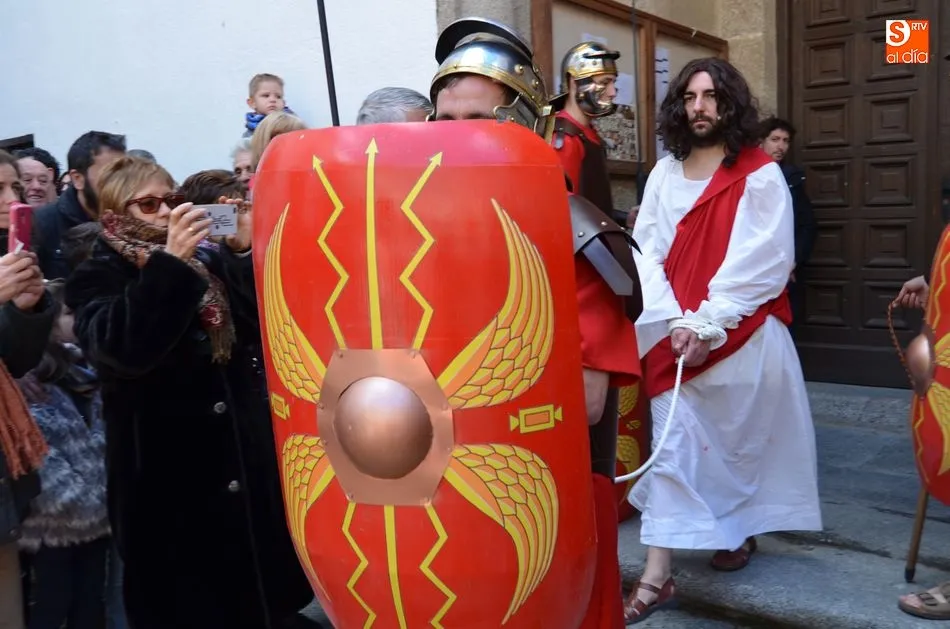 El palacio Ducal de Béjar se convierte en la Fortaleza Antonia, morada de Poncio Pilato, donde Jesús es despojado de sus vestiduras y atado a una columna para ser azotado y nuevamente burlado, esta vez por los soldados romanos, que le ponen un manto púrpura, le coronan de espinas y le ponen una caña en la mano a modo de cetro, riéndose del Rey de los Judíos. Pilato, al verle en tan lamentable estado, cree que los judíos quedarán satisfechos, pero no es así y a la vista de todo el gentío congregado, se lava las manos afirmándose inocente de su muerte y entregándoles a Jesús para su crucifixión.