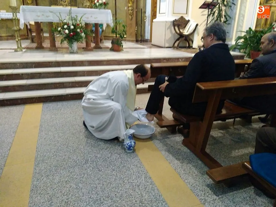 La programación de la parroquia de Guijuelo contó ayer con la celebración de la Eucaristía de la Cena del Señor y el Lavatorio de los Pies en la iglesia de la villa. De nuevo, numerosos fieles acudieron al templo para cumplir con la tradición del Jueves Santo guijuelense, con un oficio al que no faltaron representantes del Ayuntamiento de la villa, encabezados por el alcalde, Julián Ramos.
