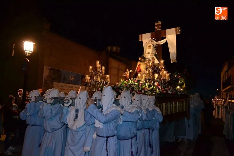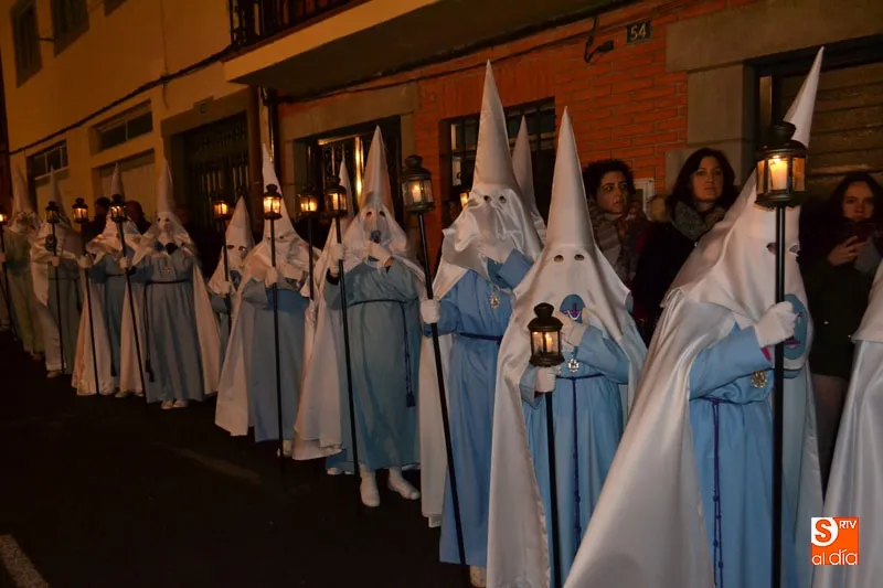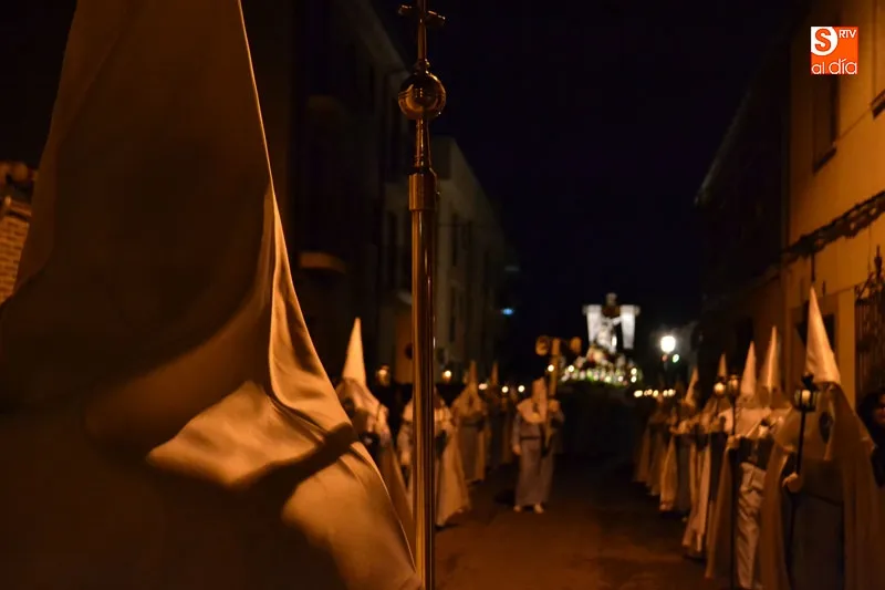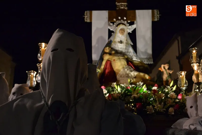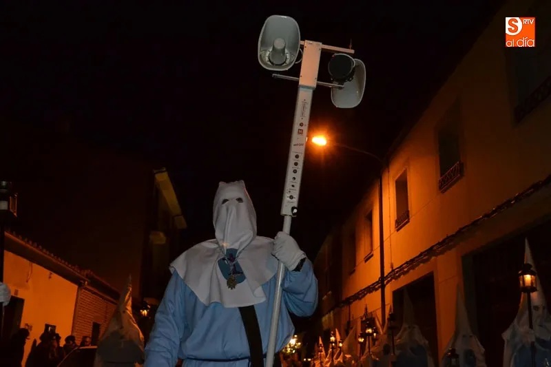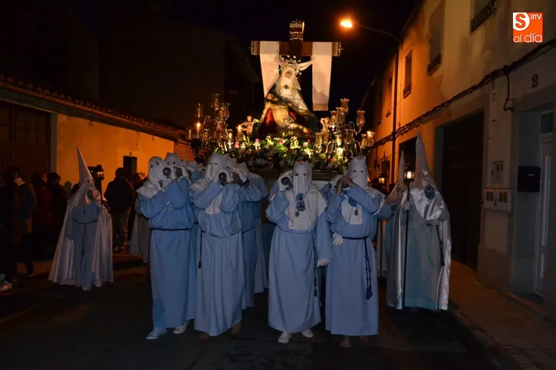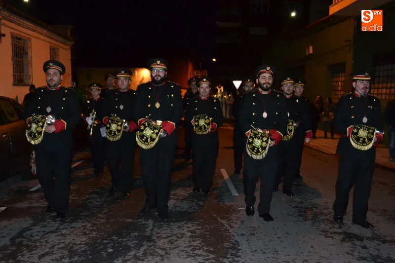 sar del intenso frio protagonista eran decenas las personas que se agolparon a las puertas de la Ermita de San Luis desde antes de las siete de la mañana para vivir la salida de esta venerada talla junto a todos sus hermanos de carga y autoridades para iniciar un respetuoso desfile que estuvo acompañado por los sones de la Banda de Cornetas y Tambores de la Hermandad de Cofradías hasta su llegada a la iglesia parroquial San Miguel Arcángel.