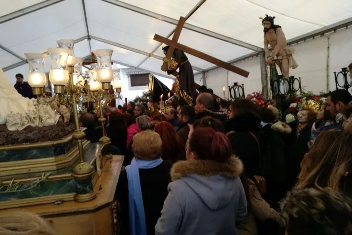 Hoy la lluvia ha impedido la salida de la procesión del Santo Entierro y la Cofradía de la Santa Vera Cruz ha tenido que suspenderla en el último momento, tras una tarde muy fría en la que los chubascos intermitentes de aguanieve hacían presagiar que no podría salir.