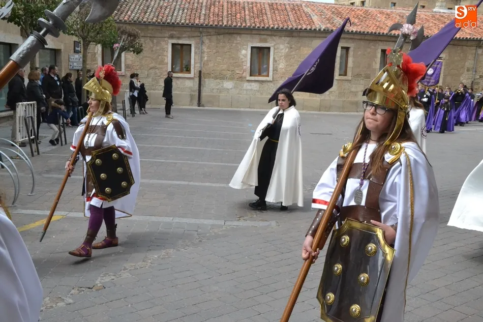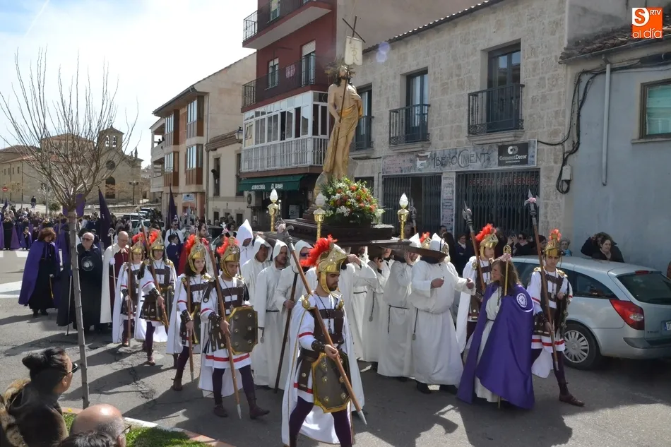 El Resucitado, escoltado por los soldados romanos, transitó por San Cristóbal, Lorenza Iglesias, Laguna, Santa Clara, Glorieta del Árbol Gordo, Registro, Campofrío, Muralla y Rúa del Sol, mientras que La Dolorosa recorrió la Plazuela de San Salvador, Díez Taravilla y La Colada en dirección a la Plaza, donde realizó una serie de comentarios el recientemente ordenado diácono José Efraín Peinado.