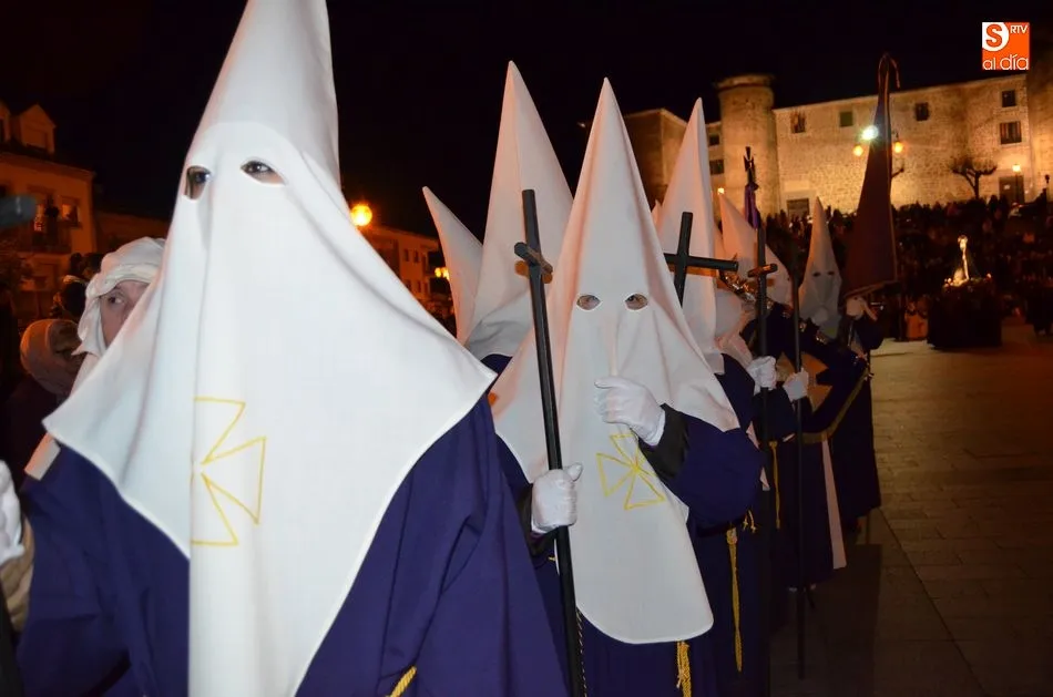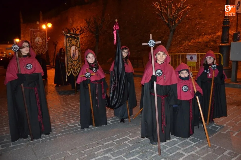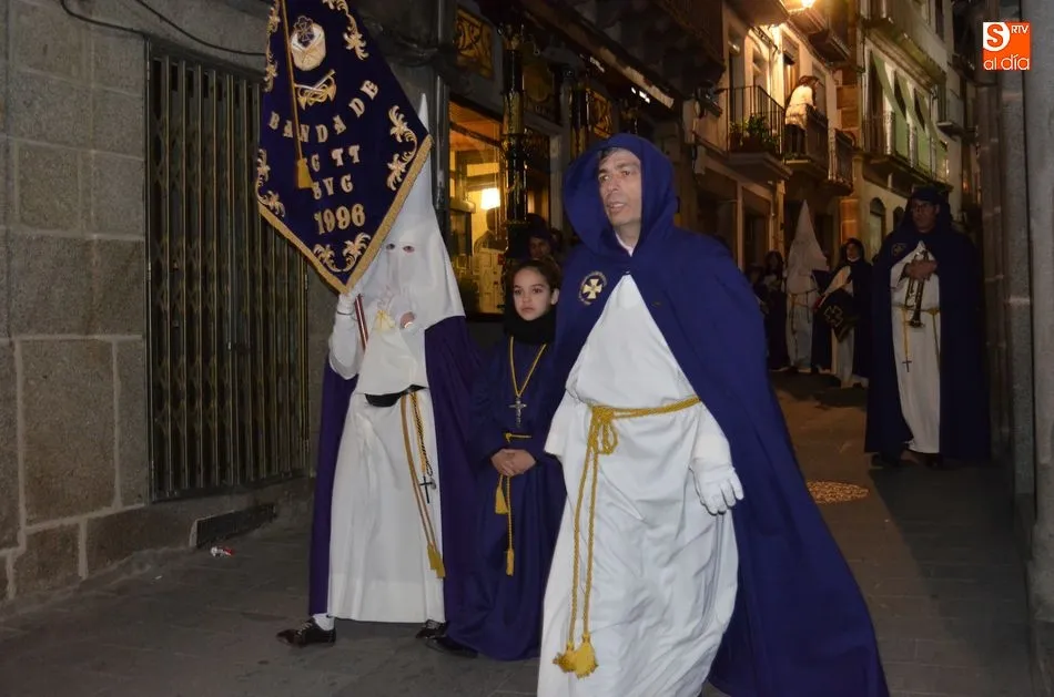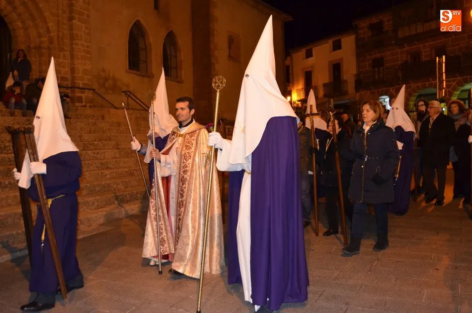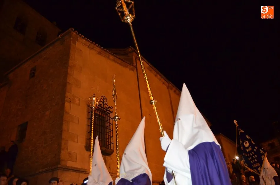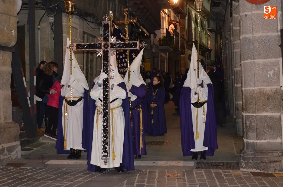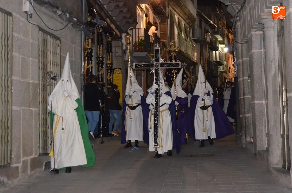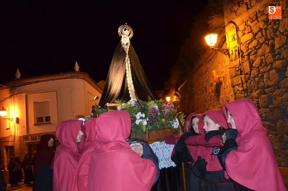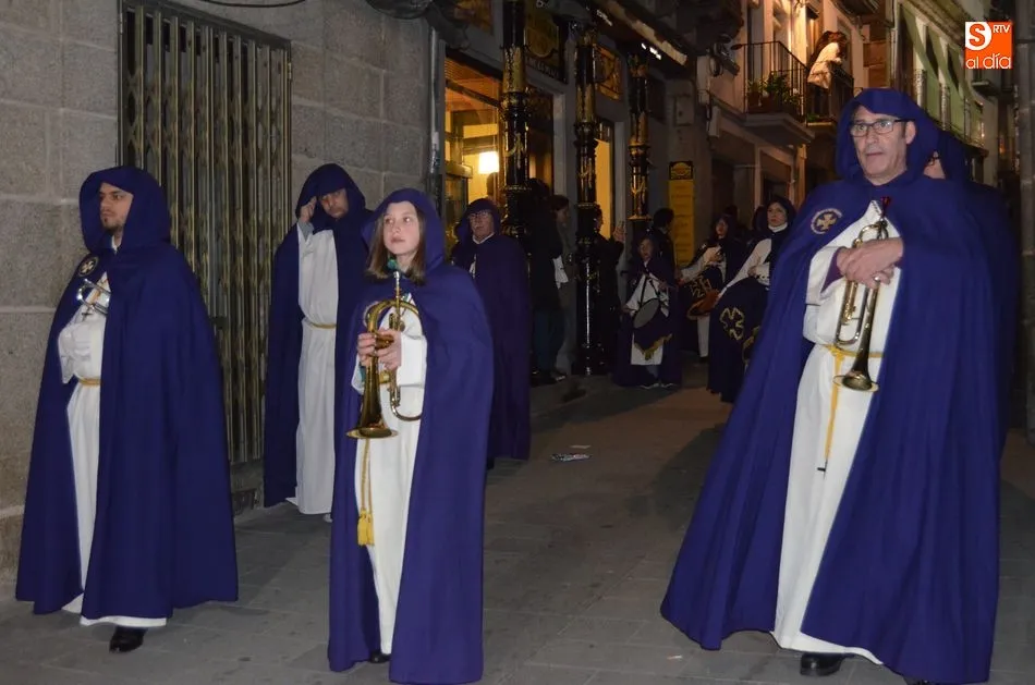 Pasadas las doce de la noche del Sábado de Gloria, Cristo Resucitado se encuentra con su Madre y el luto desaparece de sus vestiduras.
