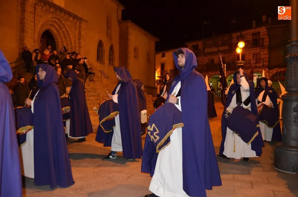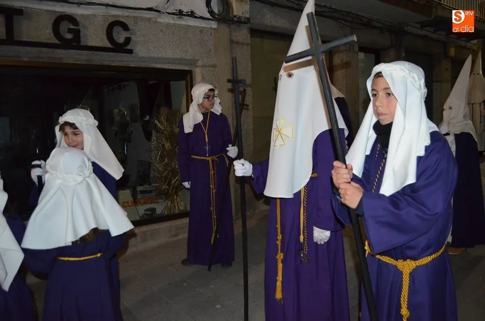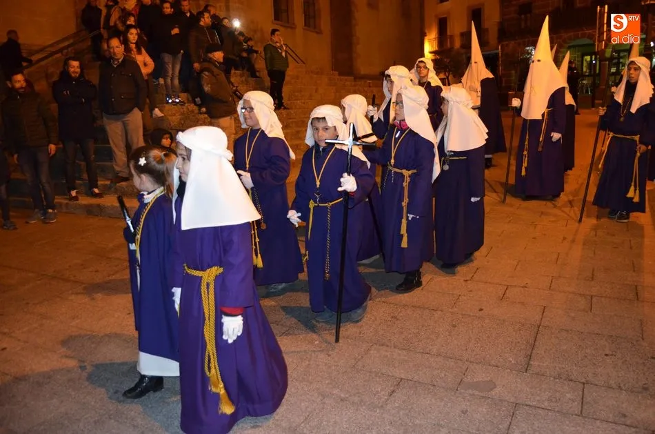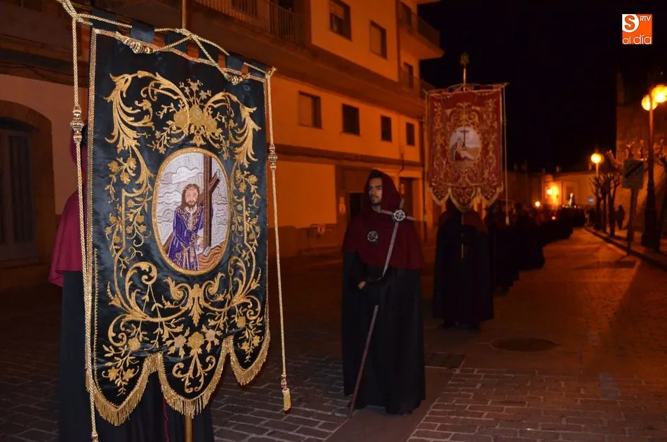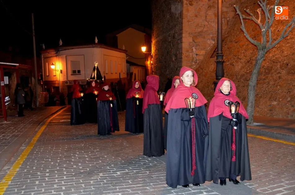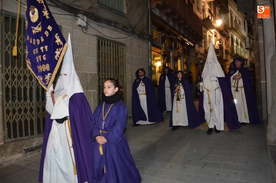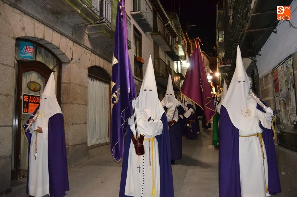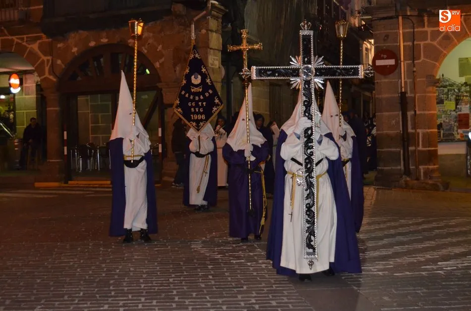 Pasadas las doce de la noche del Sábado de Gloria, Cristo Resucitado se encuentra con su Madre y el luto desaparece de sus vestiduras.