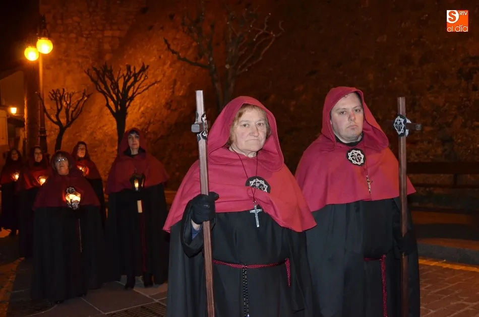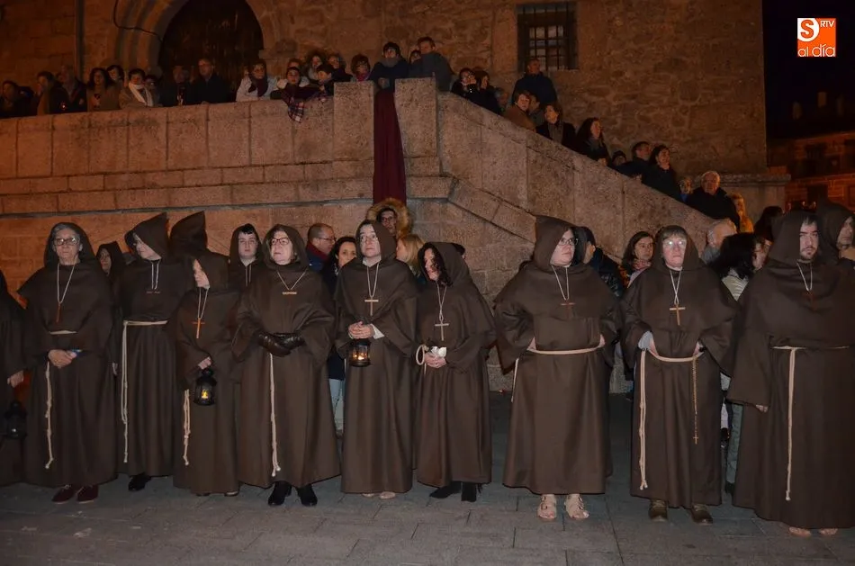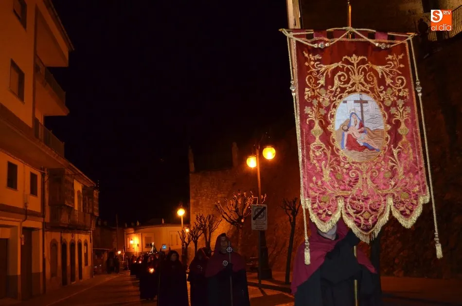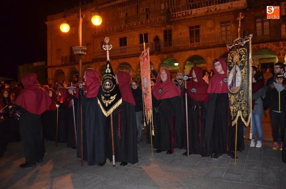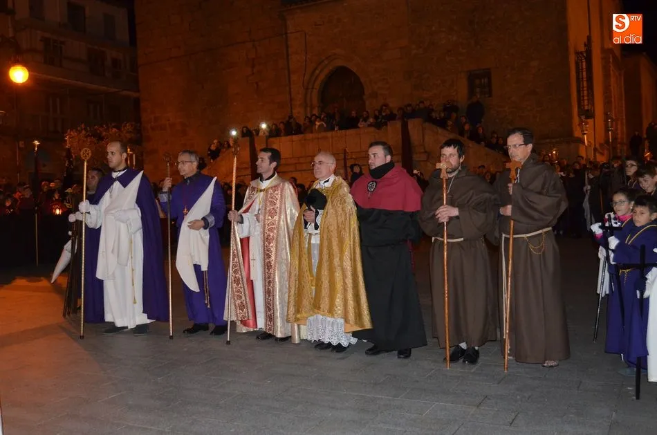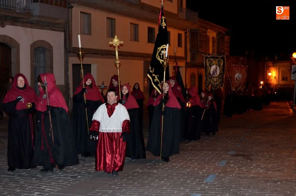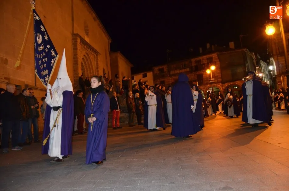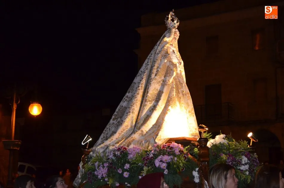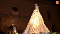 Pasadas las doce de la noche del Sábado de Gloria, Cristo Resucitado se encuentra con su Madre y el luto desaparece de sus vestiduras.