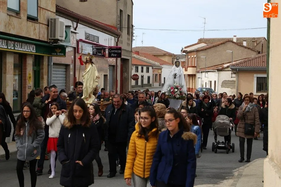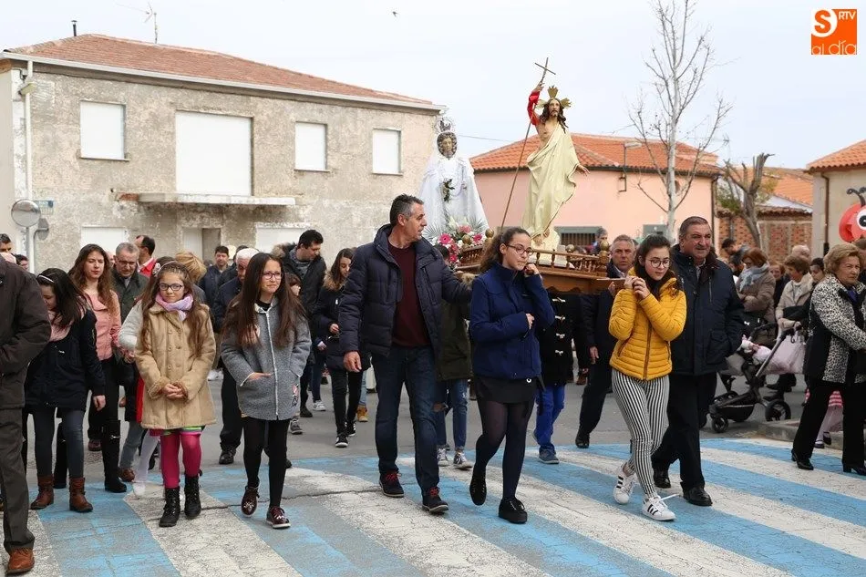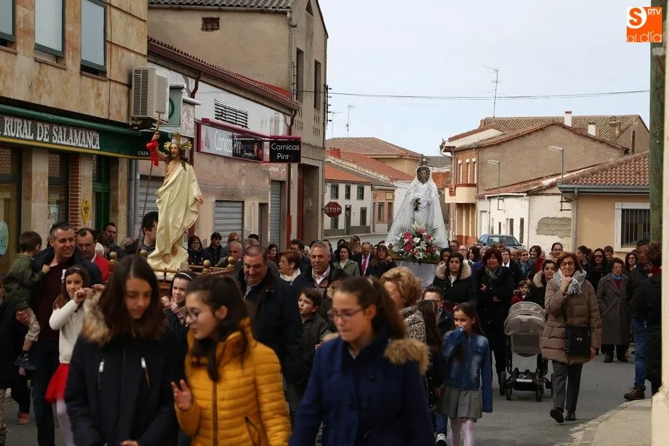 La Plaza de la Verdura de Babilafuente acogió en la mañana del Domingo de Resurrección el acto del Encuentro. Las imágenes de Jesús Resucitado y la Virgen llegaron portadas a hombros a la plaza para la realización del tradicional acto. A continuación, los vecinos procesionaron hasta la iglesia para la celebración de la misa, poniendo así fin a la Semana Santa.