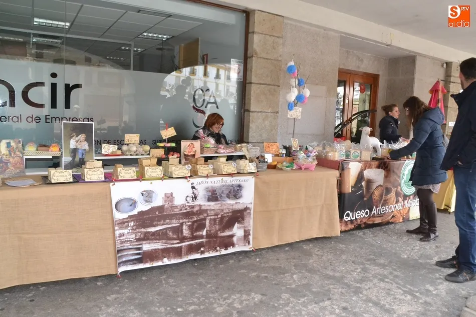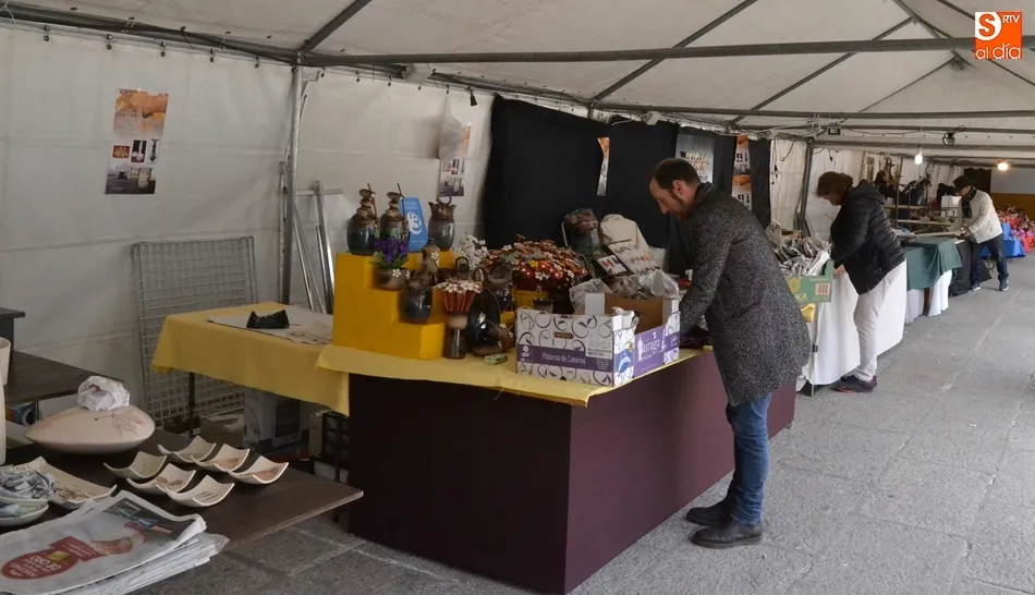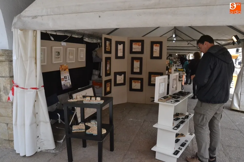 Tan solo cruzando la calle, en los soportales de Cardenal Pacheco, se han situado este año varios artesanos de Ciudad Rodrigo y comarca, que el año pasado, cuando hizo buena meteorología, estuvieron en la Plazuela de San Salvador, una ubicación que no les gustó demasiado. En este nuevo espacio han estado más recogidos y ordenados.