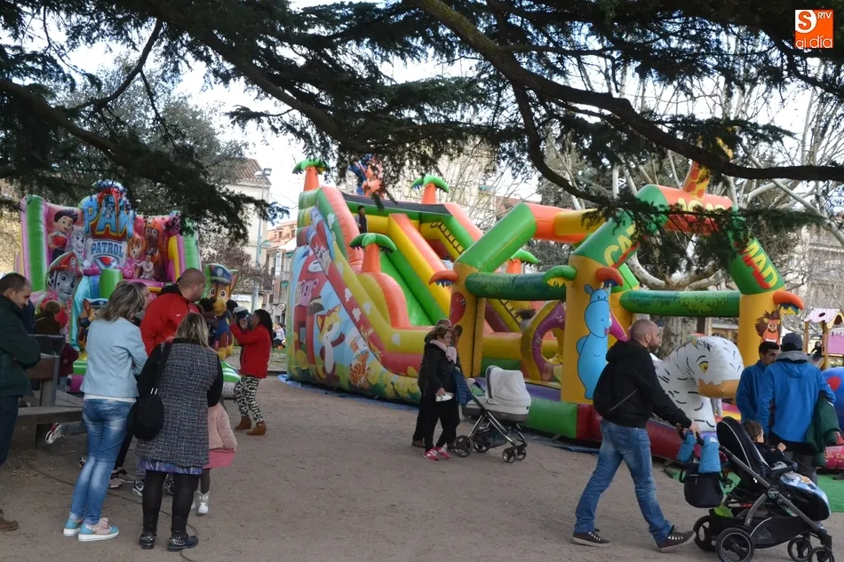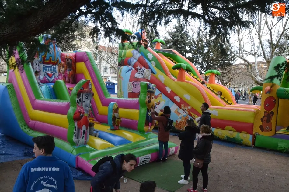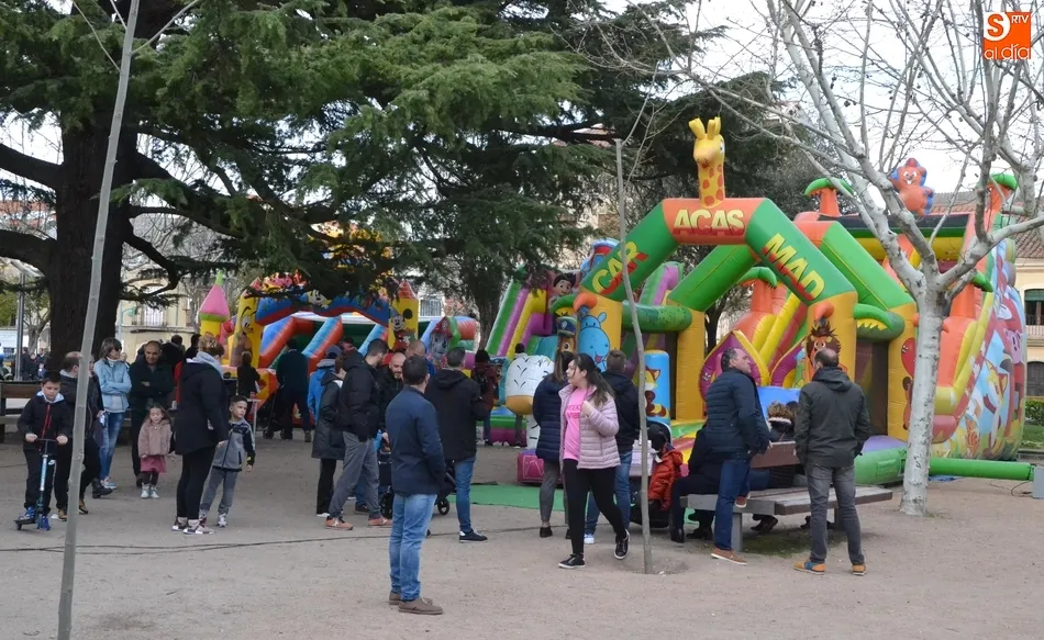Gracias a estos hinchables, los niños que han acudido estos días a La Glorieta han tenido, además de los juegos tradicionales del parque Dionisia Repila, una diversión extra, que en la tarde dominical tenía bastante ajetreo. Hay que recordar que este año los escolares no volverán a clase este lunes, sino que tienen toda una semana de vacaciones por delante.