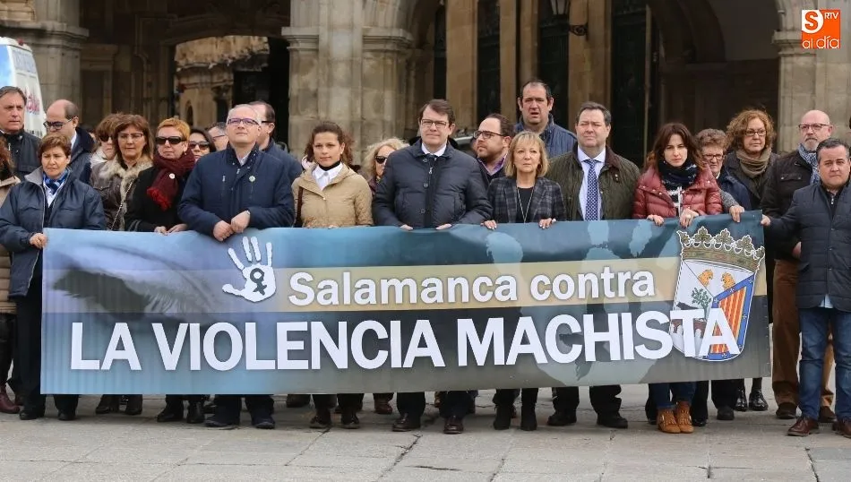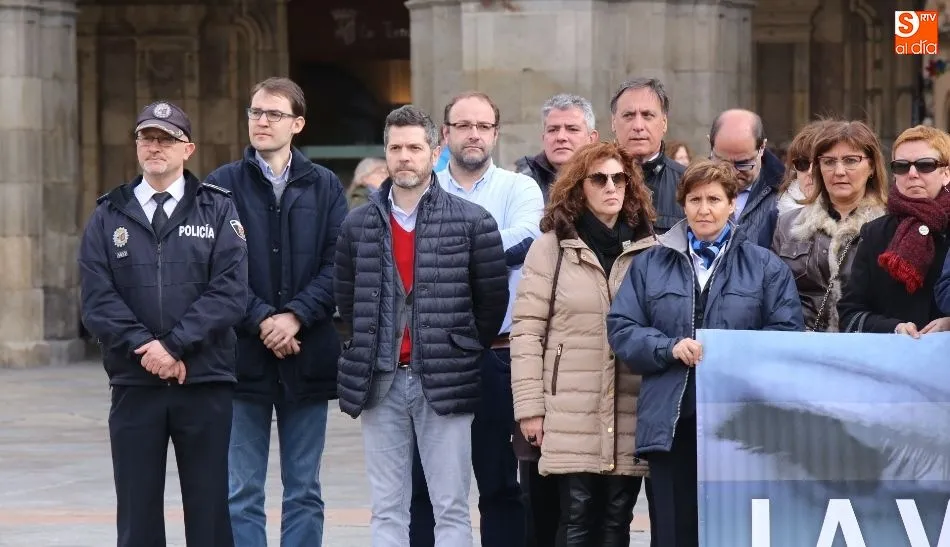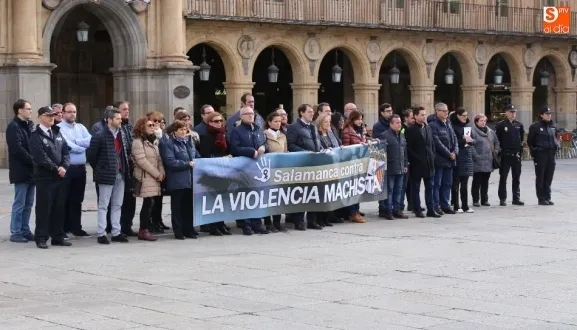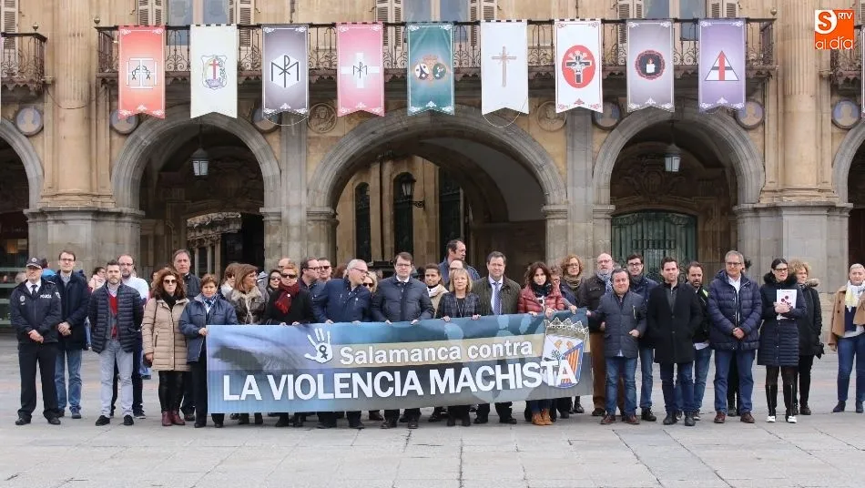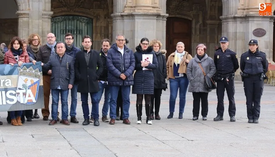 Concejales de los cuatro grupos políticos con representación en el Ayuntamiento de Salamanca han participado en una concentración para rechazar la violencia machista.