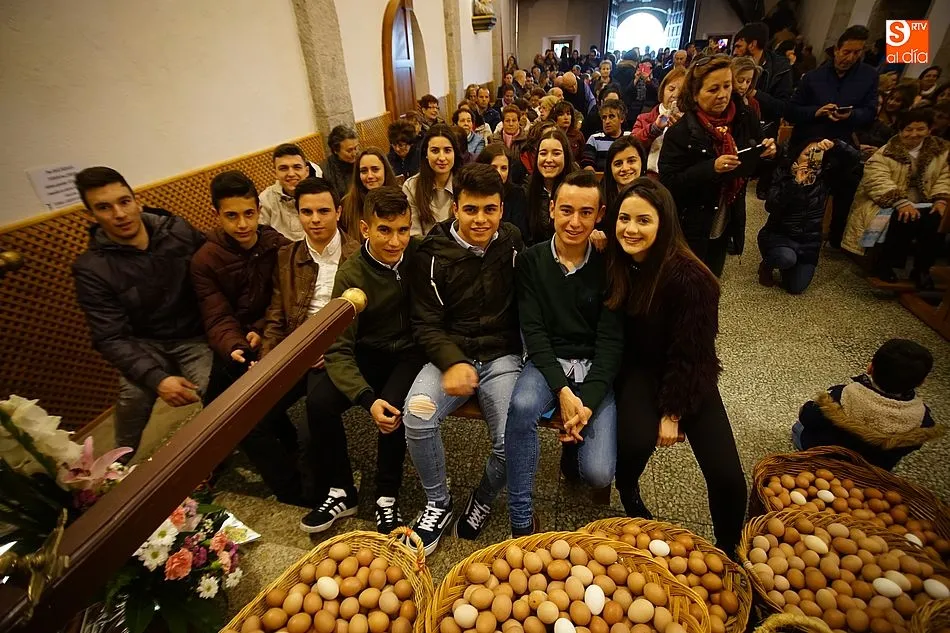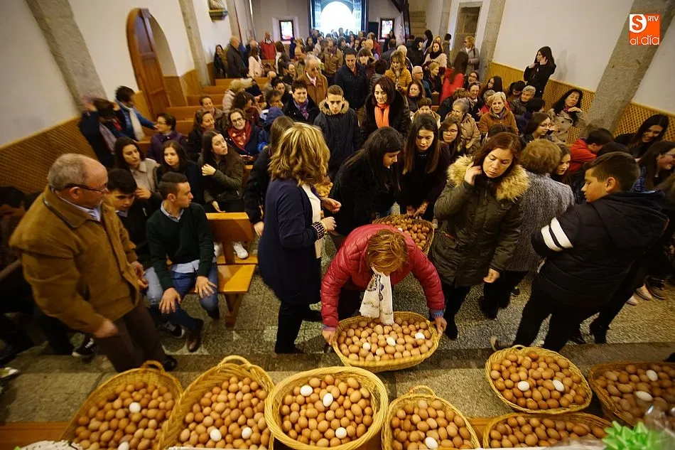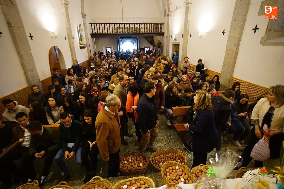 La ermita se llenó por completo para la subasta, con un total de 4.320 huevos que los vecinos trajeron en cestos. Un total de 360 docenas de huevos se vendieron a 5 euros la docena, además de los tradicionales huevos, se entregaron otras ofrendas como un jamón, embutido y dos tortas. El número de aportaciones es mayor al de los últimos años, subastándose 180 docenas en 2016 y 200 en 2017. Los mayordomos, Flora Sánchez, Juana García, Carmen Herrera y Emilio Gómez, animaron a los vecinos a que participaran en esta curiosa tradición local, que cada año atrae a decenas de curiosos por Pascua.