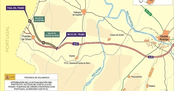Respecto a las tres inversiones que ya repiten de años anteriores en los Presupuestos Generales del Estado, hay que hacer una mención especial a la construcción de los 7 kilómetros que restan de A-62 entre Fuentes de Oñoro y la Frontera con Portugal. Según se dijo en 2017, las obras iban a concluir en este 2018, pero en los Presupuestos aparece que no finalizarán hasta 2020, catorce largos años después de su inicio.