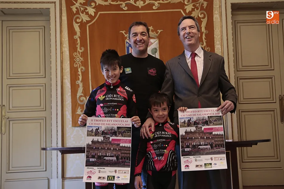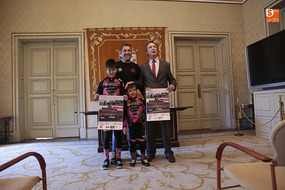 La ciudad de Salamanca alberga este domingo, 8 de abril, la II Copa Autonómica de Escuelas Ayuntamiento de Salamanca. El concejal de Deportes del Ayuntamiento de Salamanca, Enrique Sánchez-Guijo, junto al presidente y director técnico de la Escuela de Ciclismo Promesal, Oche Alonso, ha presentado hoy esta prueba deportiva.