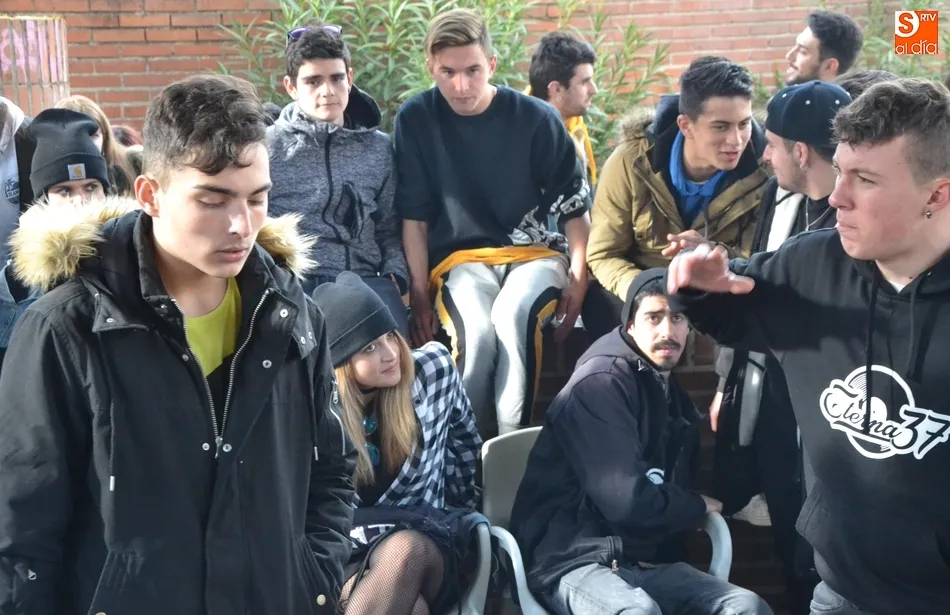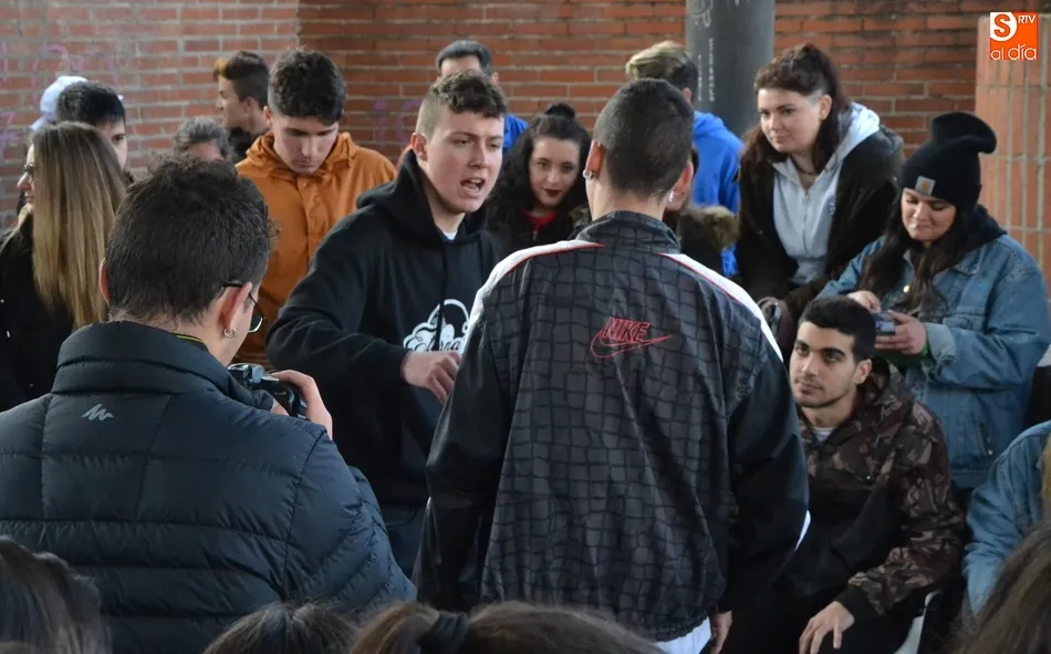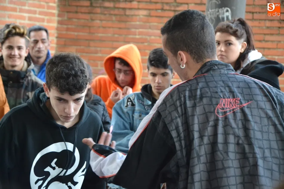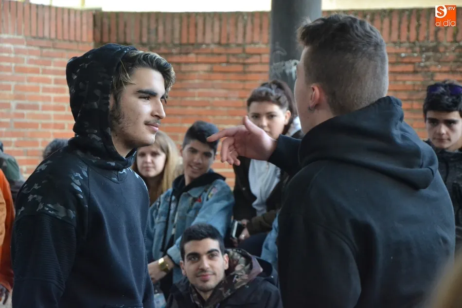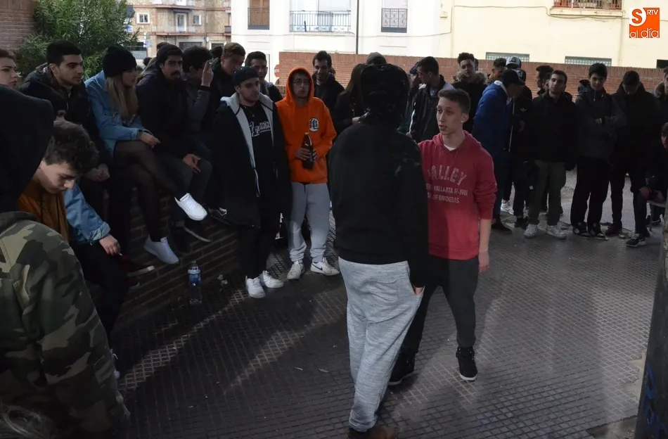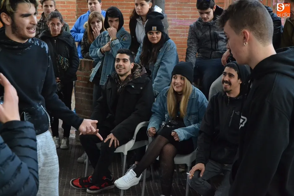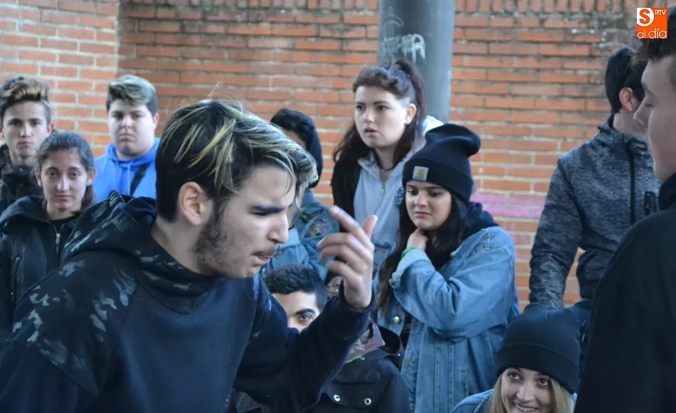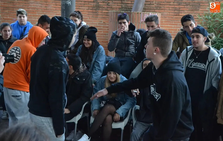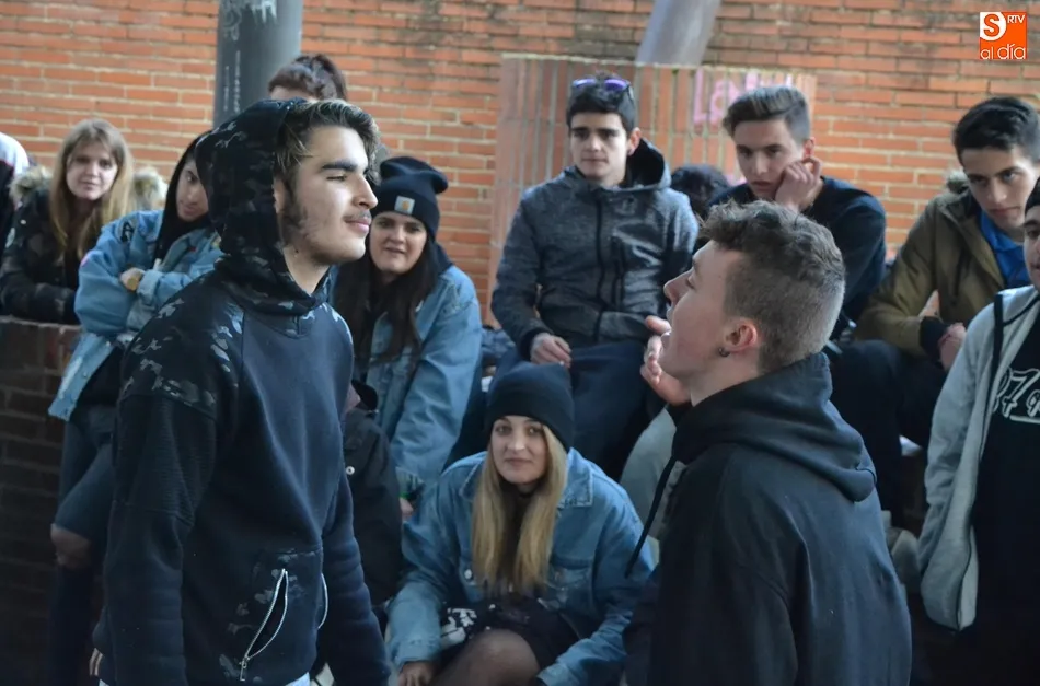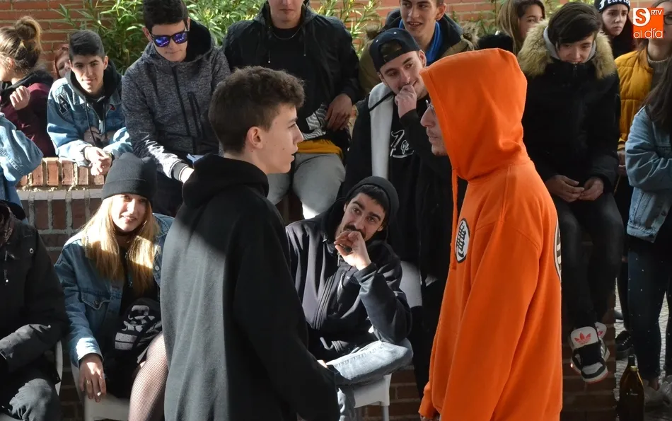 Los jóvenes de Ciudad Rodrigo tuvieron en la tarde del sábado como gran entretenimiento la batalla de gallos a pie de calle organizada por el colectivo juvenil CR-Crews. Inicialmente, esta batalla se iba a celebrar en el Parque de La Florida, pero este Parque se ?resiste? a acoger batallas (ya se trasladó la cita de la Semana de la Juventud del pasado verano), y hubo que buscar refugio ante la lluvia en la Estación de Autobuses.