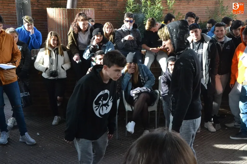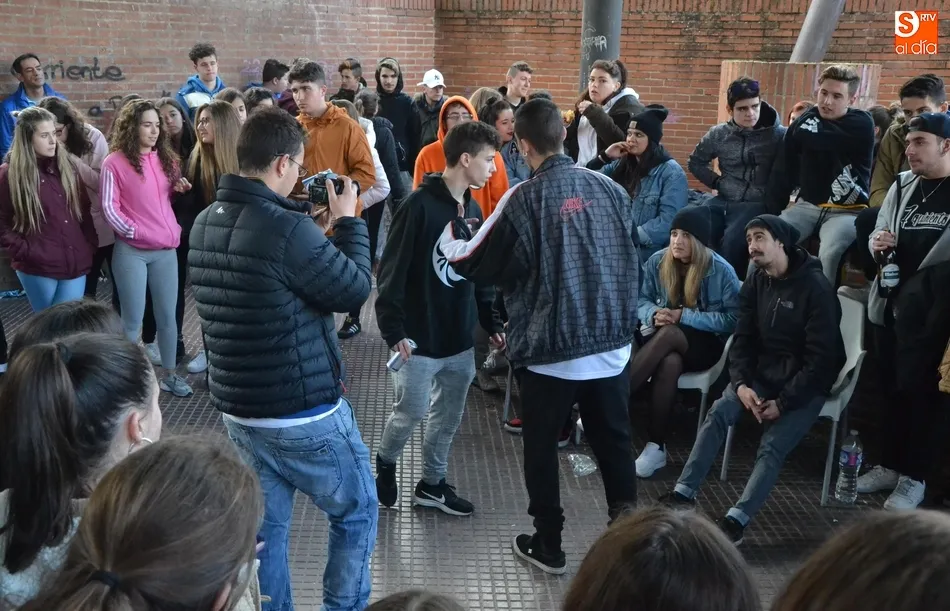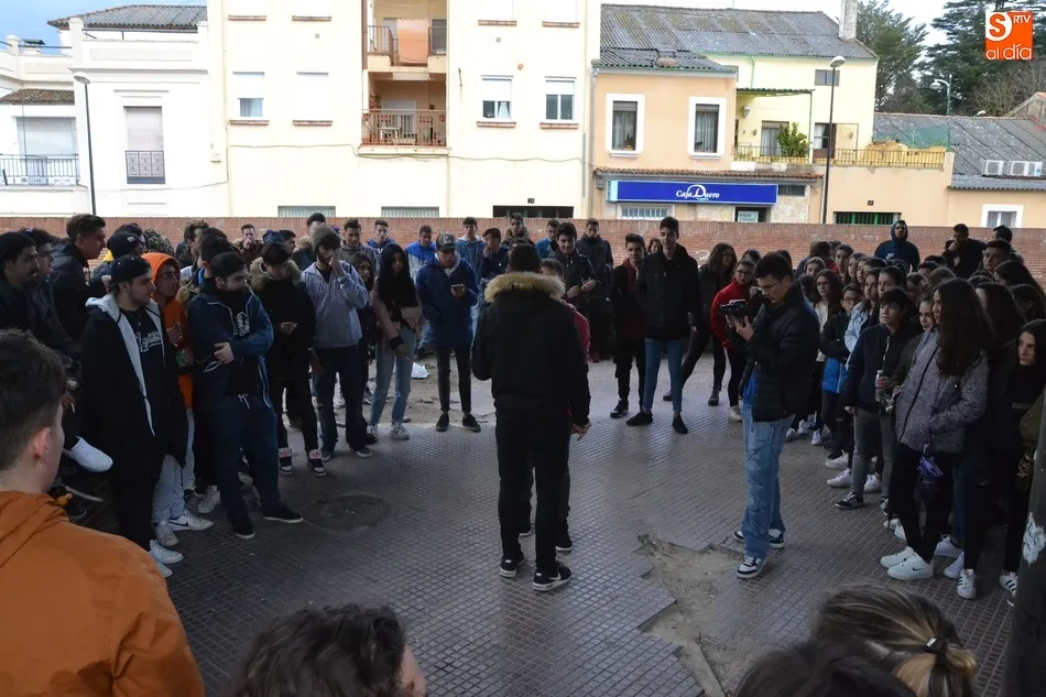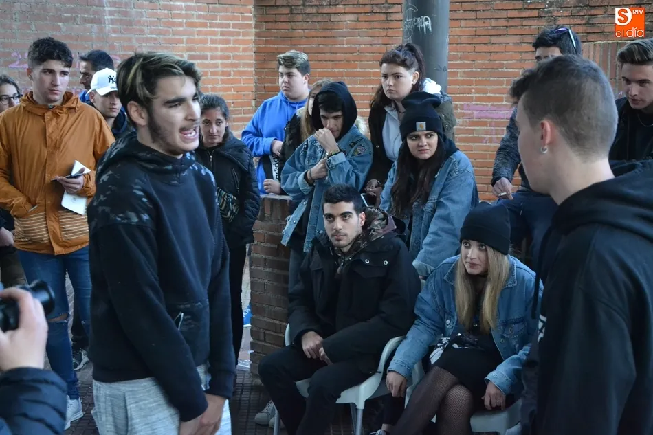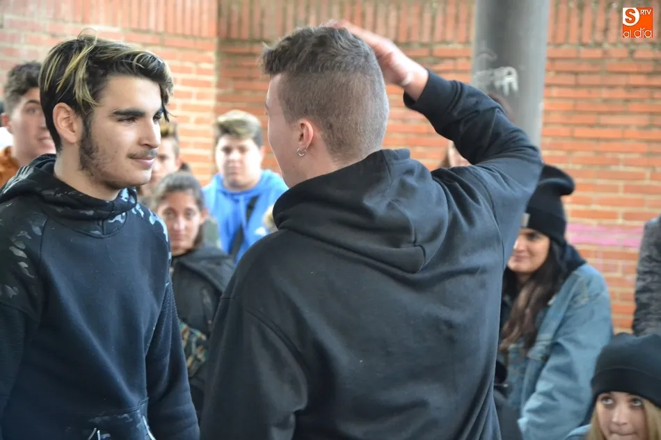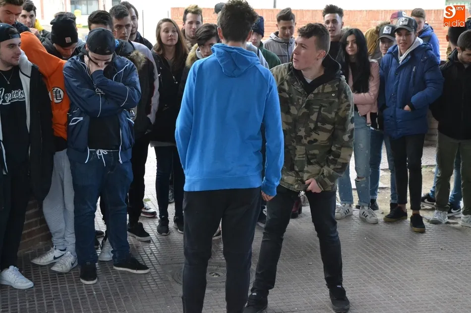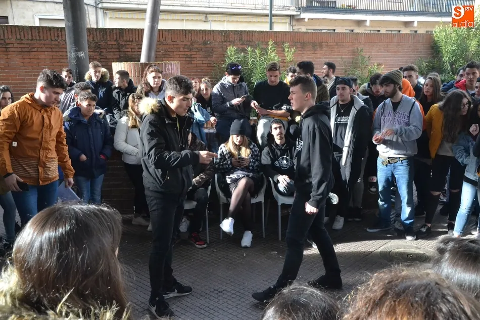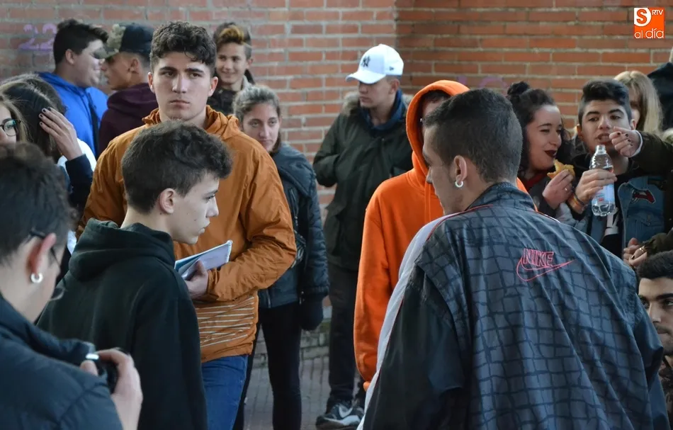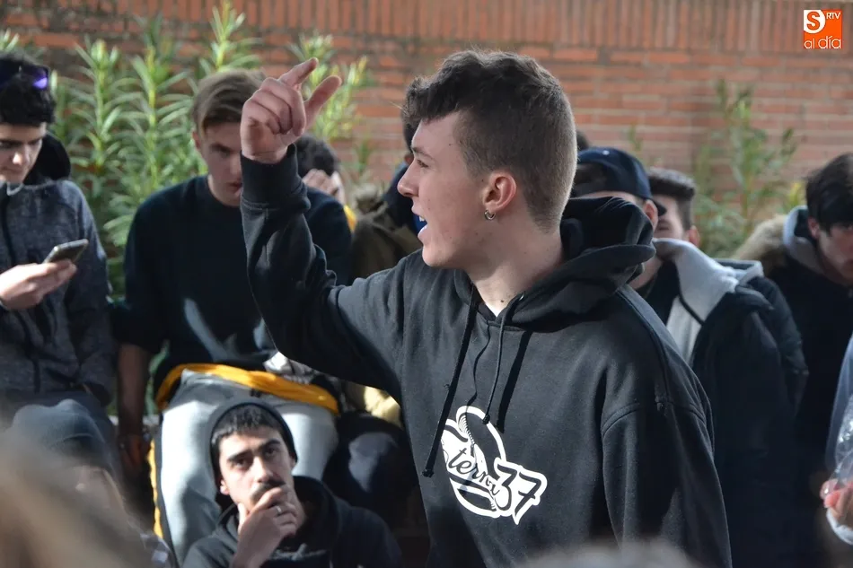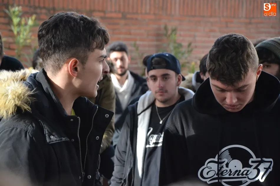Los jóvenes de Ciudad Rodrigo tuvieron en la tarde del sábado como gran entretenimiento la batalla de gallos a pie de calle organizada por el colectivo juvenil CR-Crews. Inicialmente, esta batalla se iba a celebrar en el Parque de La Florida, pero este Parque se ?resiste? a acoger batallas (ya se trasladó la cita de la Semana de la Juventud del pasado verano), y hubo que buscar refugio ante la lluvia en la Estación de Autobuses.