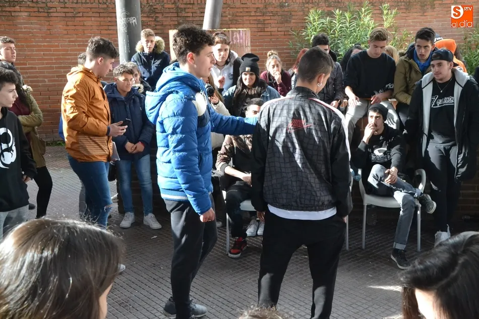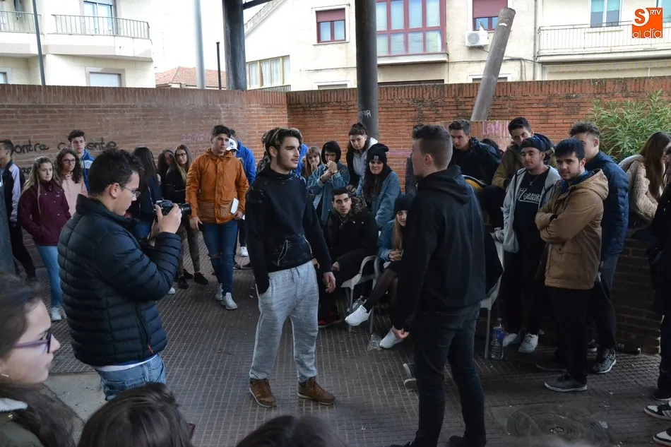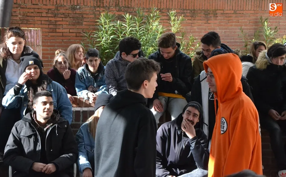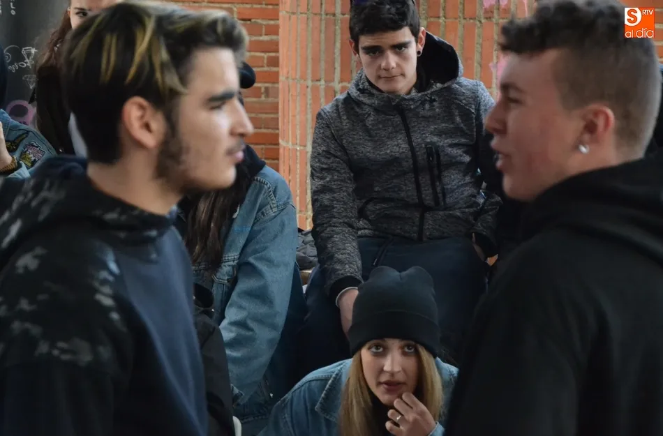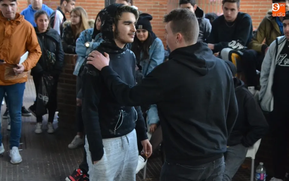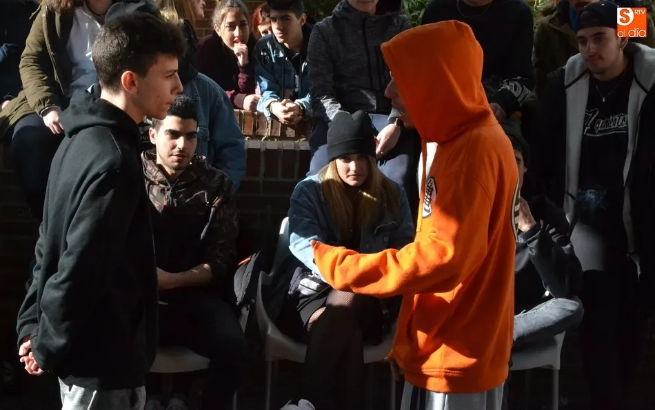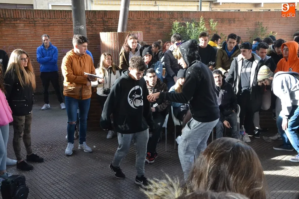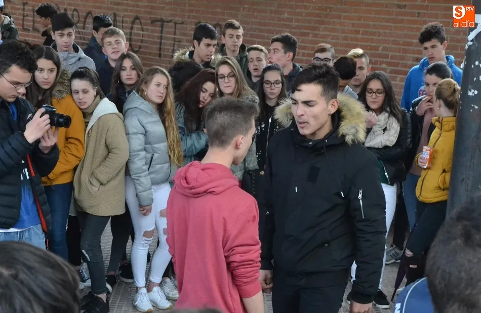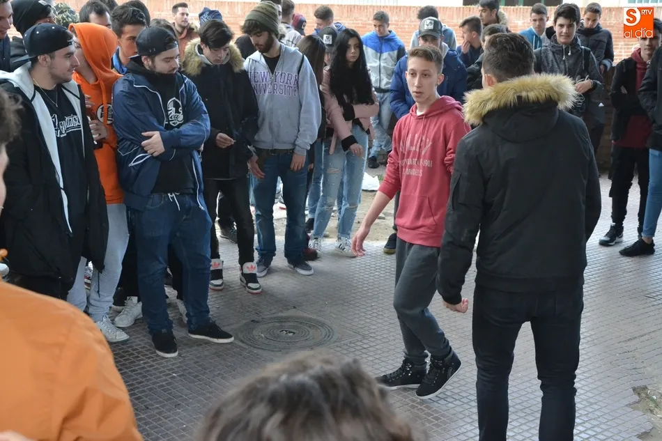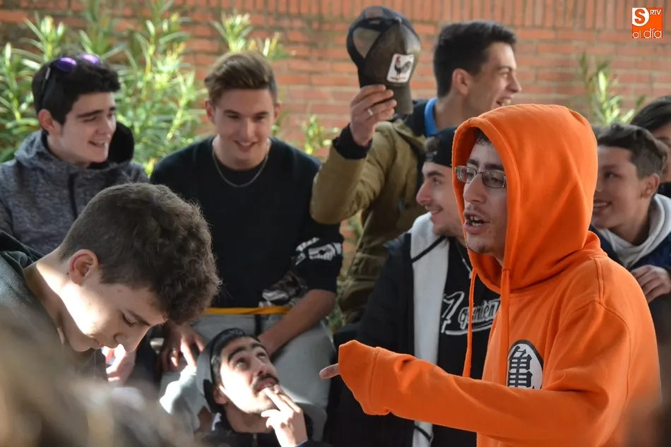 Los jóvenes de Ciudad Rodrigo tuvieron en la tarde del sábado como gran entretenimiento la batalla de gallos a pie de calle organizada por el colectivo juvenil CR-Crews. Inicialmente, esta batalla se iba a celebrar en el Parque de La Florida, pero este Parque se ?resiste? a acoger batallas (ya se trasladó la cita de la Semana de la Juventud del pasado verano), y hubo que buscar refugio ante la lluvia en la Estación de Autobuses.