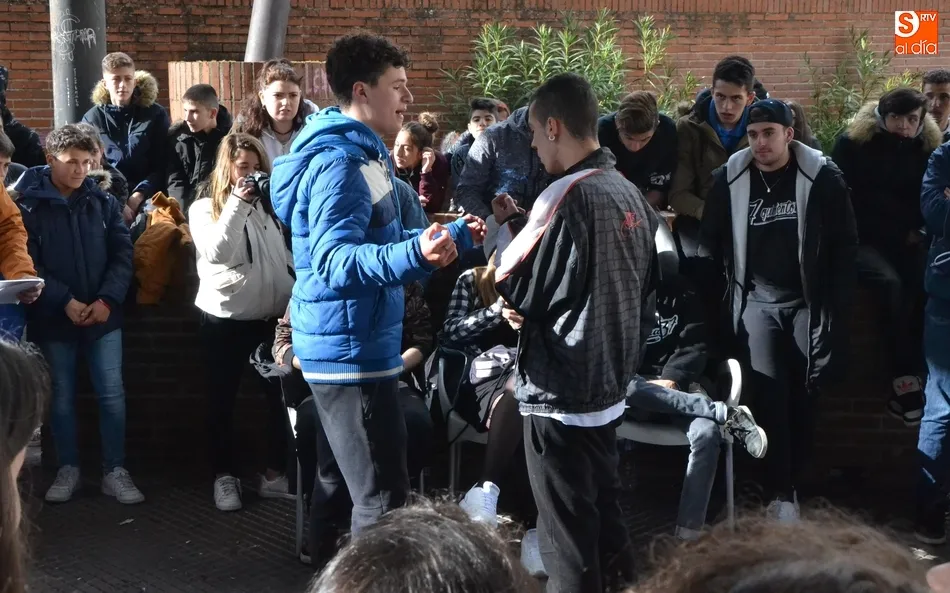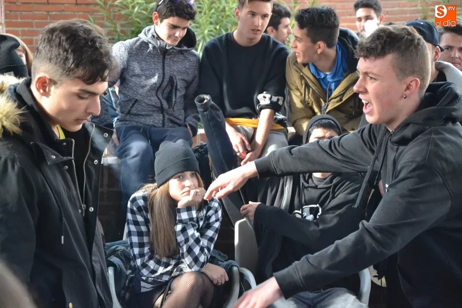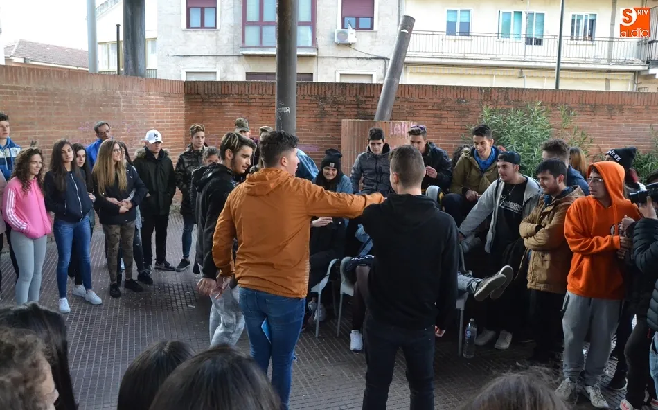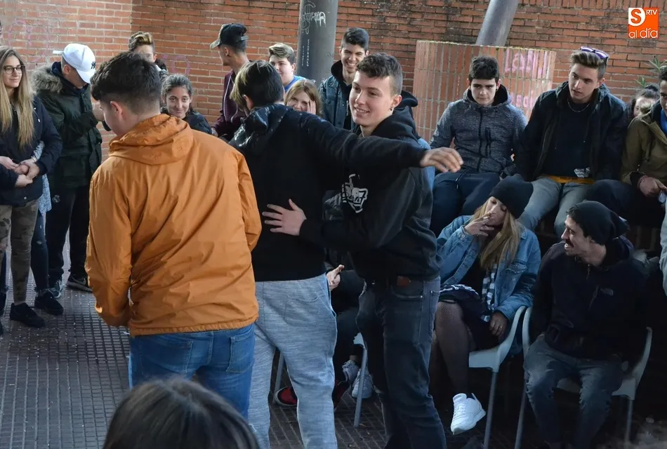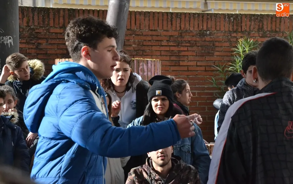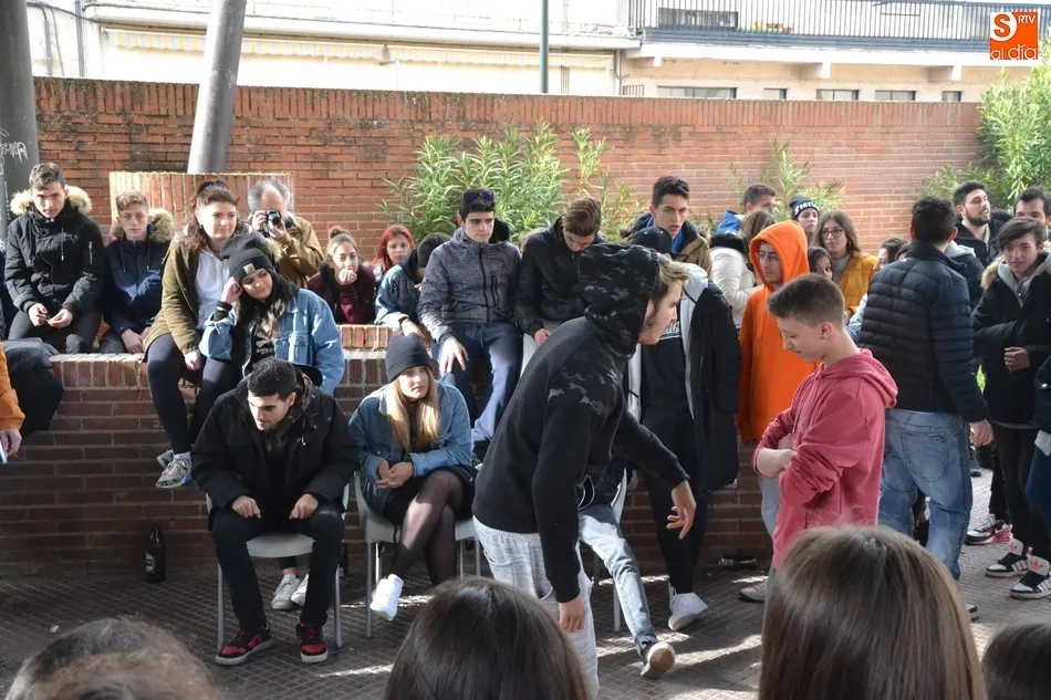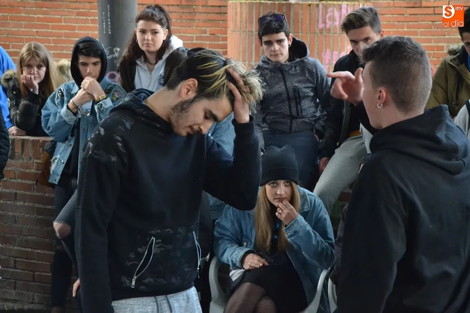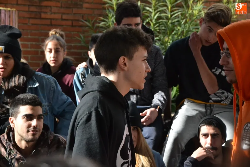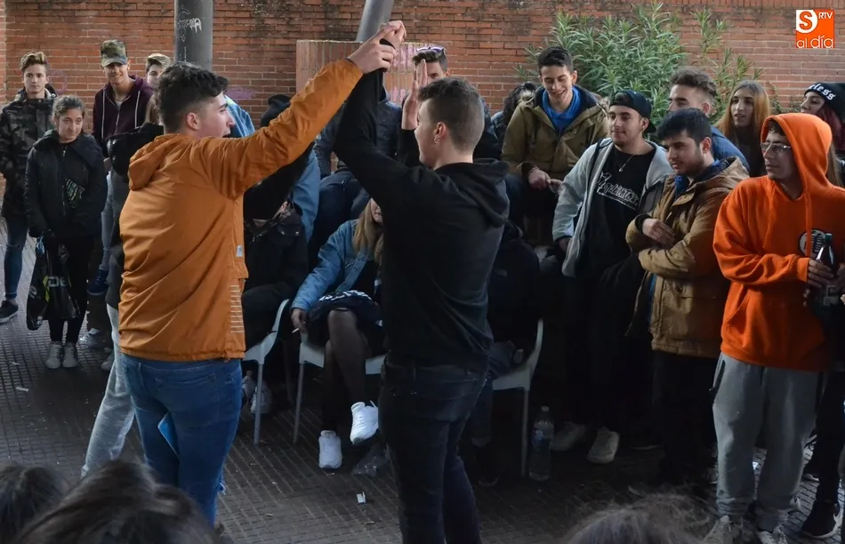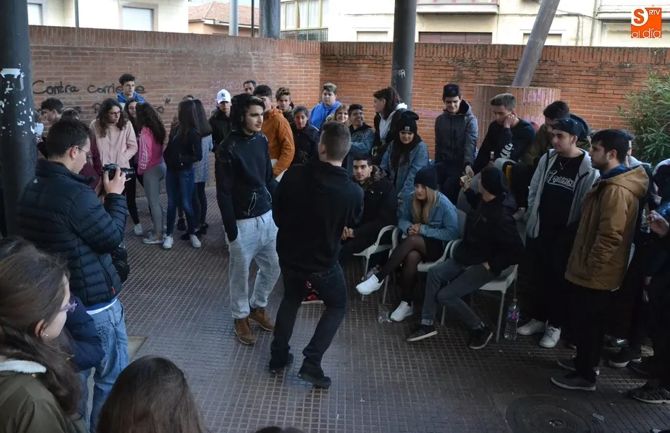 Los jóvenes de Ciudad Rodrigo tuvieron en la tarde del sábado como gran entretenimiento la batalla de gallos a pie de calle organizada por el colectivo juvenil CR-Crews. Inicialmente, esta batalla se iba a celebrar en el Parque de La Florida, pero este Parque se ?resiste? a acoger batallas (ya se trasladó la cita de la Semana de la Juventud del pasado verano), y hubo que buscar refugio ante la lluvia en la Estación de Autobuses.