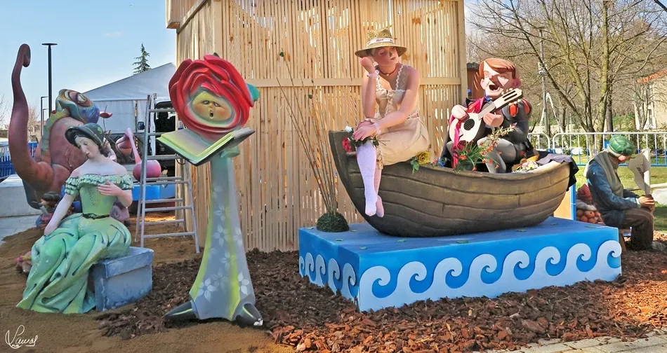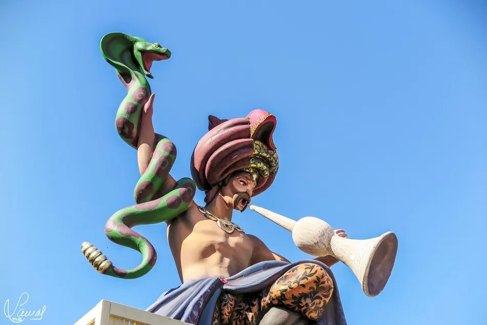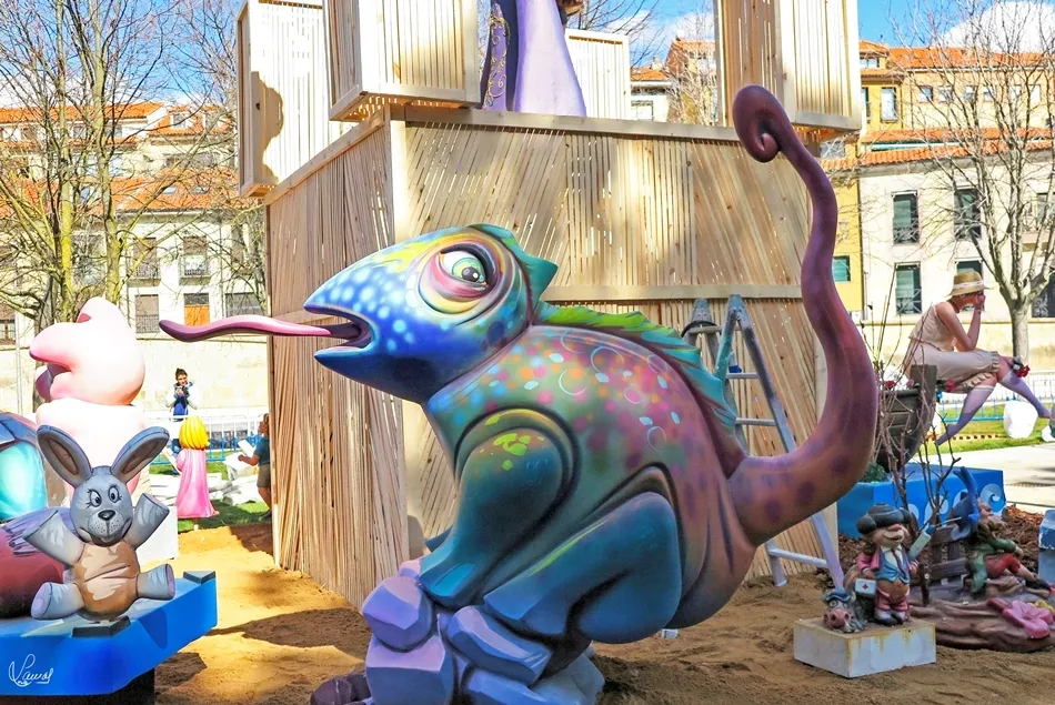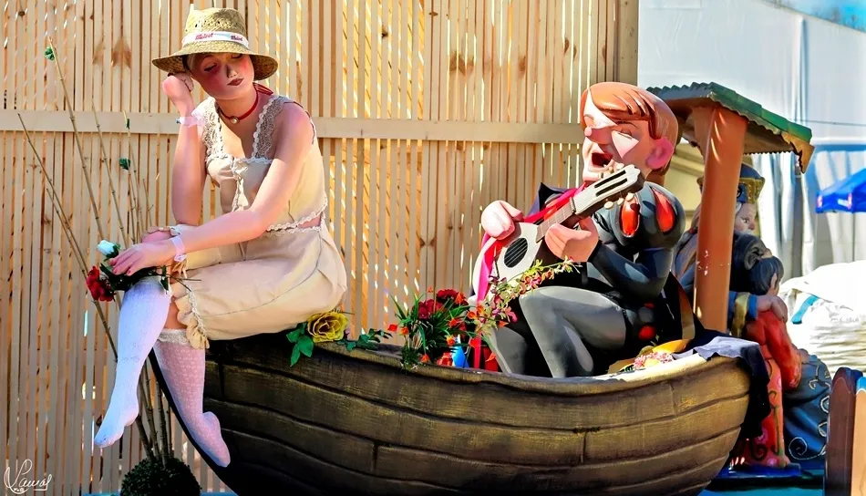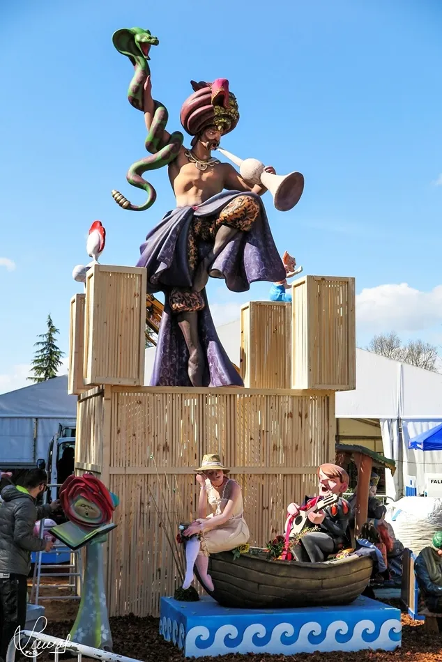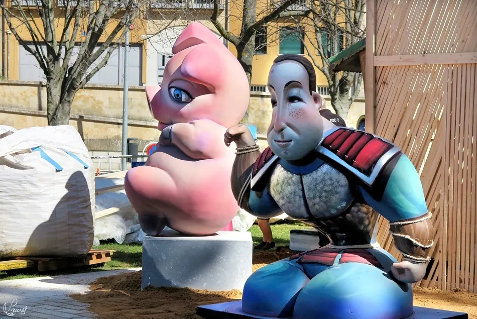 monumento fallero, en la vaguada de la palma, que hace un guiño al Lunes de Aguas