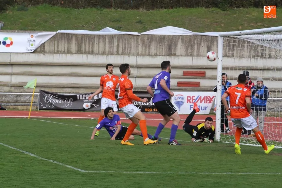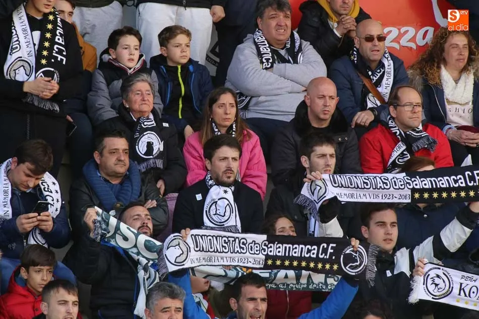 Hasta entonces Unionistas había llevado el mando. Astu tiró de galones para hacer el once inicial, pero faltaba la profundidad. Fue a partir del tanto de Fran cuando su dominio se acentuaba y empezaban a llegar las ocasiones. Tres minutos después del gol, De la Nava ponía la réplica y superada la media hora lo intentaba Piojo con un gran disparo que roza la madera. Es en el 37 cuando llegaba la ocasión más clara al enviar el portero visitante al palo un remate de Carlos de la Nava. Sin embargo, el marcador no se movería antes del descanso.