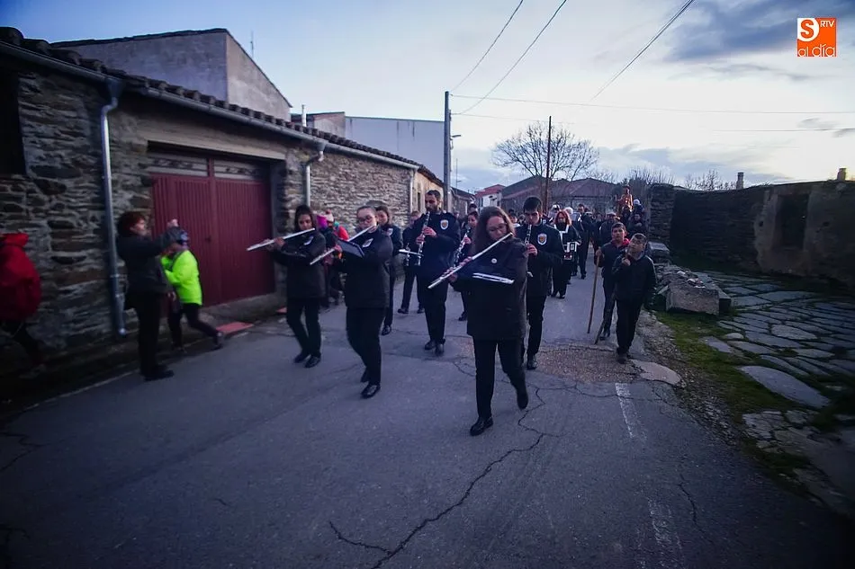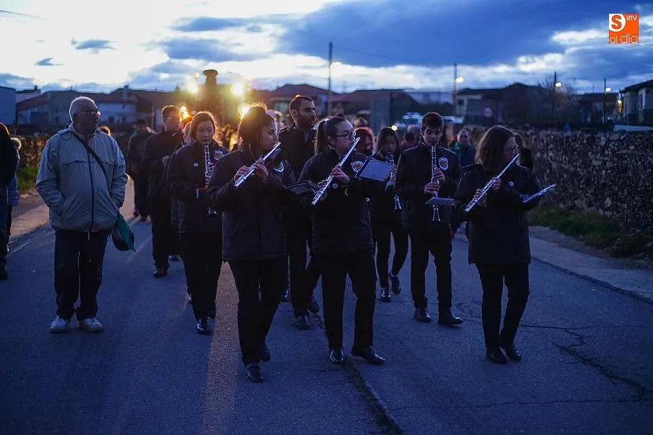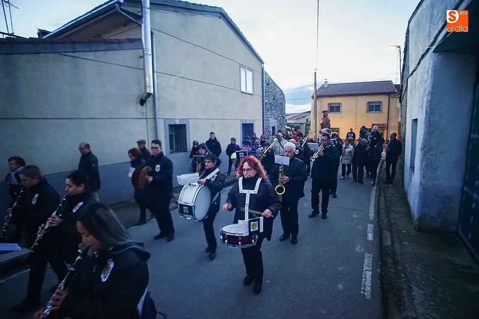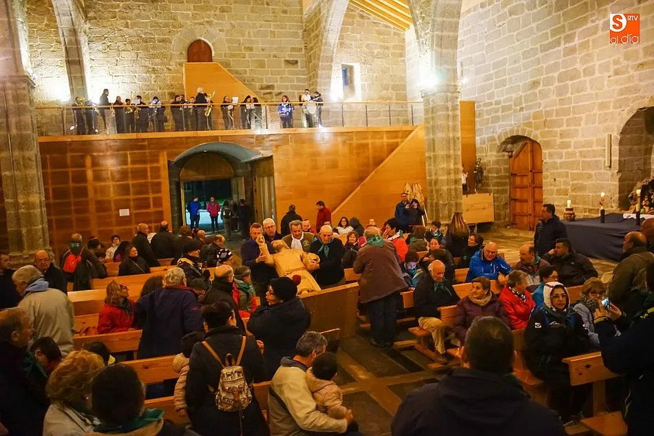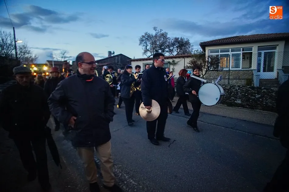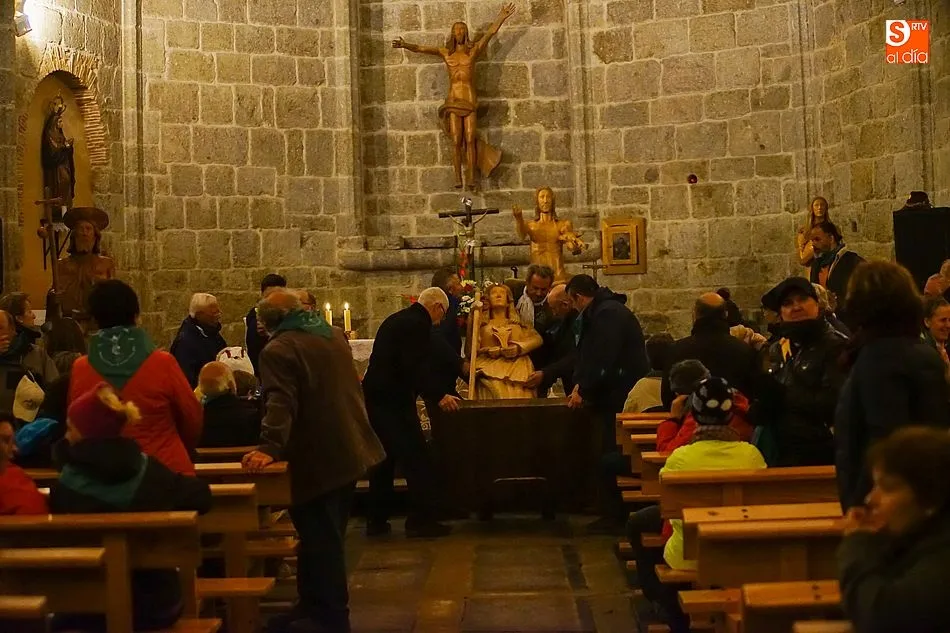 El grueso de la marcha llegó a Fuenterroble tras recorrer el camino en torno a las 21:00 horas, siendo recibidos por la banda salmantina de Tomás Bretón a la entrada de la localidad. Las marchas de procesión sonaron para los peregrinos quienes recorrieron el último tramo hasta la iglesia acompañados de los músicos y de numerosos vecinos. Una vez en el templo, se fueron introduciendo las imágenes talladas en madera de una en una para recuperar su lugar original en el altar de la iglesia parroquial.