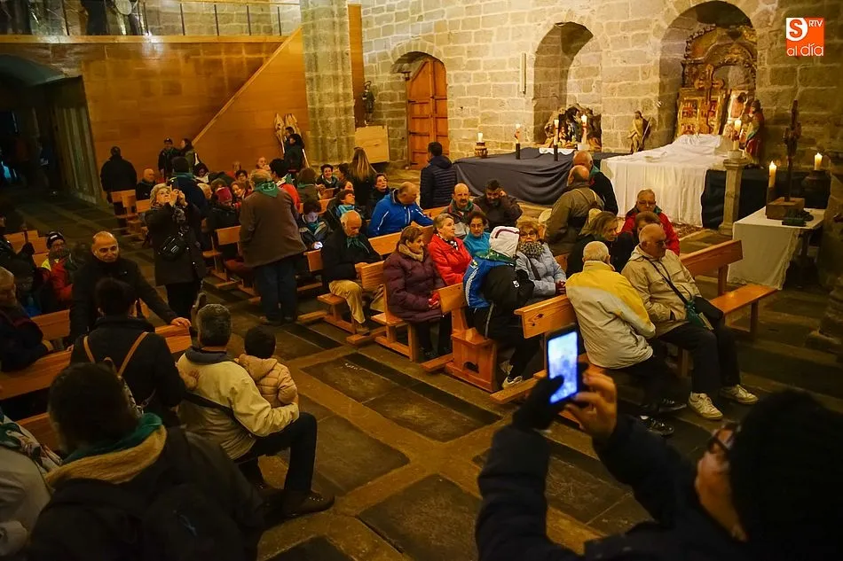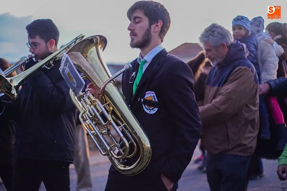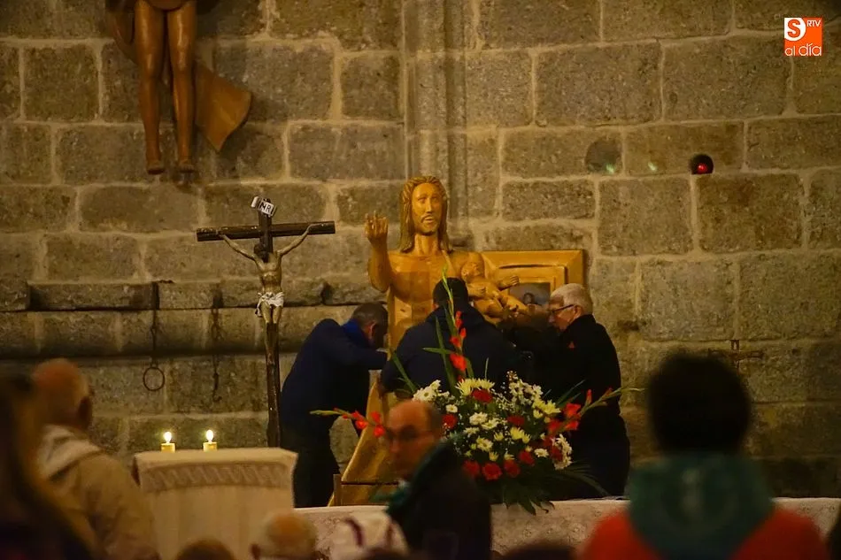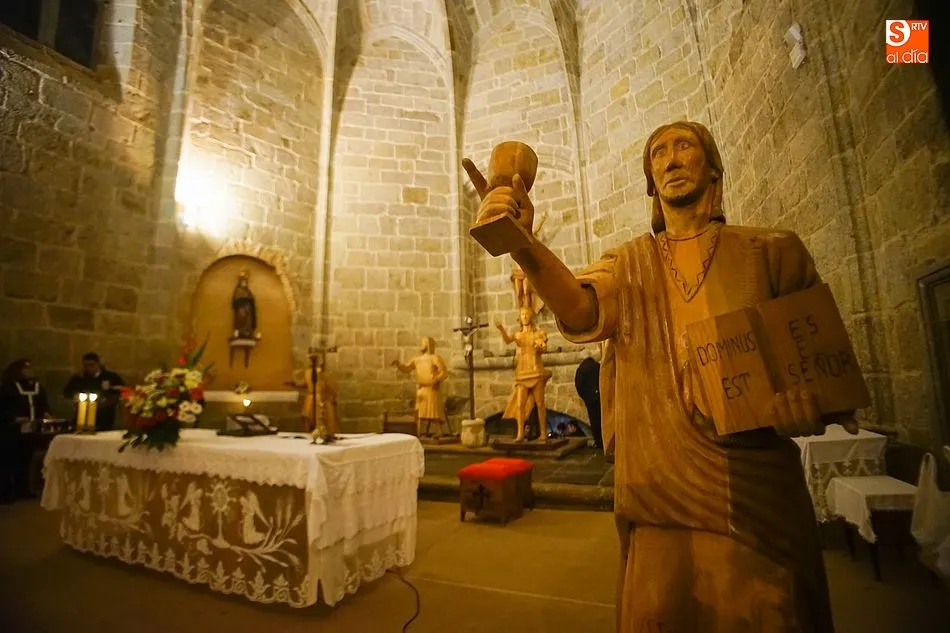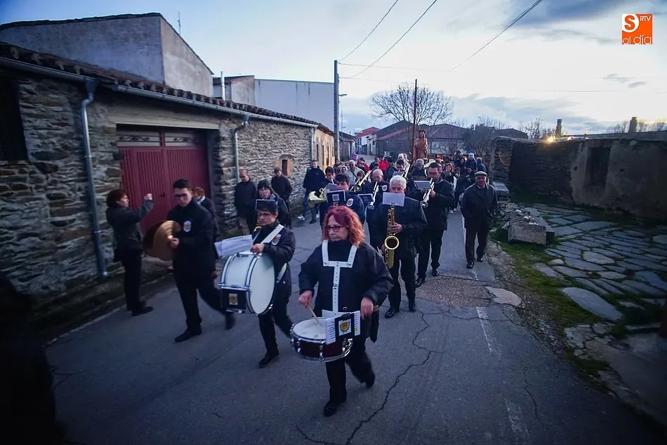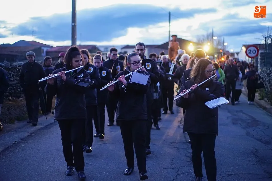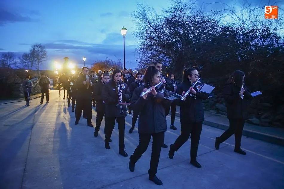 El grueso de la marcha llegó a Fuenterroble tras recorrer el camino en torno a las 21:00 horas, siendo recibidos por la banda salmantina de Tomás Bretón a la entrada de la localidad. Las marchas de procesión sonaron para los peregrinos quienes recorrieron el último tramo hasta la iglesia acompañados de los músicos y de numerosos vecinos. Una vez en el templo, se fueron introduciendo las imágenes talladas en madera de una en una para recuperar su lugar original en el altar de la iglesia parroquial.