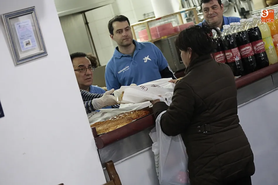 Para la recogida del hornazo, ha sido imprescindible la tarjeta del Comedor de los Pobres.